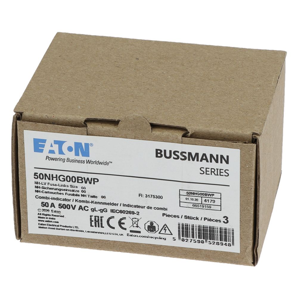 50NHG00BWP NH, LV, 50A, 500V gG rozmiar 00, WR