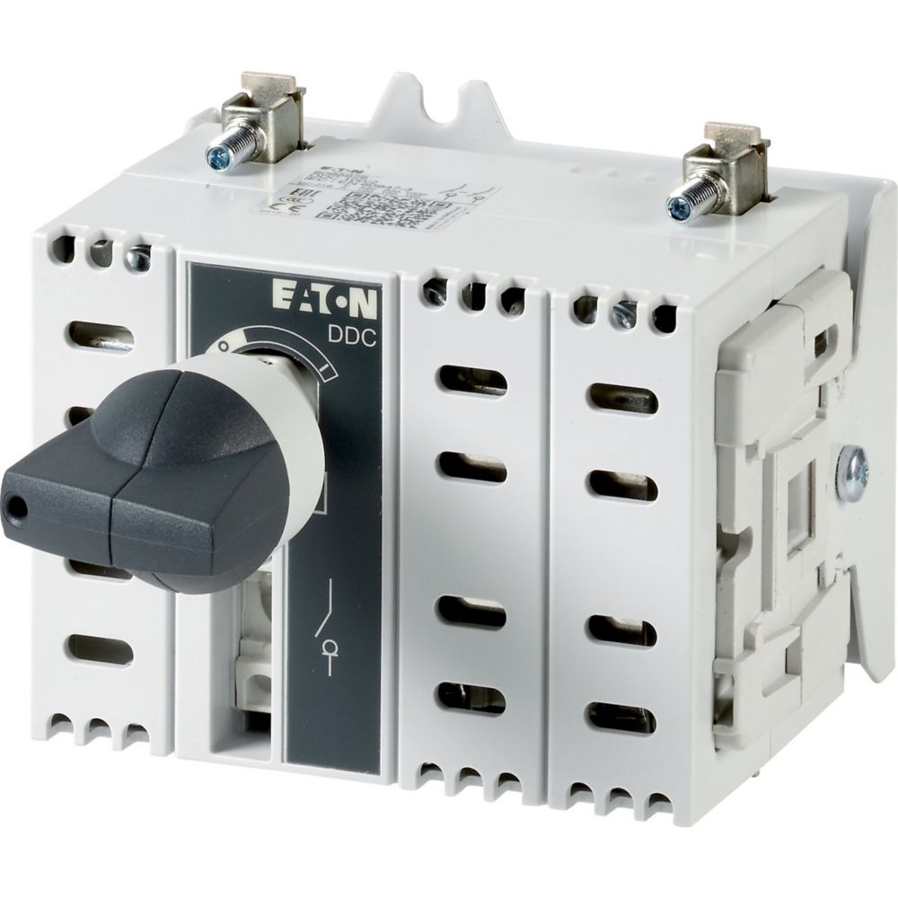 Rozłącznik izolacyjny DC, Zacisk śrubowy: Rozłącznik izolacyjny DC, Wyłącznik główny, wyłącznik serwisowy, Odniesienie grupy części DDC, z szarym pokrętłem, Informacje dotyczące dostarczonego sprzętu: styk pomocniczy montowany przez użytkownika., 2-biegunowy, Stopień ochrony: IP20, Projekt: mocowanie rozdzielnicy serwisowej, Znamionowy prąd ciągły: Iu = 80 A, Normy: IEC/EN 60947, VDE 0660, IEC/EN 60204, Rozłącznik izolacyjny zgodnie z normą IEC/EN 60947-3