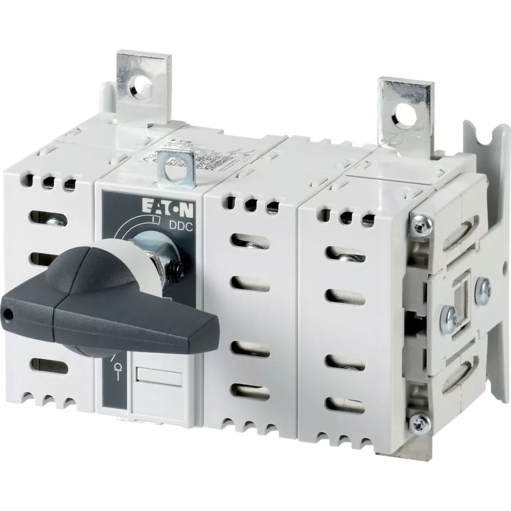 Rozłącznik izolacyjny DC, Zacisk śrubowy: Rozłącznik izolacyjny DC, Wyłącznik główny, wyłącznik serwisowy, Odniesienie grupy części DDC, z szarym pokrętłem, Informacje dotyczące dostarczonego sprzętu: styk pomocniczy montowany przez użytkownika., 2-biegunowy, Stopień ochrony: IP20, Projekt: mocowanie rozdzielnicy serwisowej, Znamionowy prąd ciągły: Iu = 160 A, Normy: IEC/EN 60947, VDE 0660, IEC/EN 60204, Rozłącznik izolacyjny zgodnie z normą IEC/EN 60947-3
