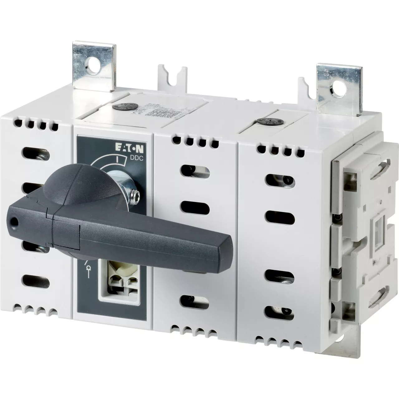 Rozłącznik izolacyjny DC, Zacisk śrubowy: Rozłącznik izolacyjny DC, Wyłącznik główny, wyłącznik serwisowy, Odniesienie grupy części DDC, z szarym pokrętłem, Informacje dotyczące dostarczonego sprzętu: styk pomocniczy montowany przez użytkownika., 2-biegunowy, Stopień ochrony: IP20, Projekt: mocowanie rozdzielnicy serwisowej, Znamionowy prąd ciągły: Iu = 400 A, Normy: IEC/EN 60947, VDE 0660, IEC/EN 60204, Rozłącznik izolacyjny zgodnie z normą IEC/EN 60947-3