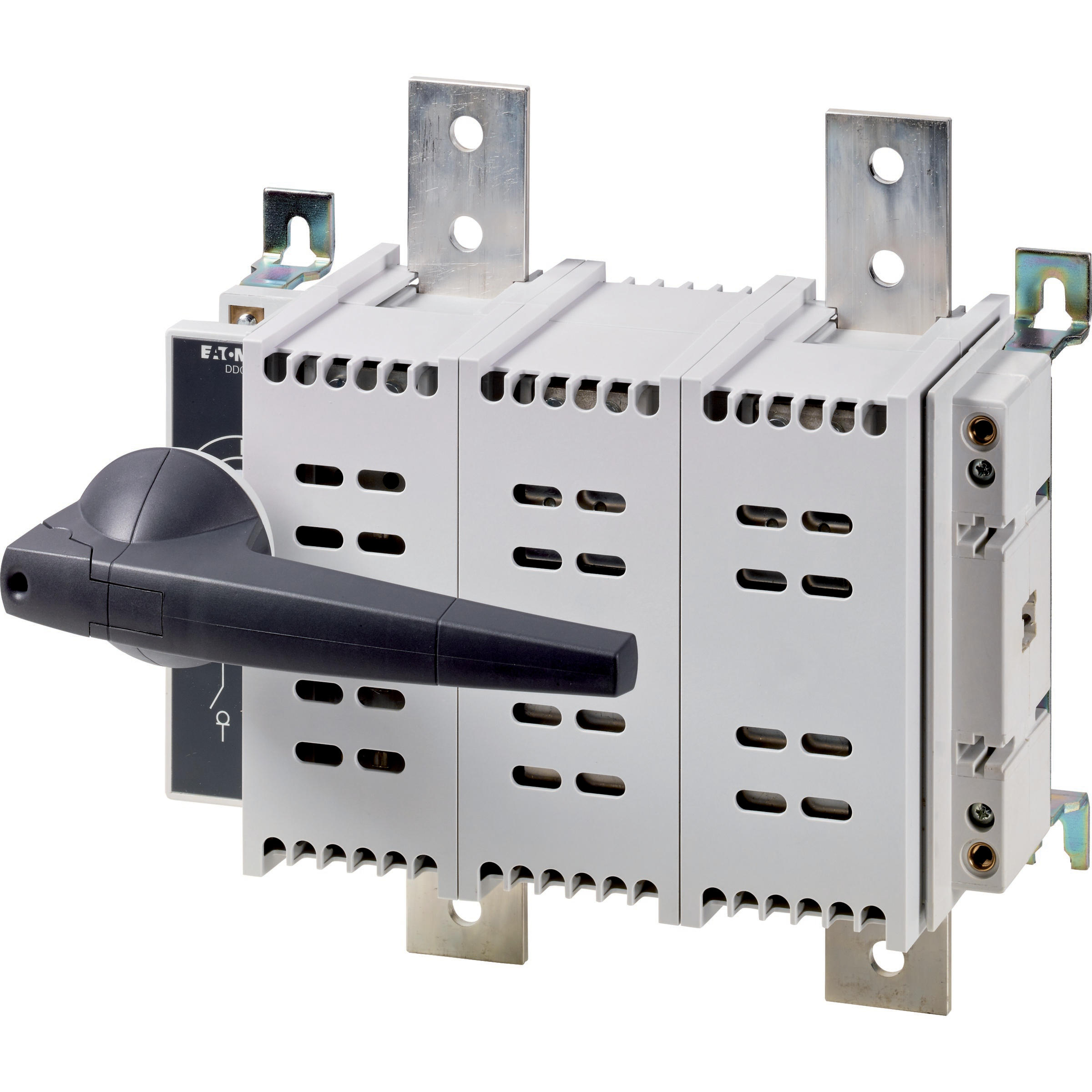 Rozłącznik izolacyjny DC, Zacisk śrubowy: Rozłącznik izolacyjny DC, Wyłącznik główny, wyłącznik serwisowy, Odniesienie grupy części DDC, z szarym pokrętłem, Informacje dotyczące dostarczonego sprzętu: styk pomocniczy montowany przez użytkownika., 2-biegunowy, Stopień ochrony: IP20, Projekt: mocowanie rozdzielnicy serwisowej, Znamionowy prąd ciągły: Iu = 1250 A, Normy: IEC/EN 60947, VDE 0660, IEC/EN 60204, Rozłącznik izolacyjny zgodnie z normą IEC/EN 60947-3