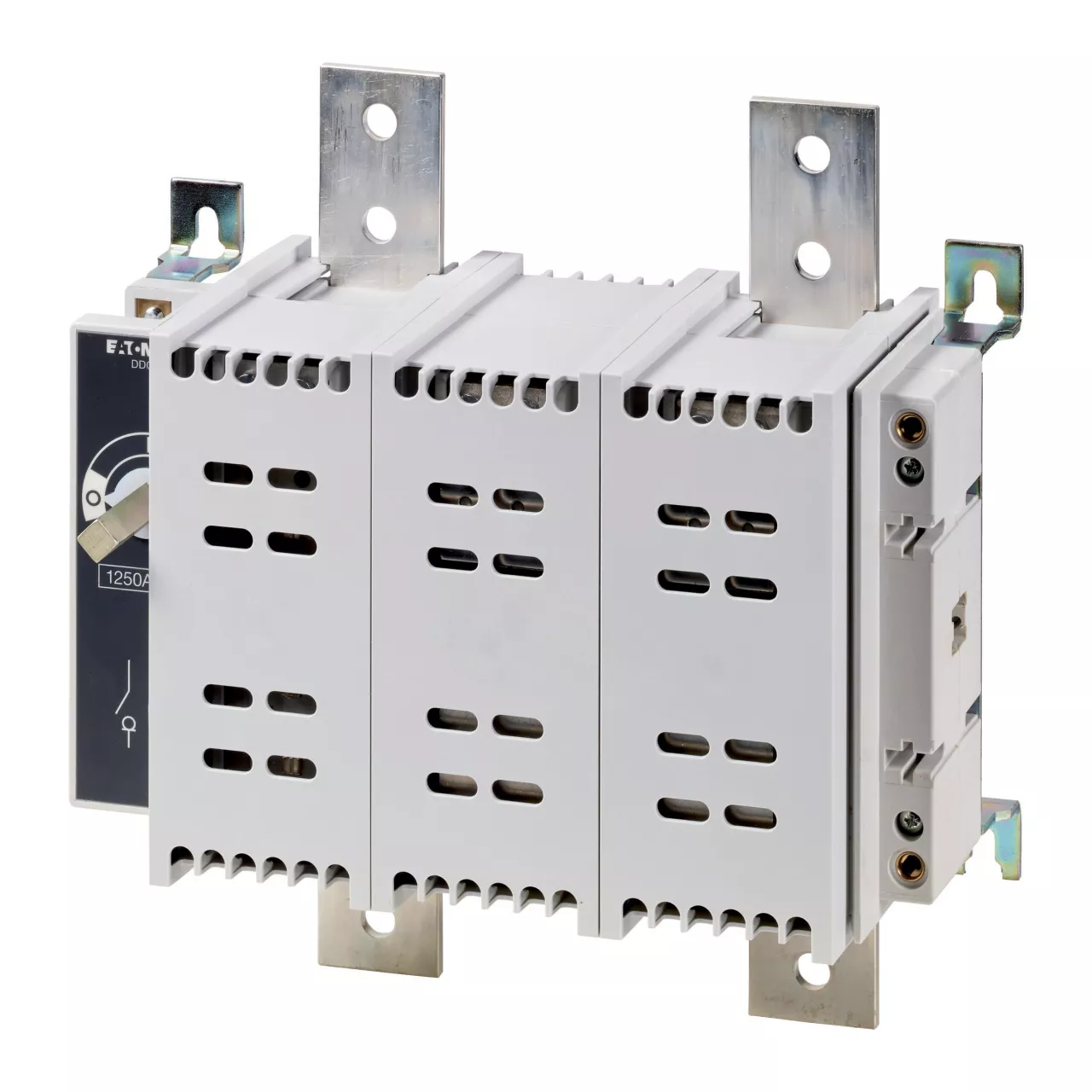 Rozłącznik izolacyjny DC, Zacisk śrubowy: Rozłącznik izolacyjny DC, Wyłącznik główny, wyłącznik serwisowy, Odniesienie grupy części DDC, Funkcja zatrzymania: opcjonalnie, Bez uchwytu obrotowego i wałka napędowego, Informacje dotyczące dostarczonego sprzętu: styk pomocniczy montowany przez użytkownika., 2-biegunowy, Stopień ochrony: IP20, Projekt: montaż na panelu tylnym, Znamionowy prąd ciągły: Iu = 1250 A, Normy: IEC/EN 60947, VDE 0660, IEC/EN 60204, Rozłącznik izolacyjny zgodnie z normą IEC/EN 60947-3