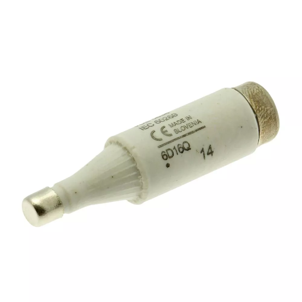 Zekering, zekeringelement, laagspanning, 6 A, AC 500 V, D1, gR, IEC, snel aansprekend, fles, E16, IEC 60269-3, VDE 0636, afschakelvermogen 50 kA