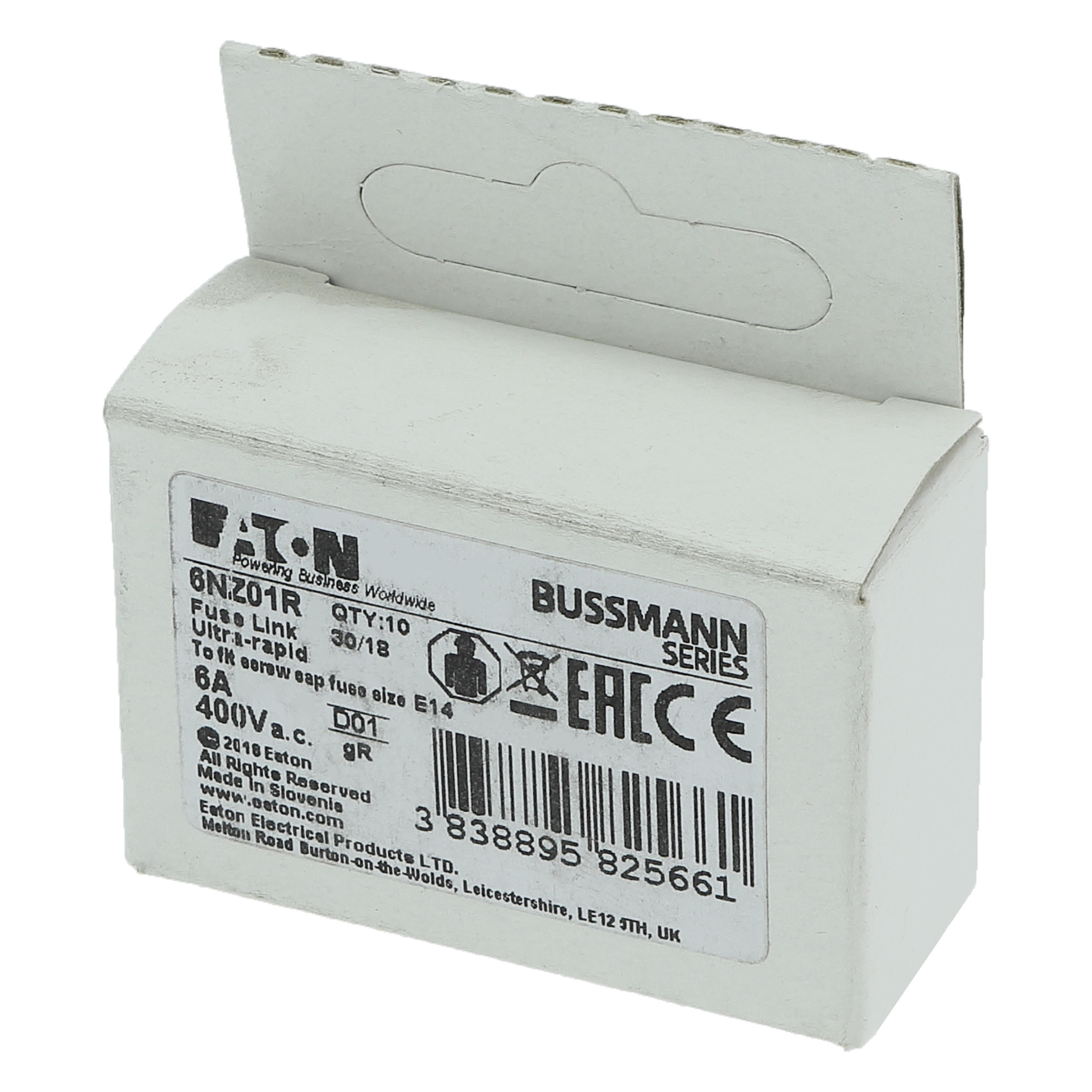 Zekering, zekeringelement, laagspanning, 6 A, AC 400 V, D01, gR, IEC, ultrasnel, E14, voor huishoudelijke en algemeen industriële toepassingen, IEC 60269-3, VDE 0636