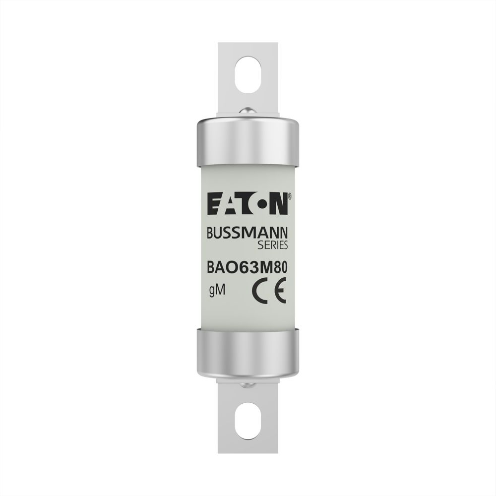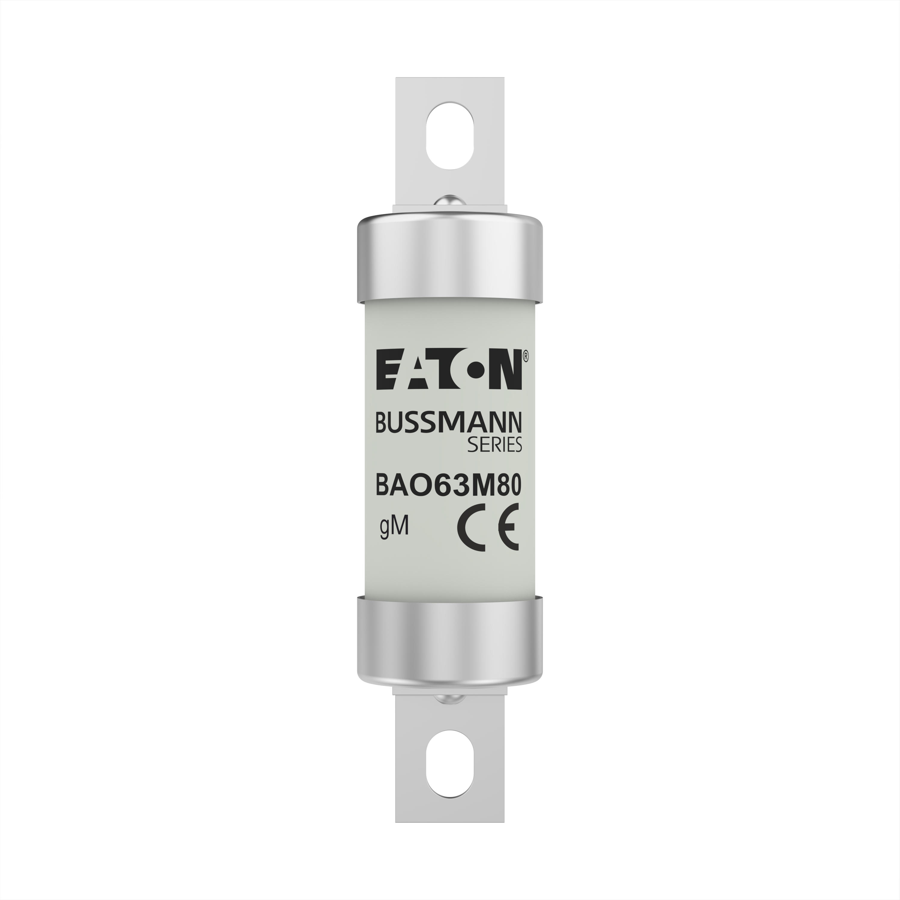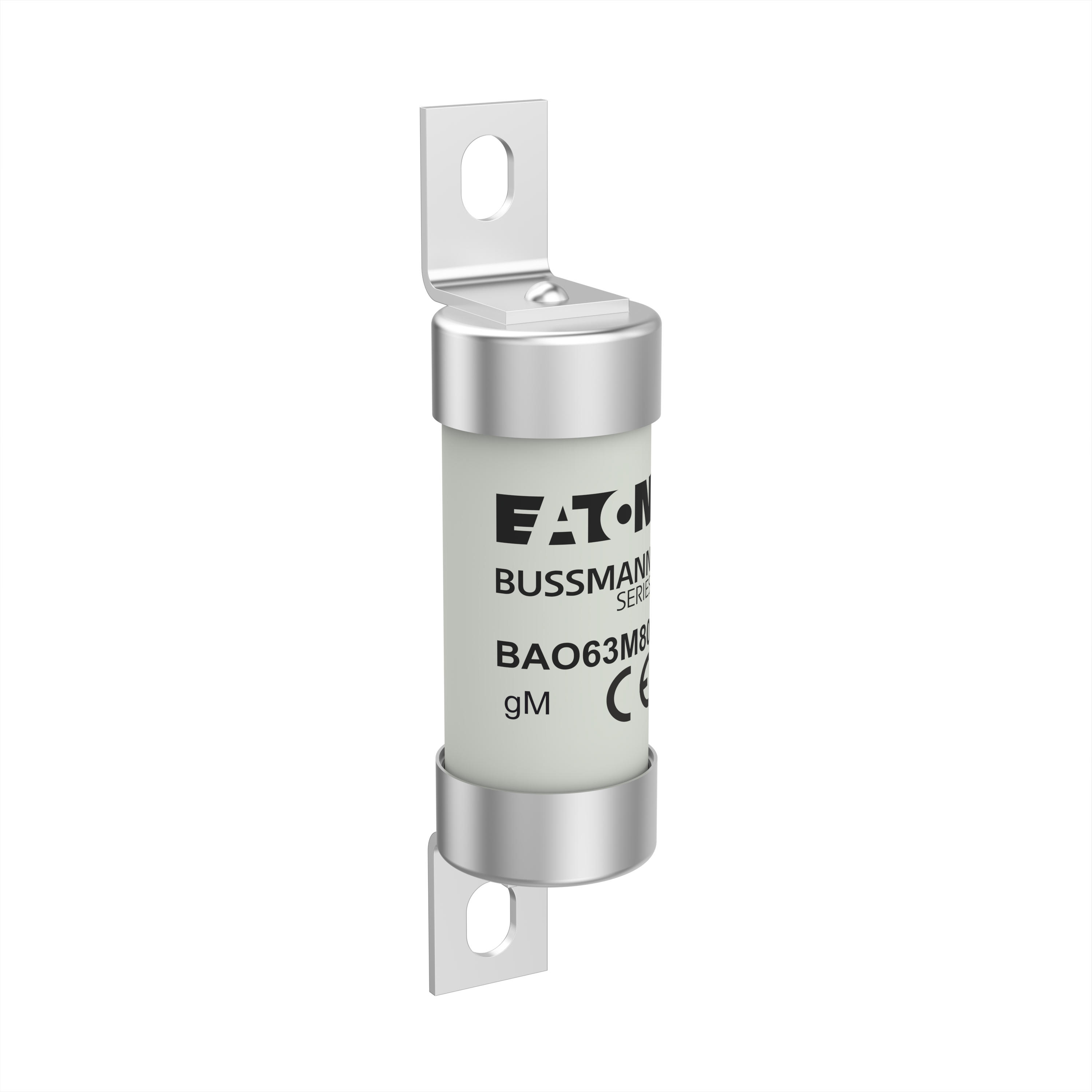 Fuse, Fuse-link, low voltage, 63 A, AC 500 V, BS88/A3, 21 x 87 mm, gM, BS, offset bolted tags, general industrial applications, BS88-2, IEC 60269-2, Breaking Capacity 80 kA, Optional accessories fuse-holder CM63F RS63