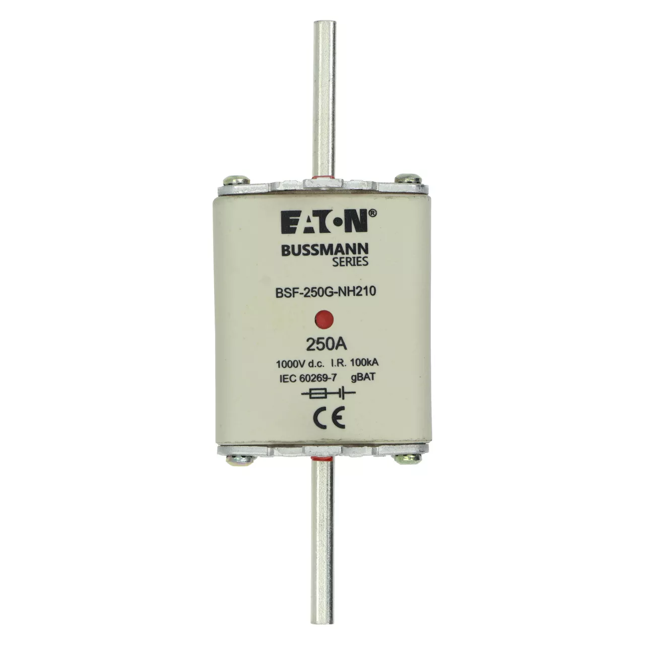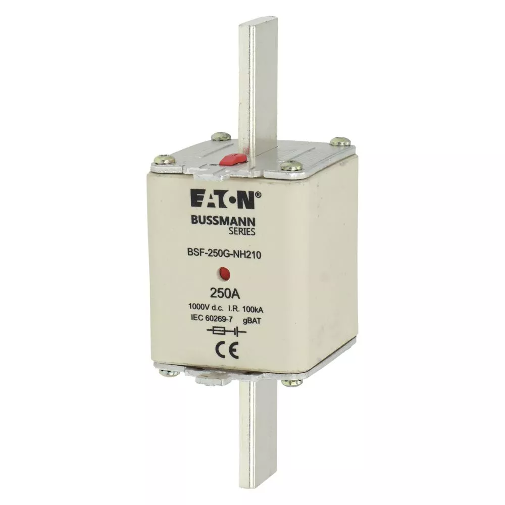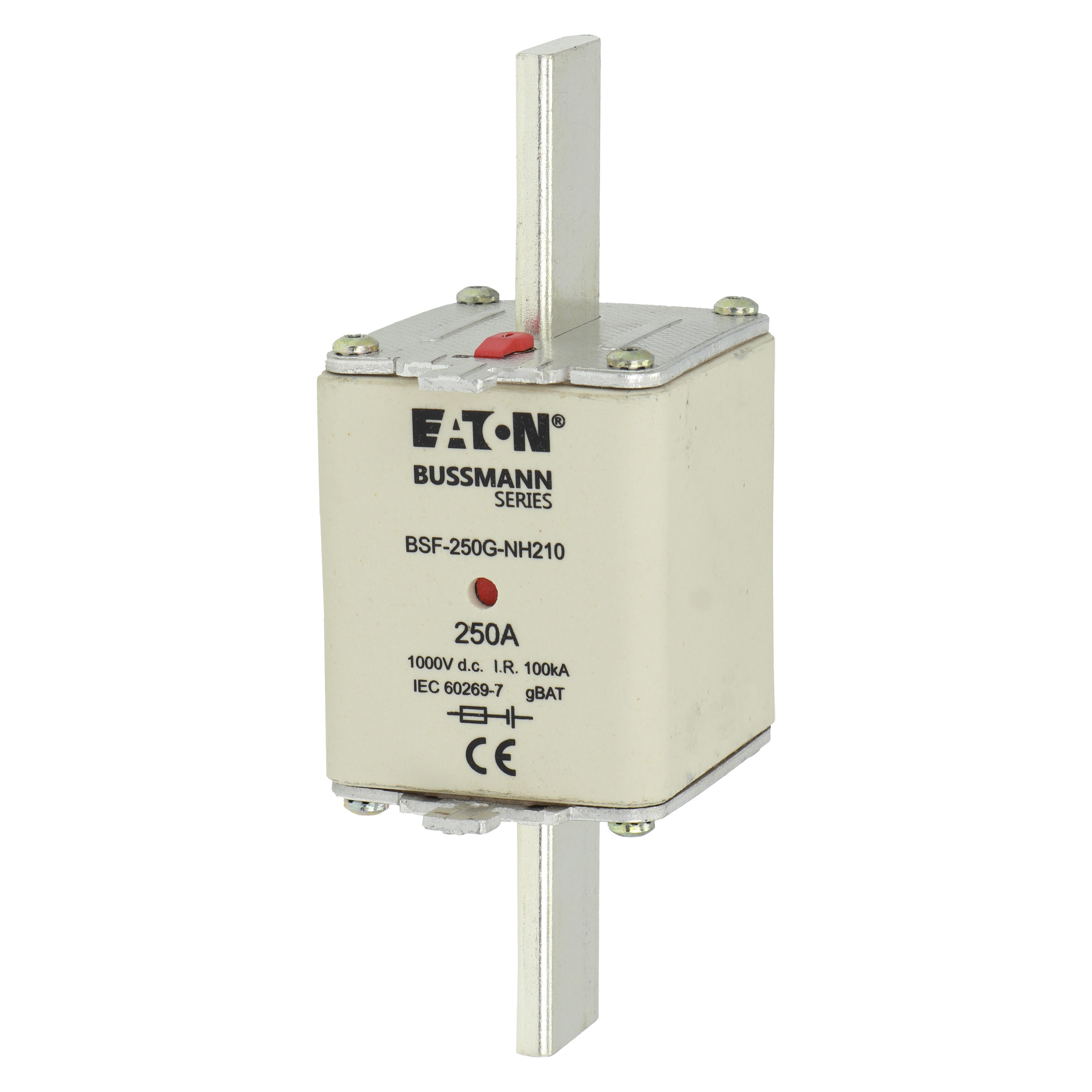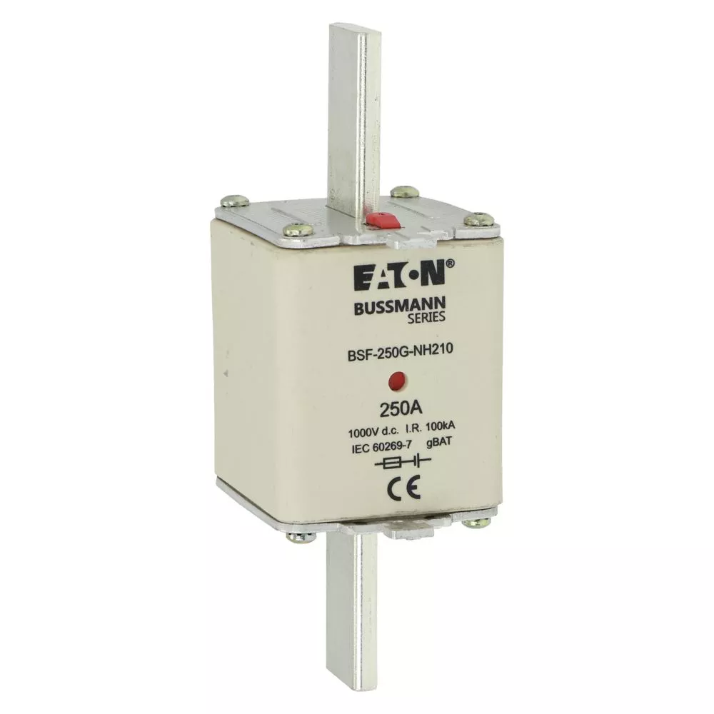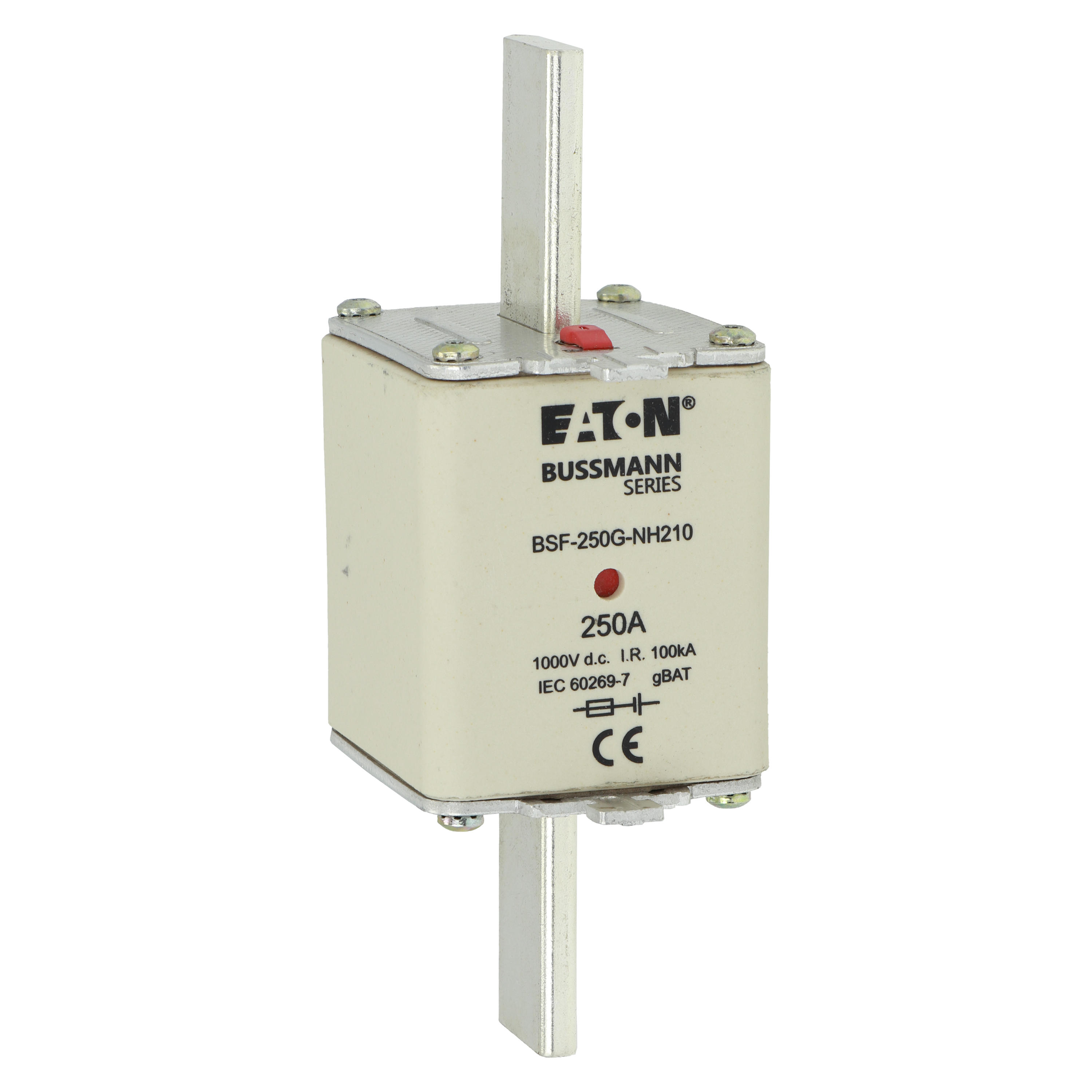 Bezpiecznik, wkładka topikowa, szybka, 250 A, 1000 V DC, NH2, 54 x 61 x 150 mm, gBat, IEC 60269-7, zdolność wyłączania 100 kA, korpus prostopadłościenny z zaciskami nożowymi, ochrona akumulatorowych magazynów energii, chroni i izoluje skrzynki łączeniowe baterii, opcjonalne akcesoria: podstawa bezpiecznikowa SD2-D-PV