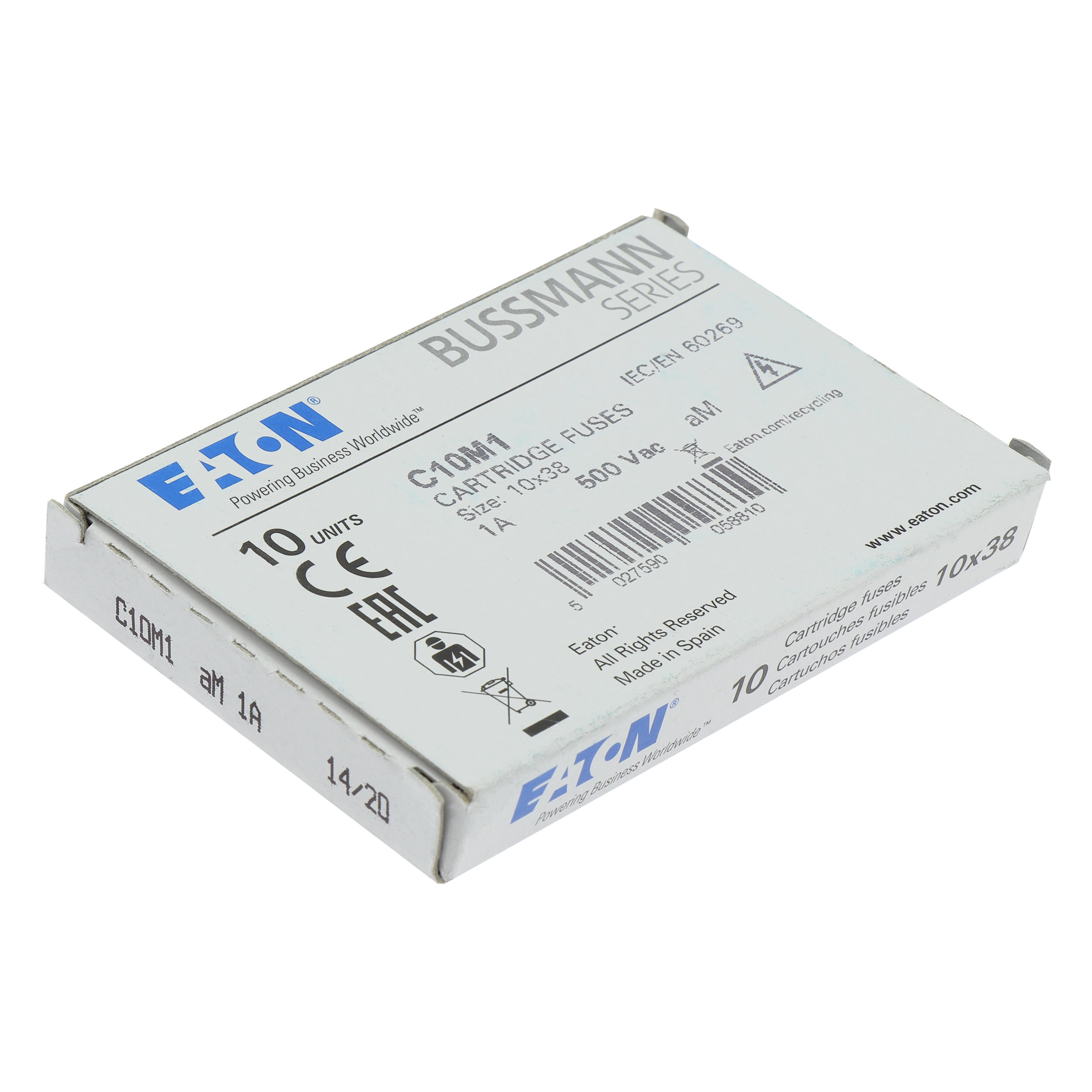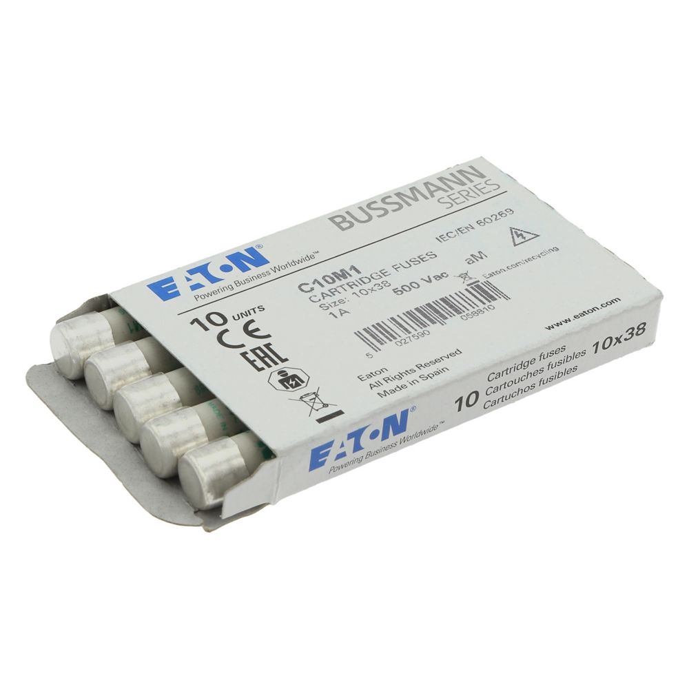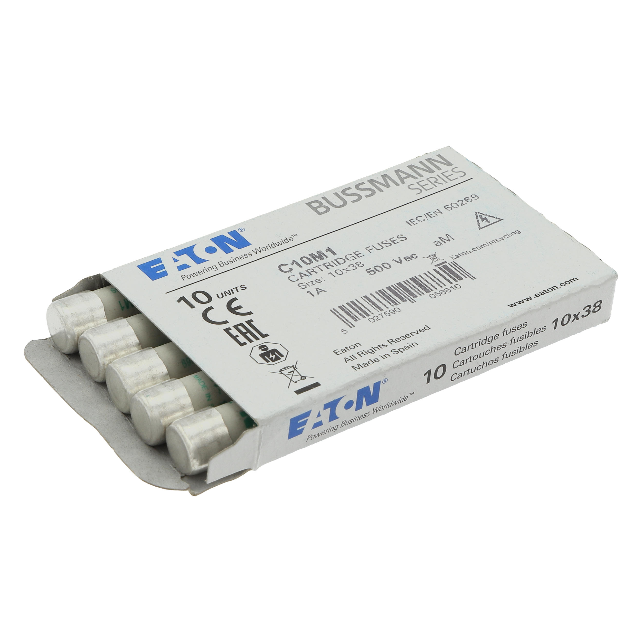 Bezpiecznik, Wkładka bezpiecznikowa, Niskie napięcie, 1 A, AC 500 V, 10 x 38 mm, aM, IEC, cylindryczny, Ochrona silnika, do zastosowań przemysłowych, IEC 60269-2