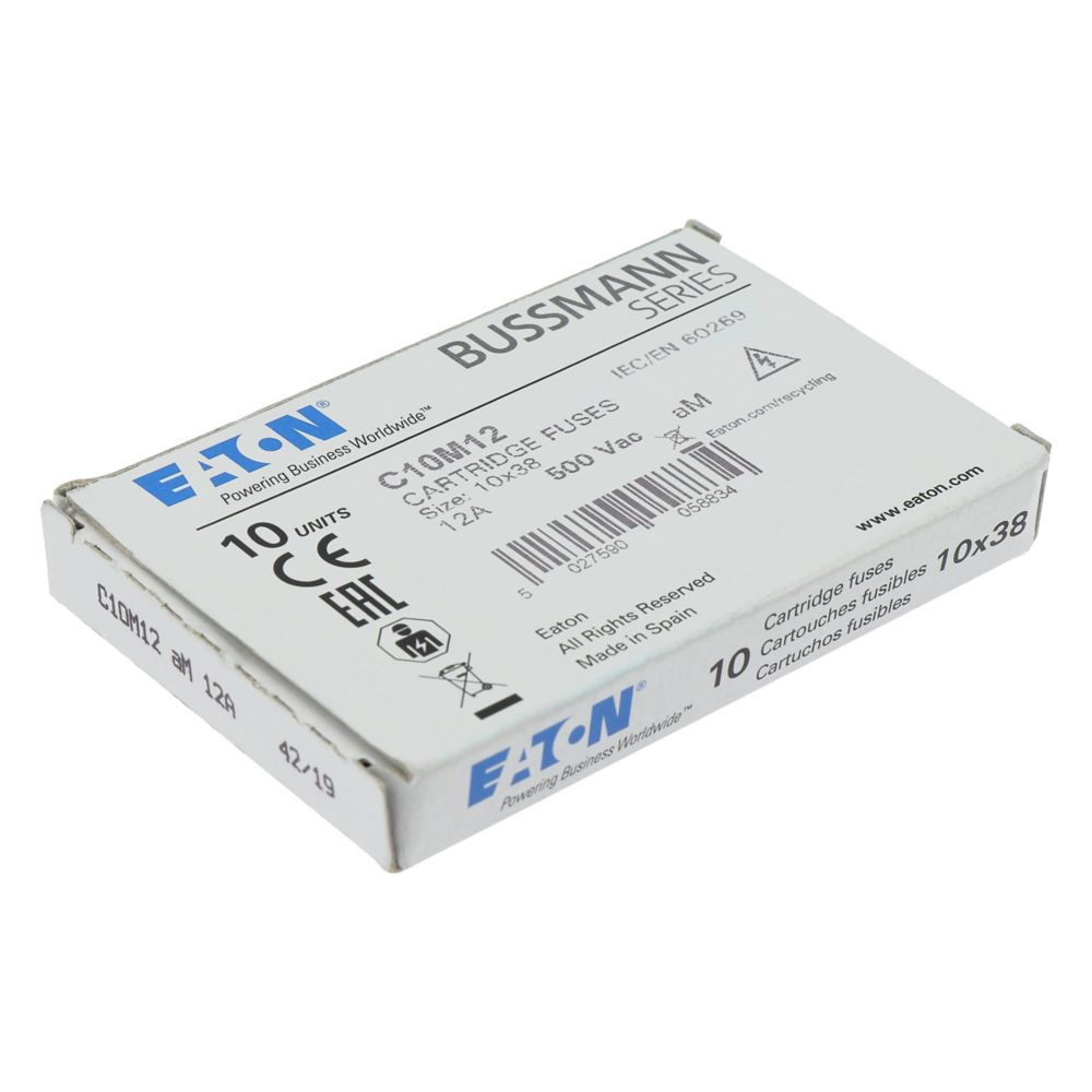 Bezpiecznik, Wkładka bezpiecznikowa, Niskie napięcie, 12 A, AC 500 V, 10 x 38 mm, aM, IEC, cylindryczny, Ochrona silnika, do zastosowań przemysłowych, IEC 60269-2
