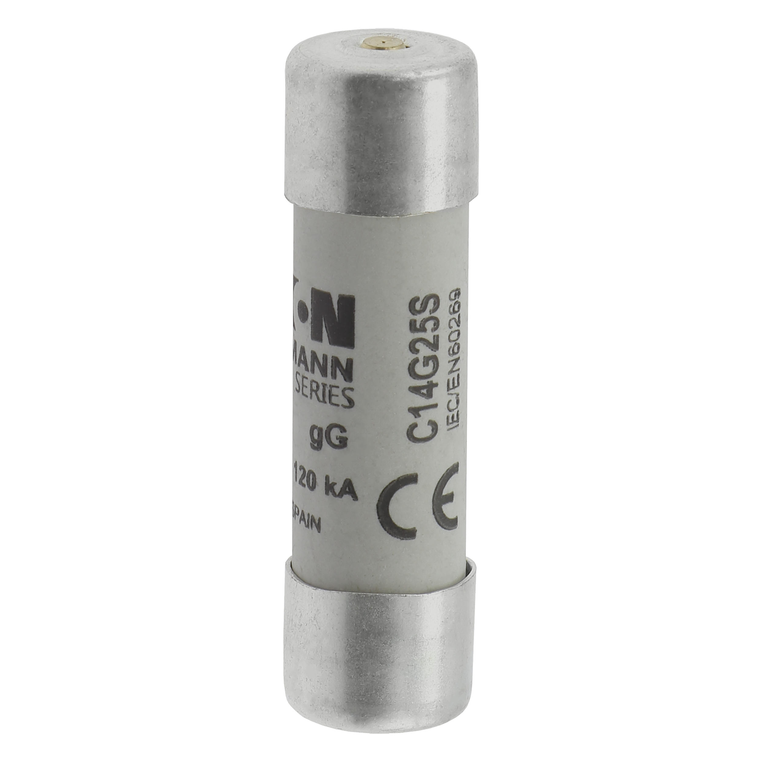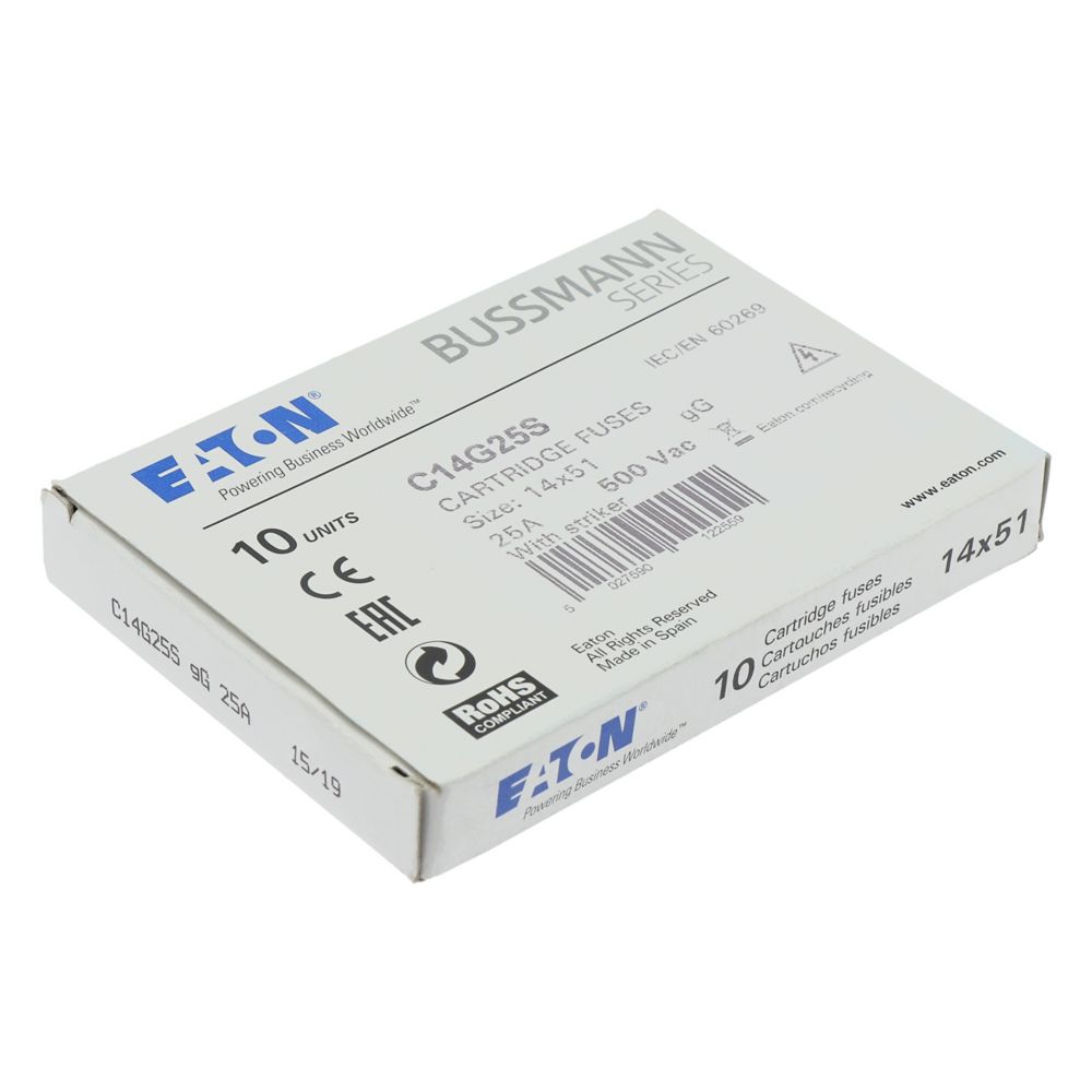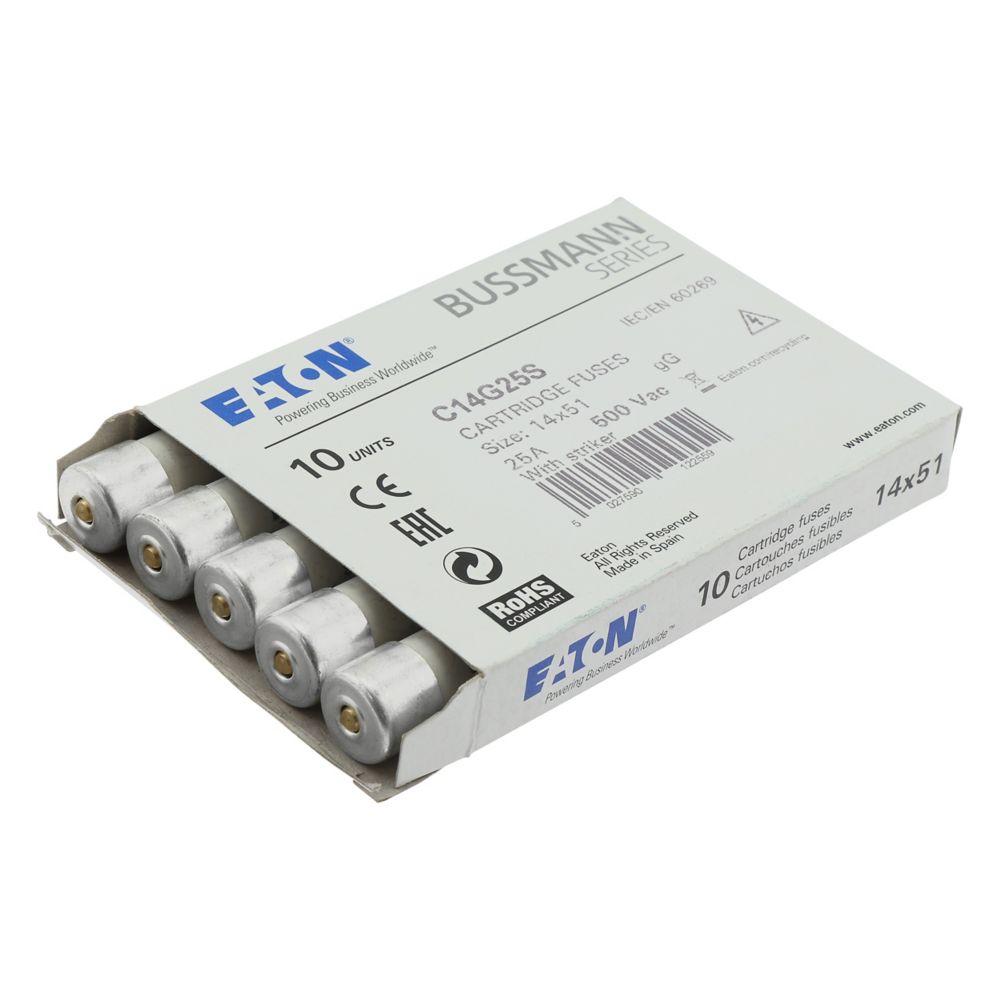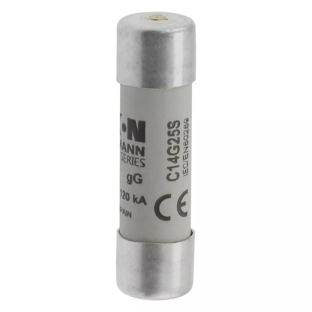 zekering, zekeringelement, laagspanning, 25 A, AC 500 V, 14 x 51 mm, gL/gG, IEC, met slagpin, cilindrisch, IEC 60269-2, afschakelvermogen 120 kA