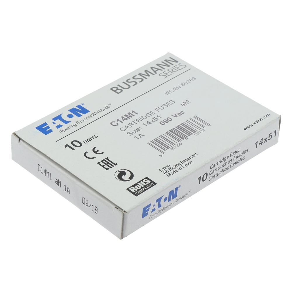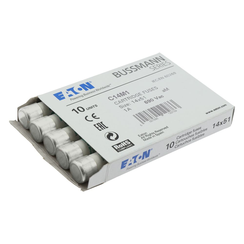 Bezpiecznik, Wkładka bezpiecznikowa, Niskie napięcie, 1 A, AC 690 V, 14 x 51 mm, aM, IEC, cylindryczny, Ochrona silnika, do zastosowań przemysłowych, IEC 60269-2