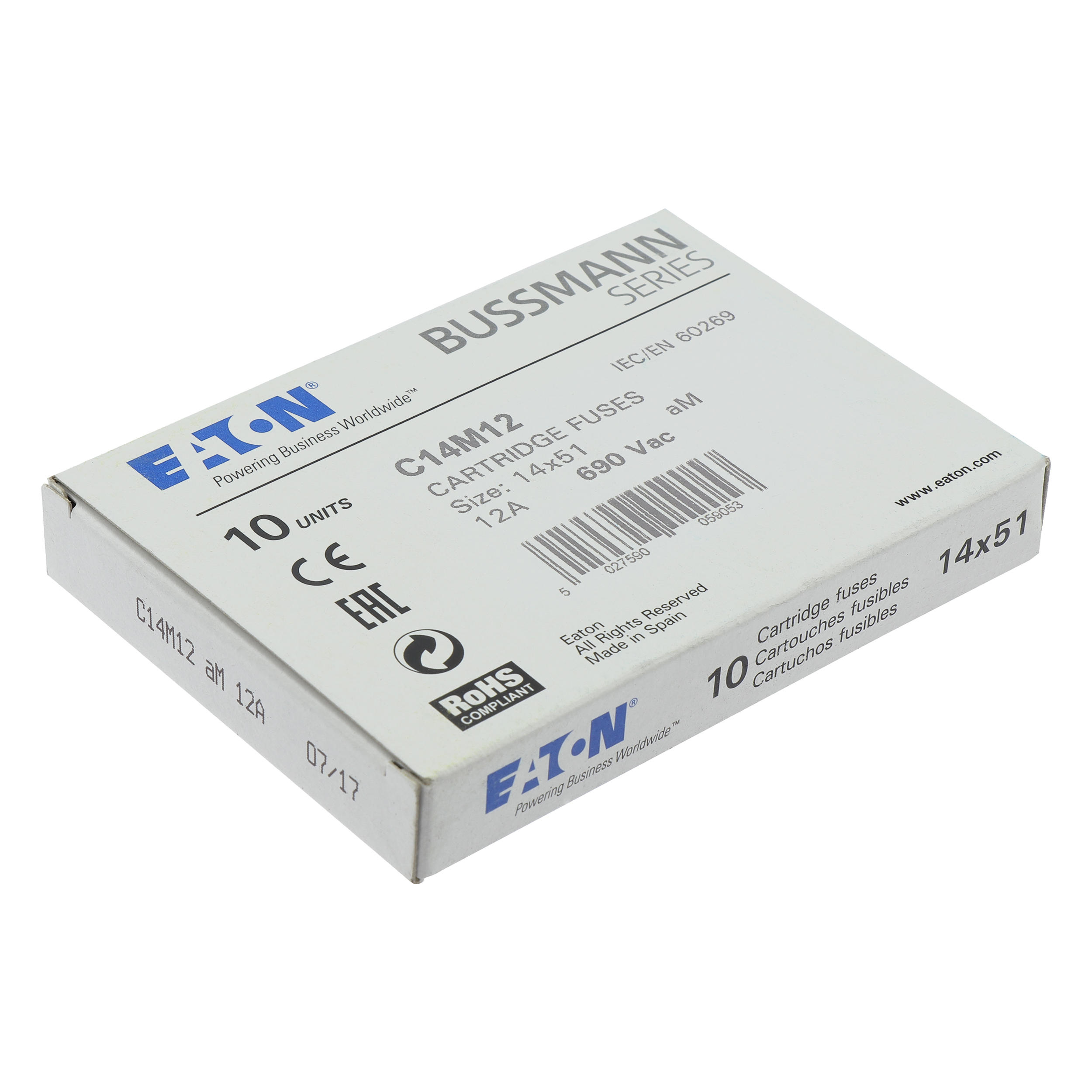 C14M12 Wkładka cylindryczna 14 x 51 mm 12A AM 690V AC