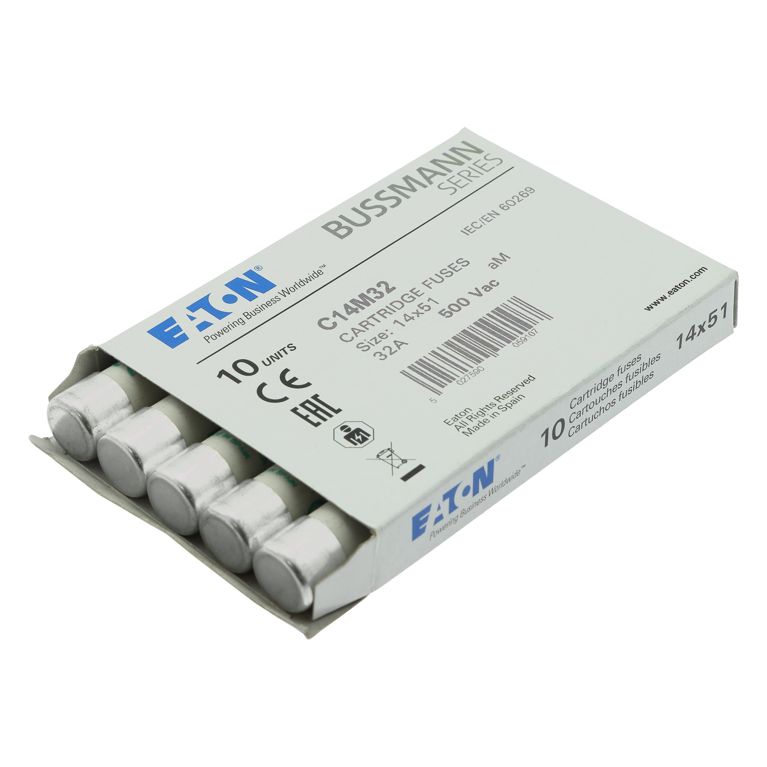 C14M32 Wkładka cylindryczna 14 x 51 mm 32A AM 500V AC