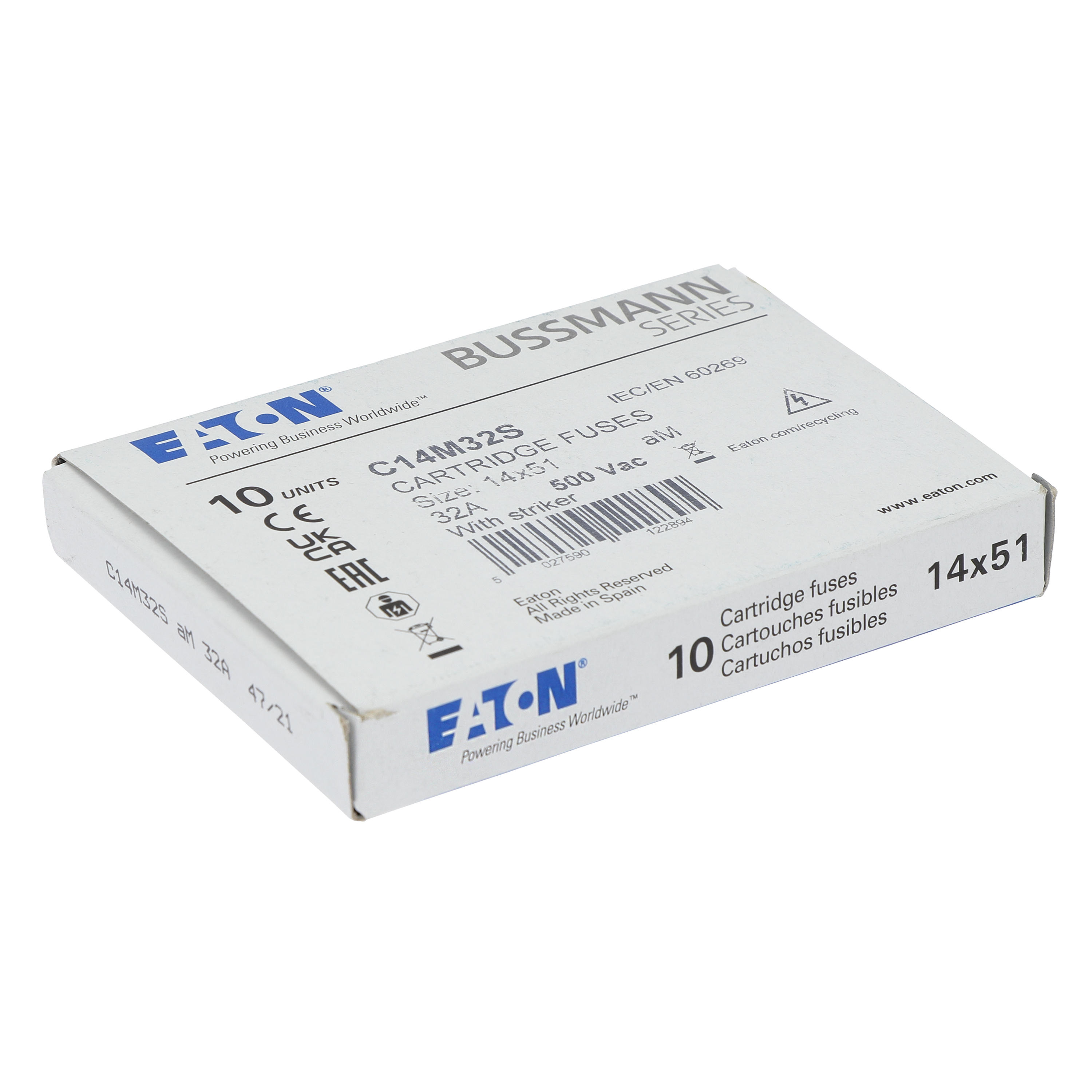 C14M32S Wkładka cylindryczna z wybijakiem, 14 x 51 32A GG 500V AC