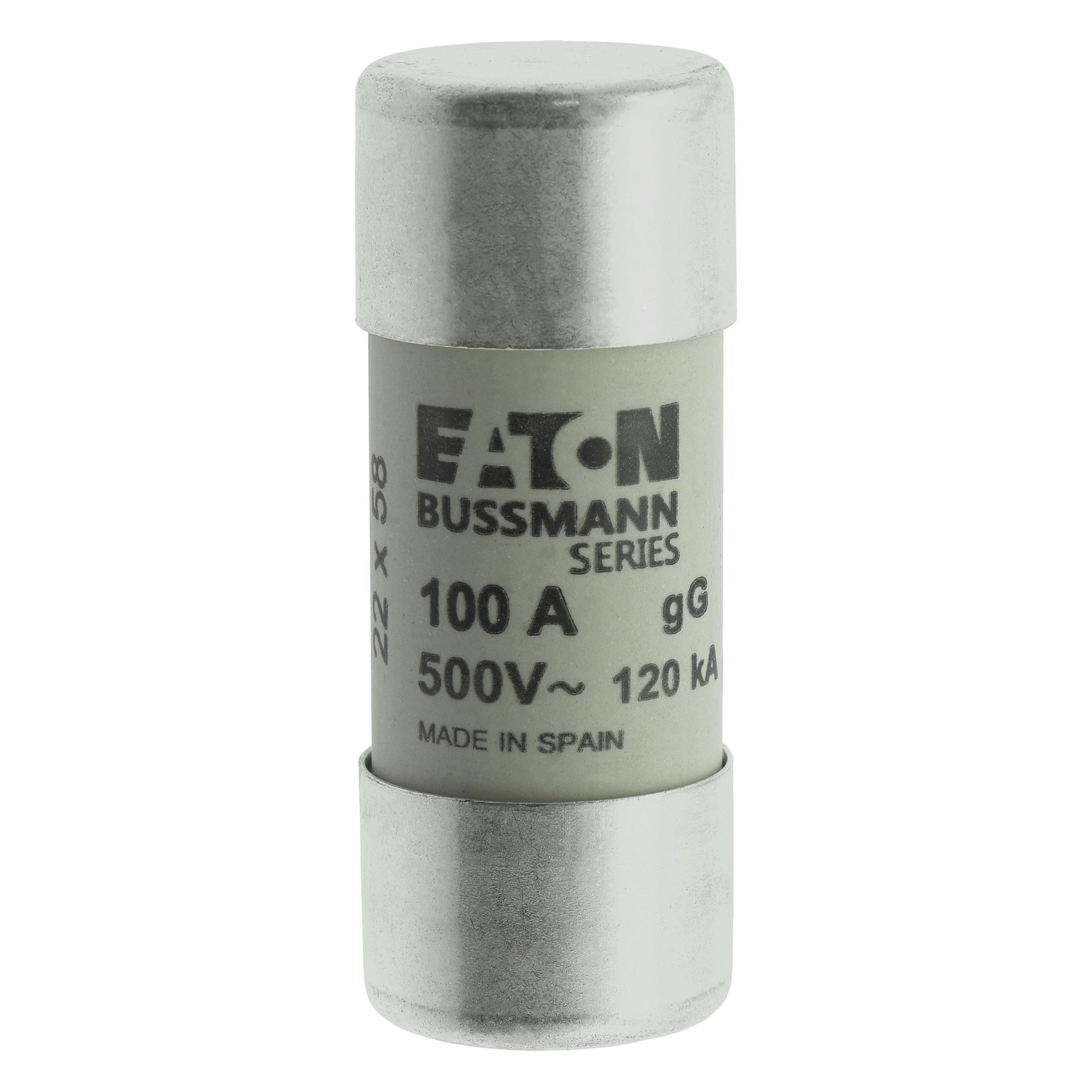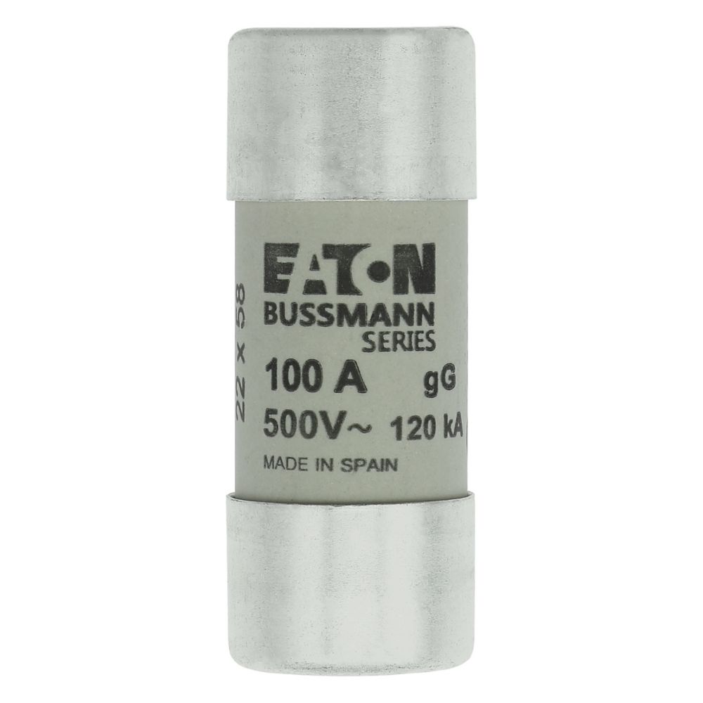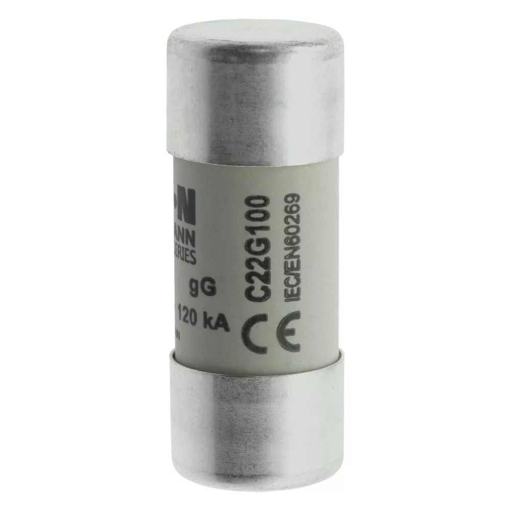 zekering, zekeringelement, laagspanning, 100 A, AC 500 V, 22 x 58 mm, gL/gG, IEC, cilindrisch, voor industriële toepassingen, voor algemeen gebruik, IEC 60269-2