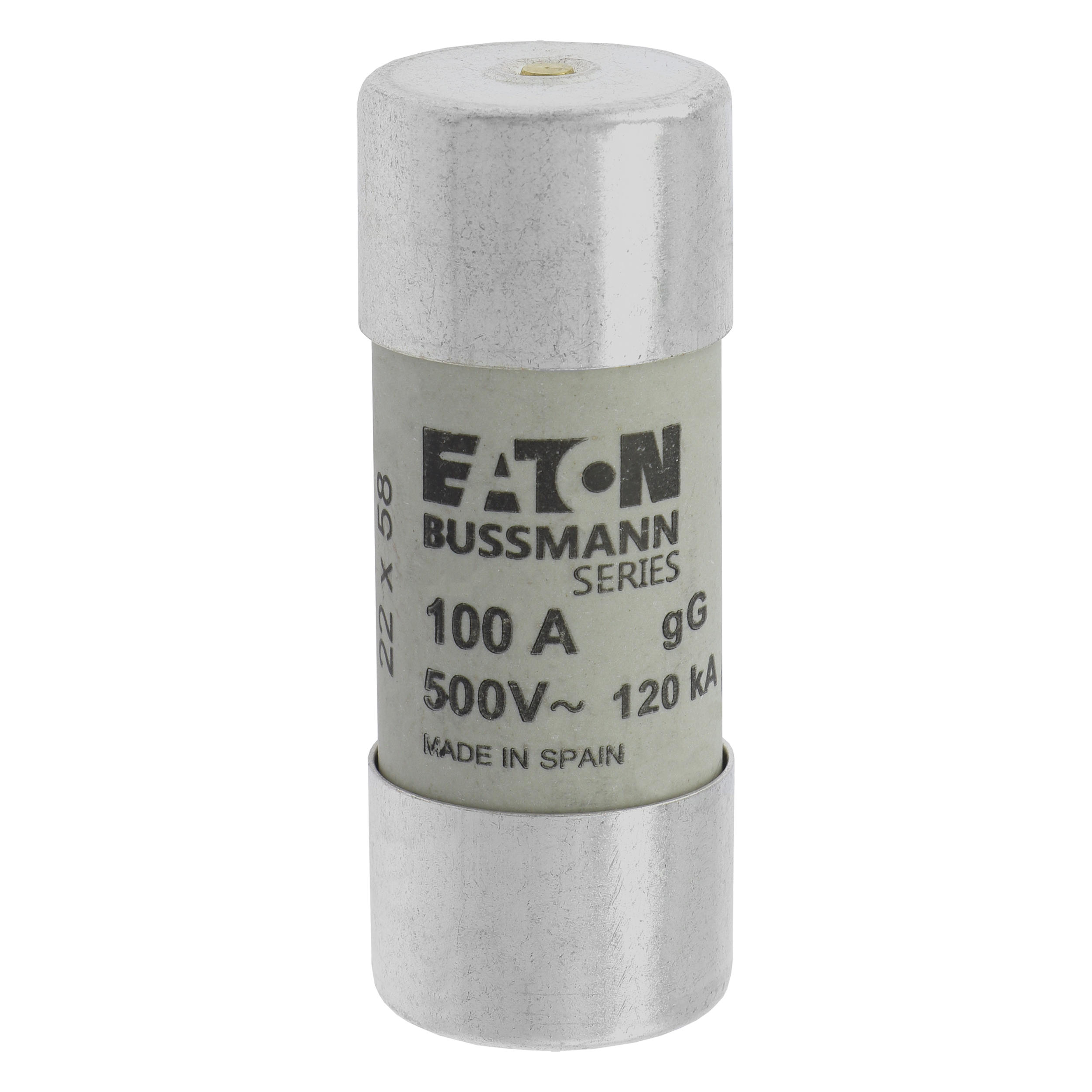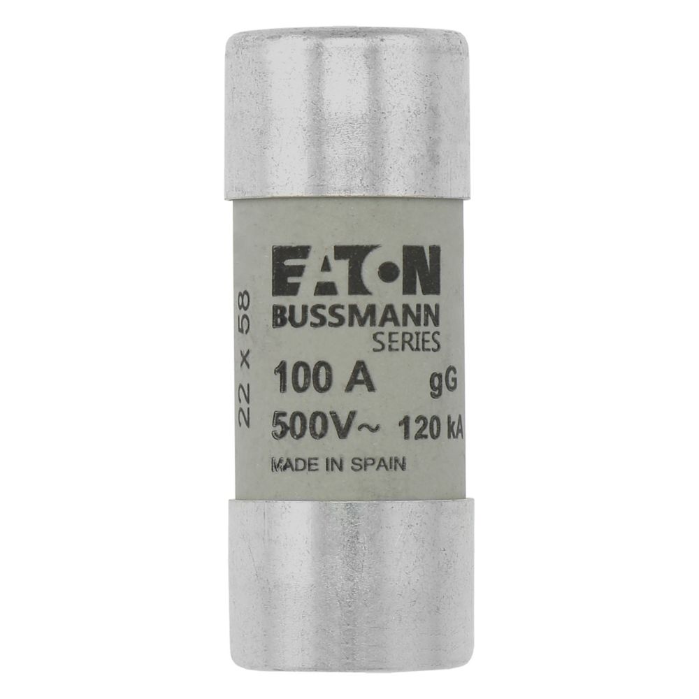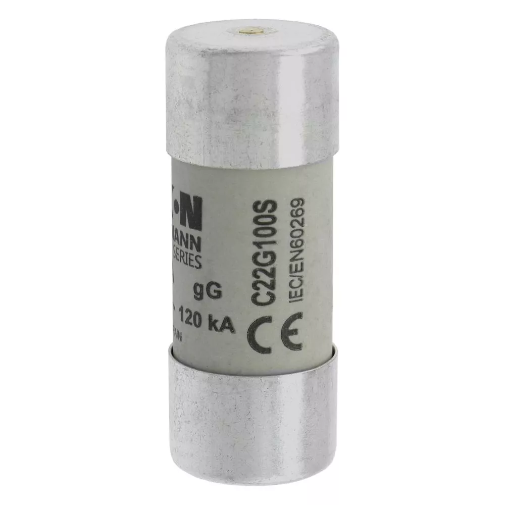zekering, zekeringelement, laagspanning, 100 A, AC 500 V, 22 x 58 mm, gL/gG, IEC, met slagpin, cilindrisch, IEC 60269-2, afschakelvermogen 120 kA