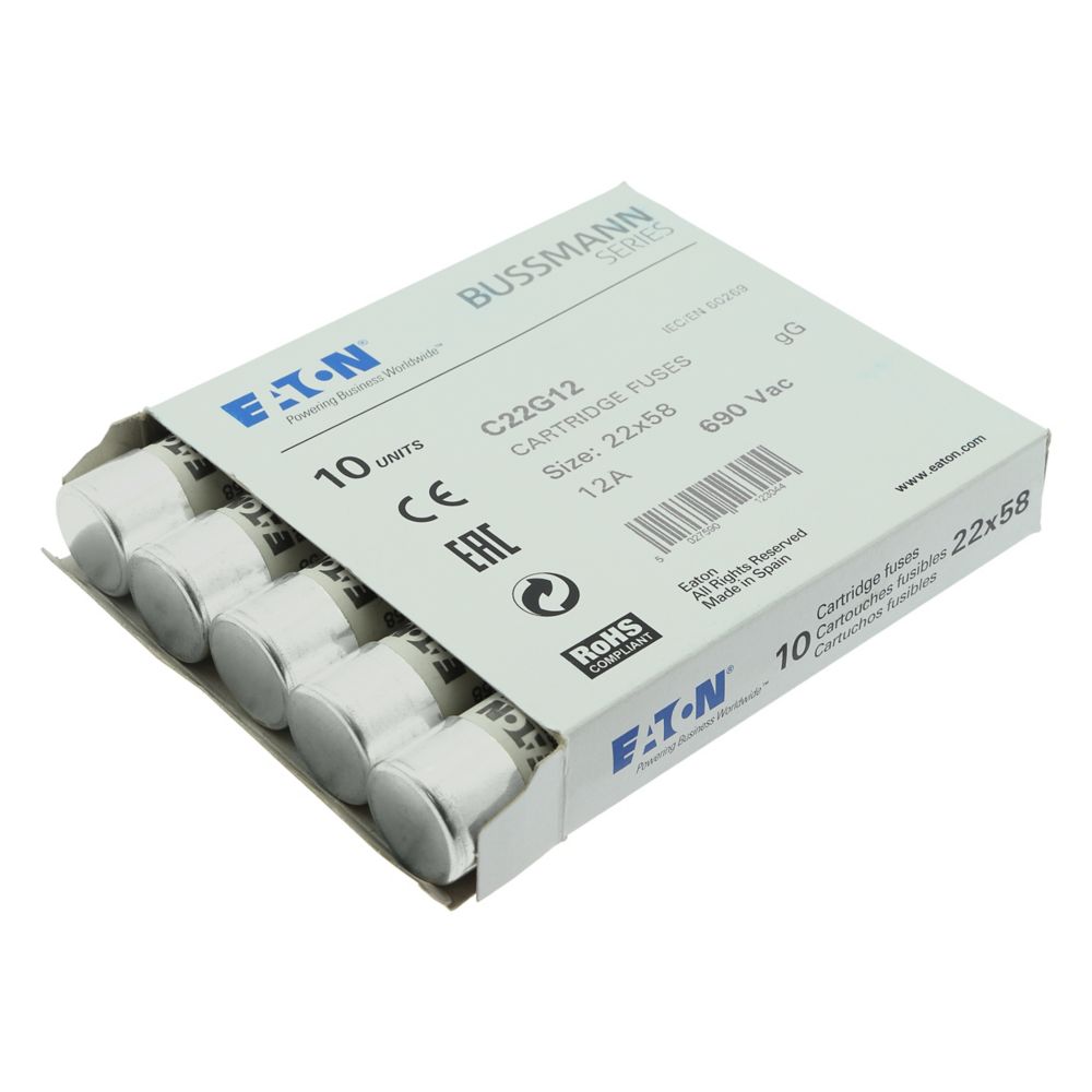 zekering, zekeringelement, laagspanning, 12 A, AC 690 V, 22 x 58 mm, gL/gG, IEC, cilindrisch, voor industriële toepassingen, voor algemeen gebruik, IEC 60269-2
