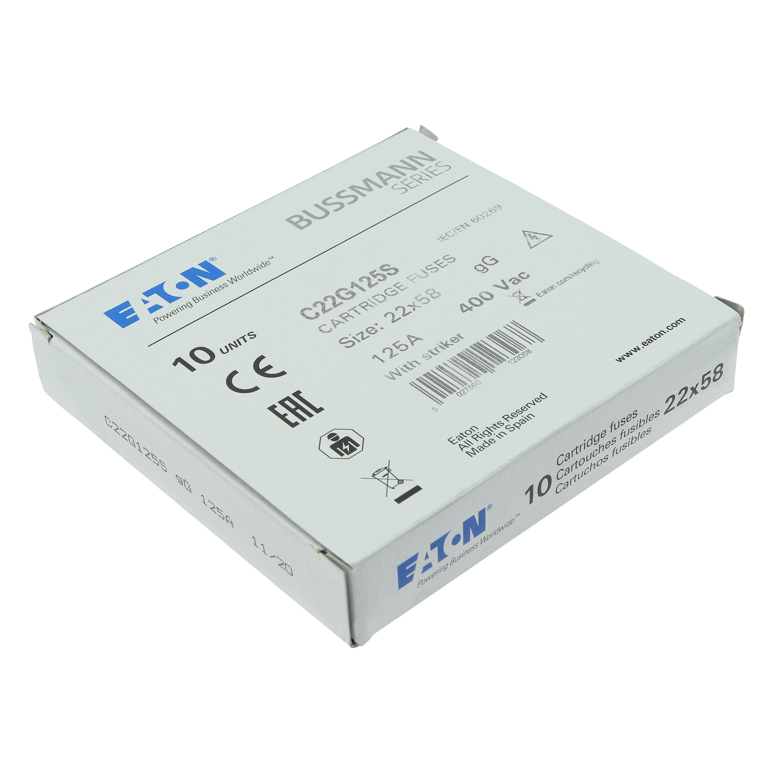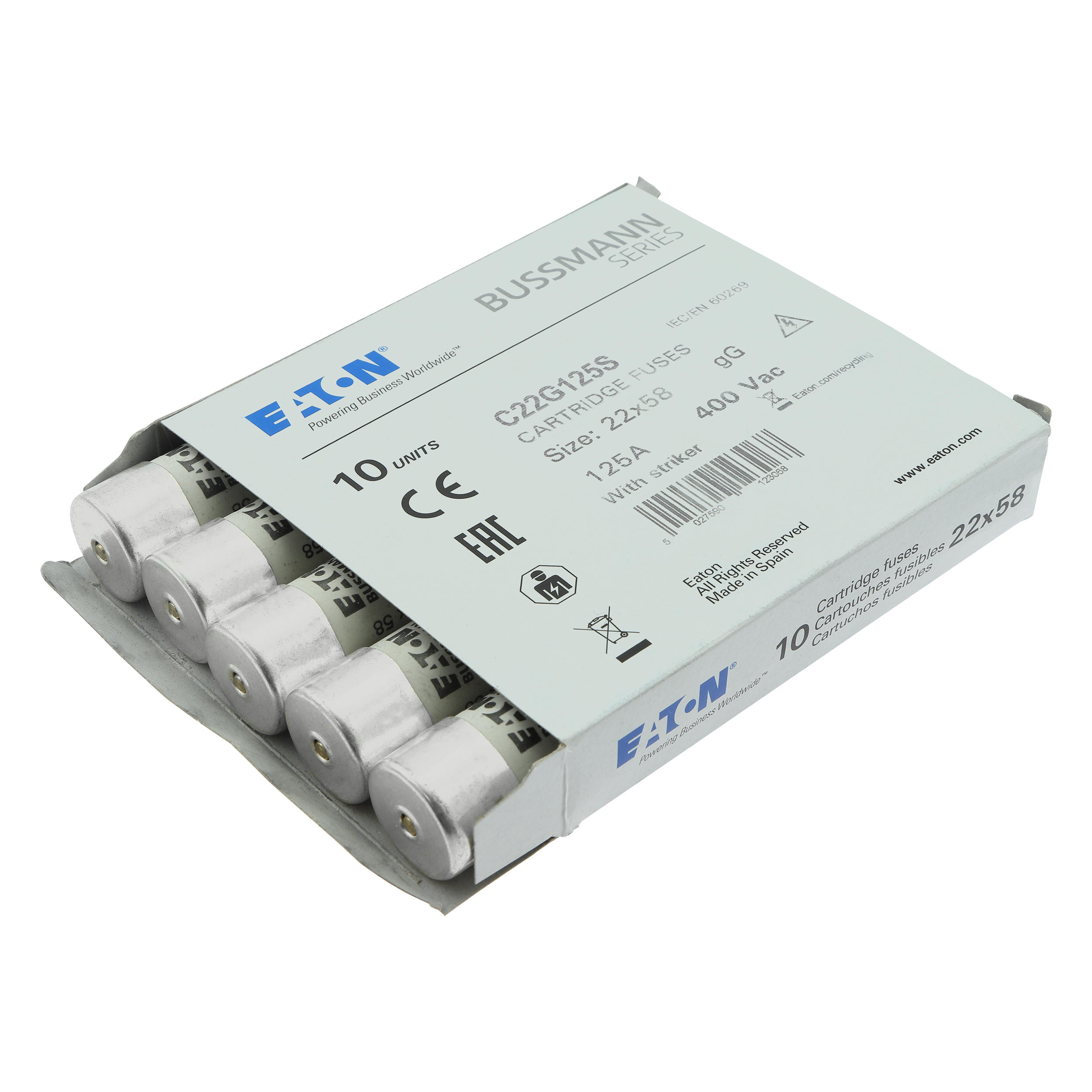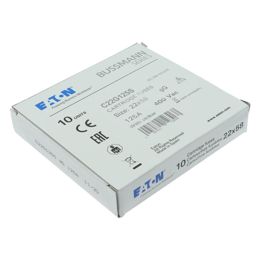 Zekering, zekeringelement, laagspanning, 125 A, AC 400 V, 22 x 58 mm, gL/gG, IEC, met slagpin, cilindrisch, IEC 60269-2, afschakelvermogen 120 kA