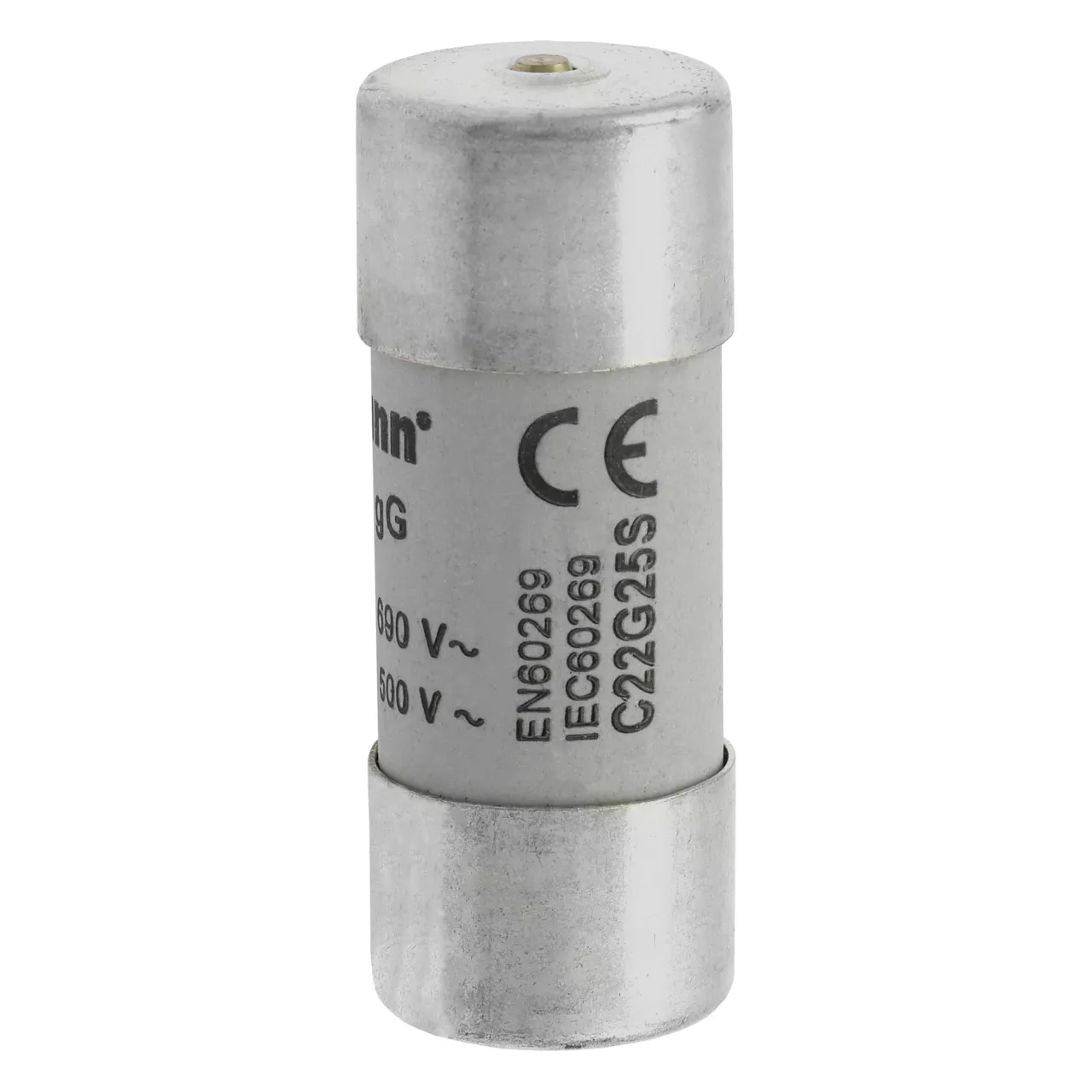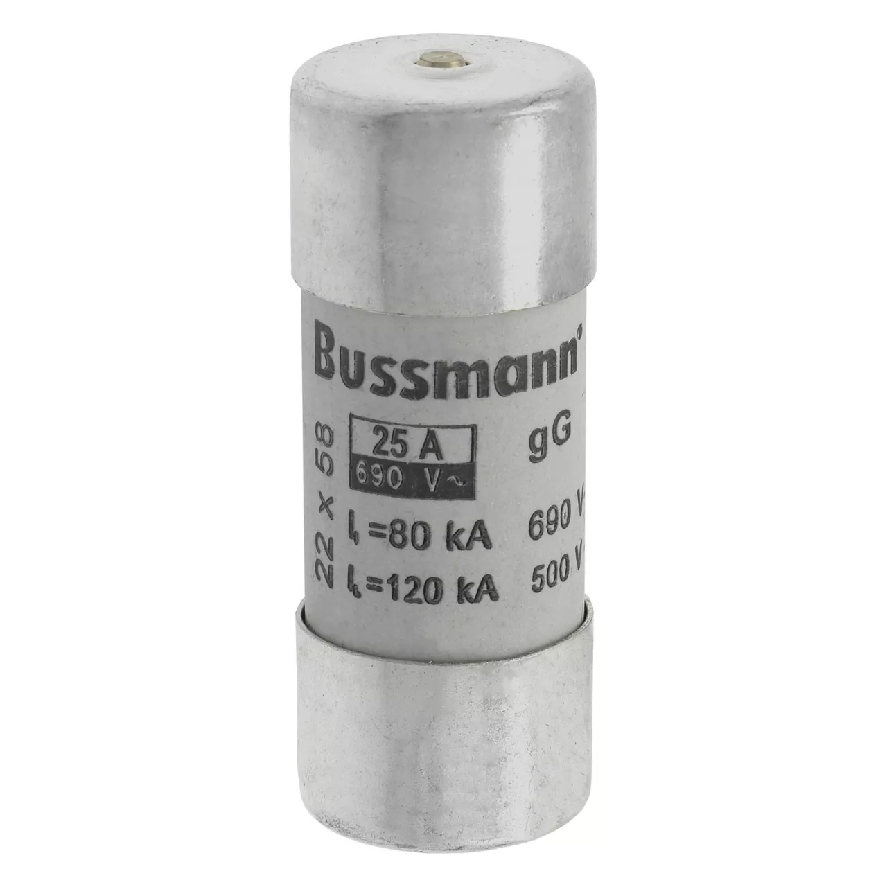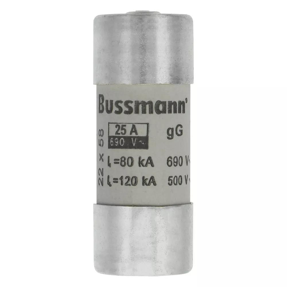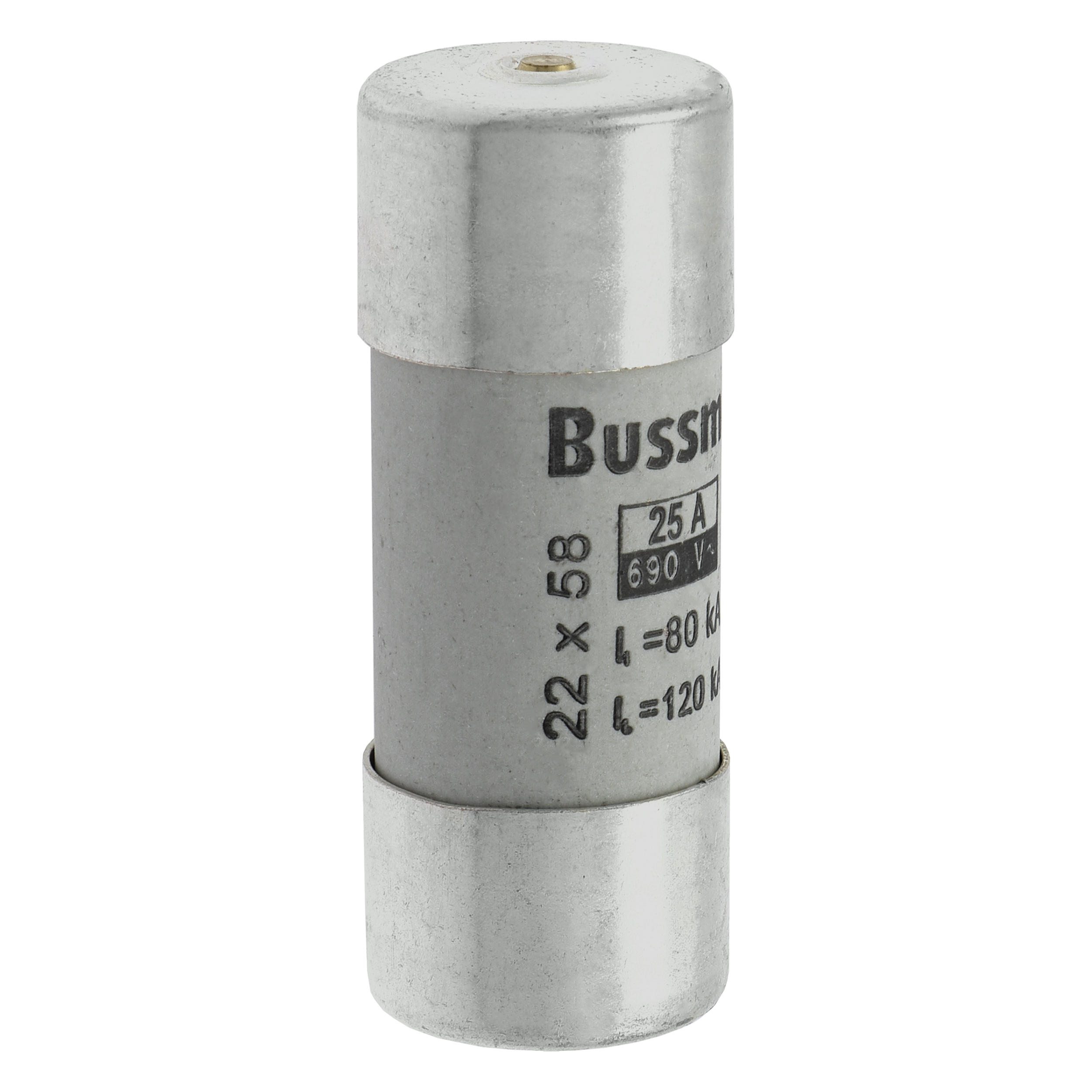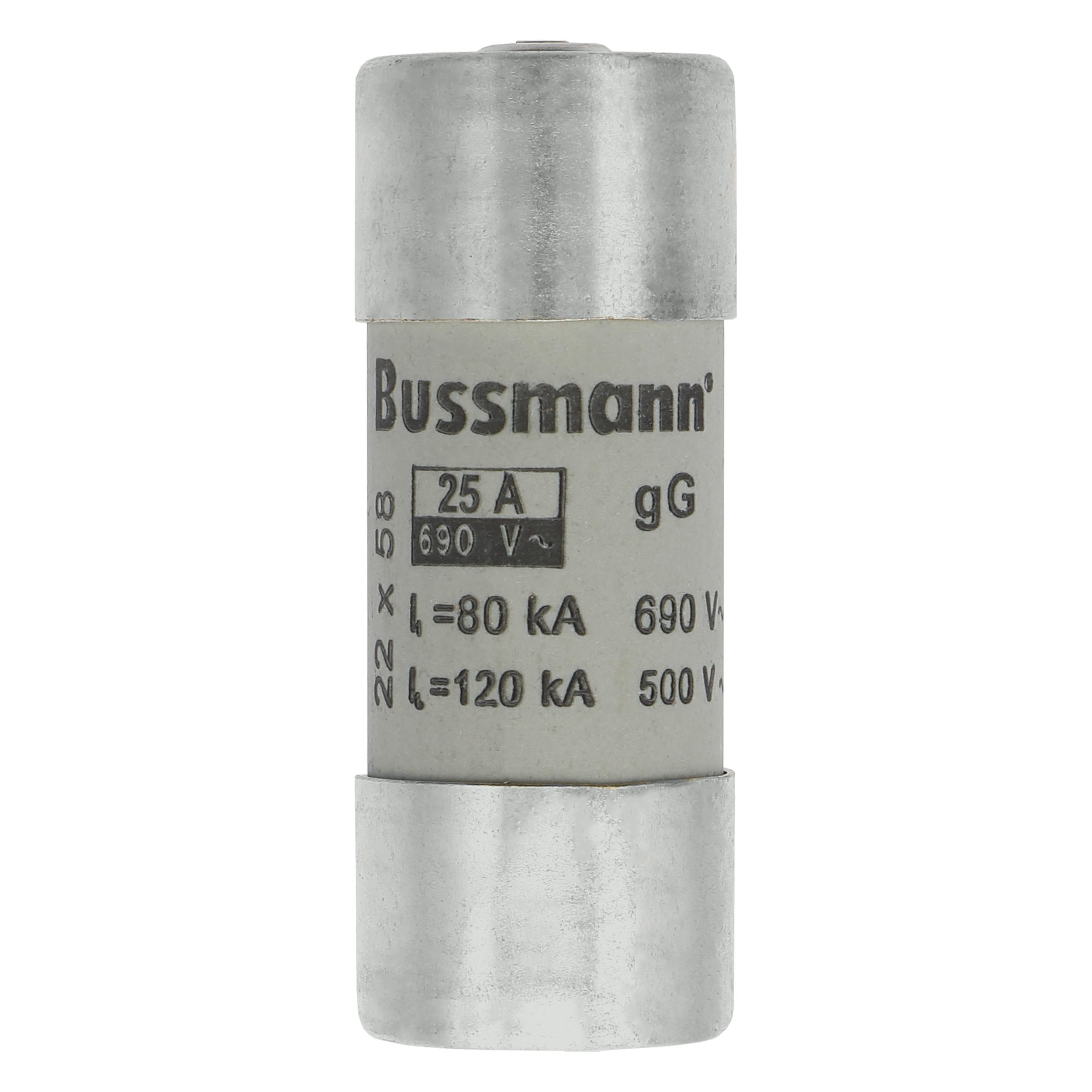 zekering, zekeringelement, laagspanning, 25 A, AC 690 V, 22 x 58 mm, gL/gG, IEC, met slagpin, cilindrisch, IEC 60269-2, afschakelvermogen 80 kA