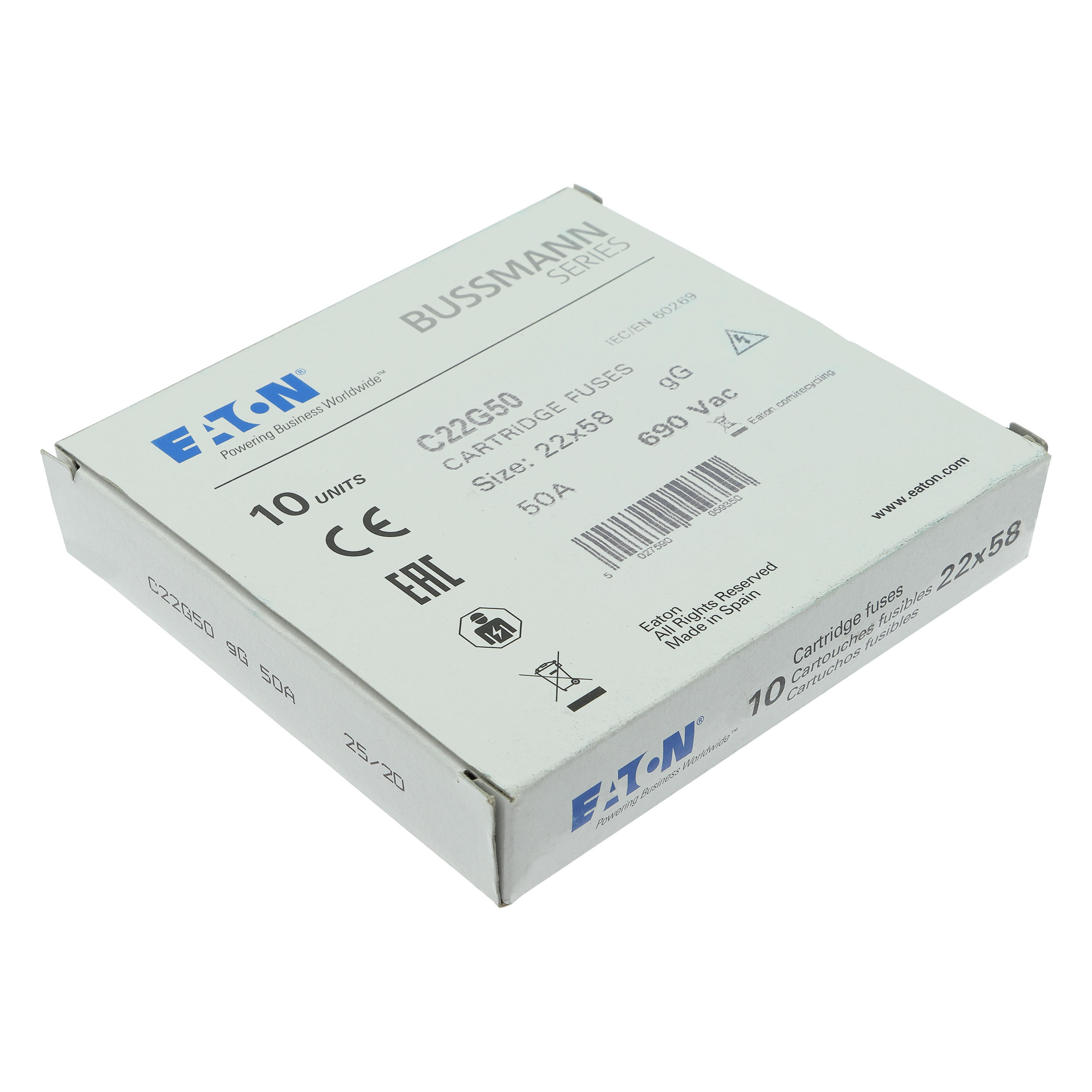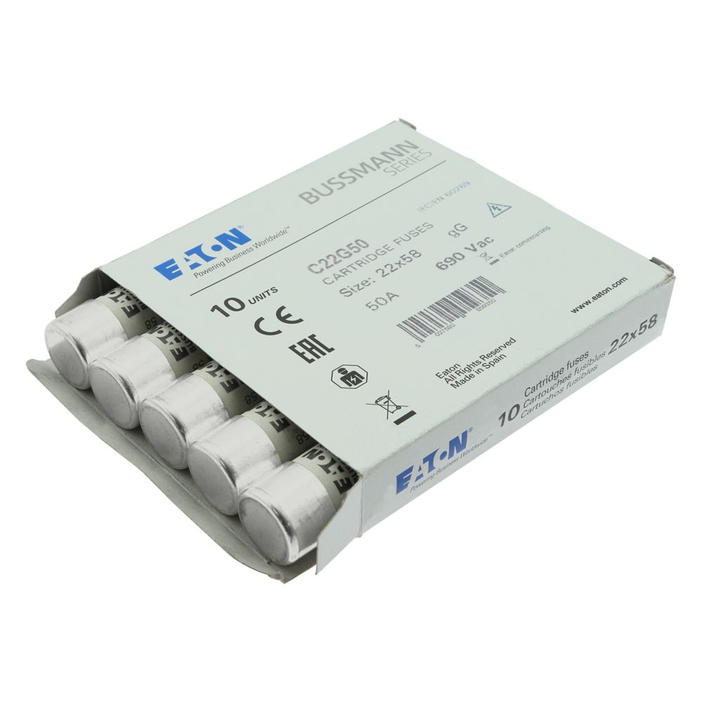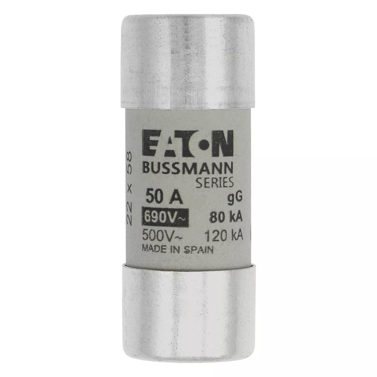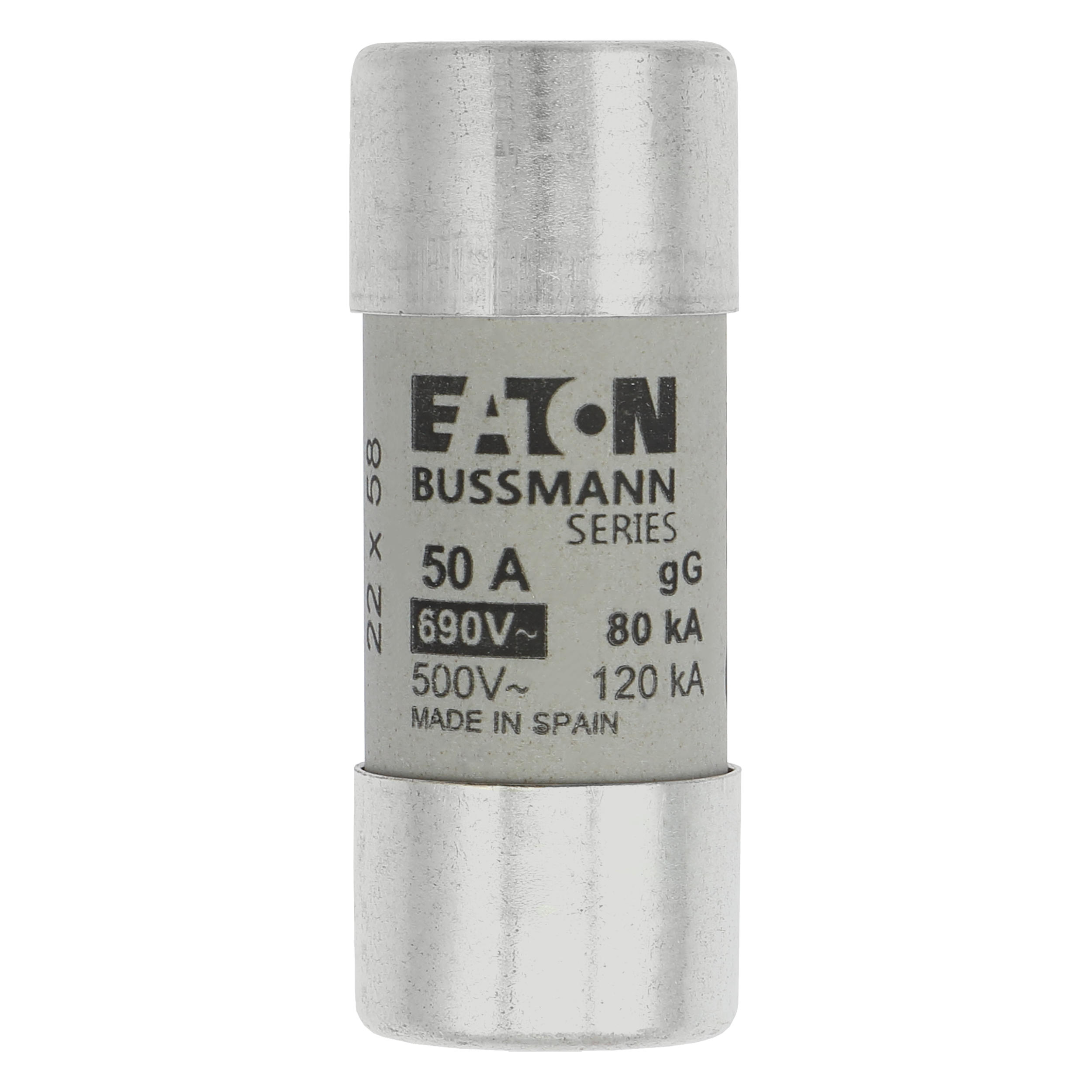 zekering, zekeringelement, laagspanning, 50 A, AC 690 V, 22 x 58 mm, gL/gG, IEC, cilindrisch, voor industriële toepassingen, voor algemeen gebruik, IEC 60269-2