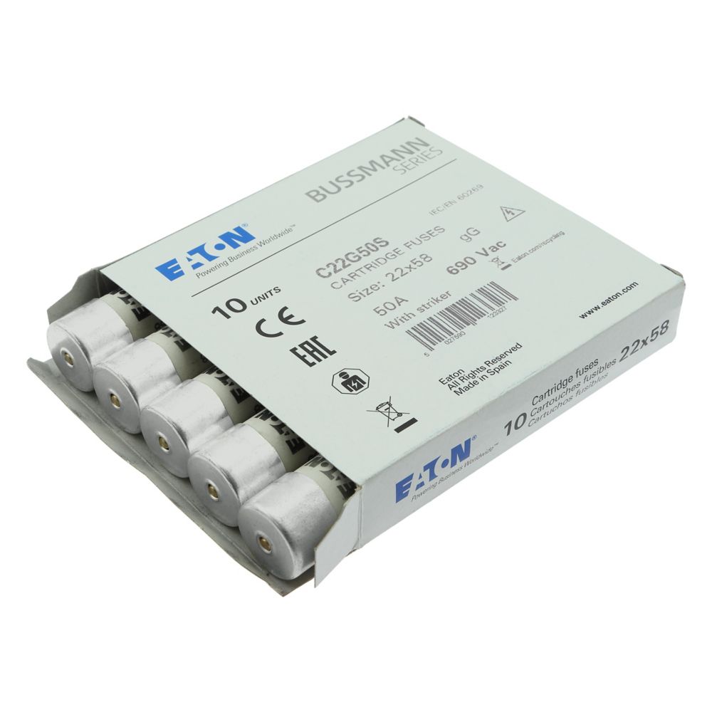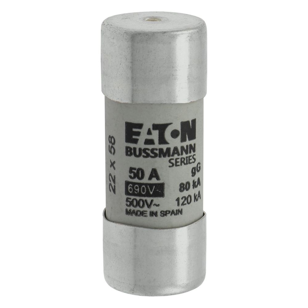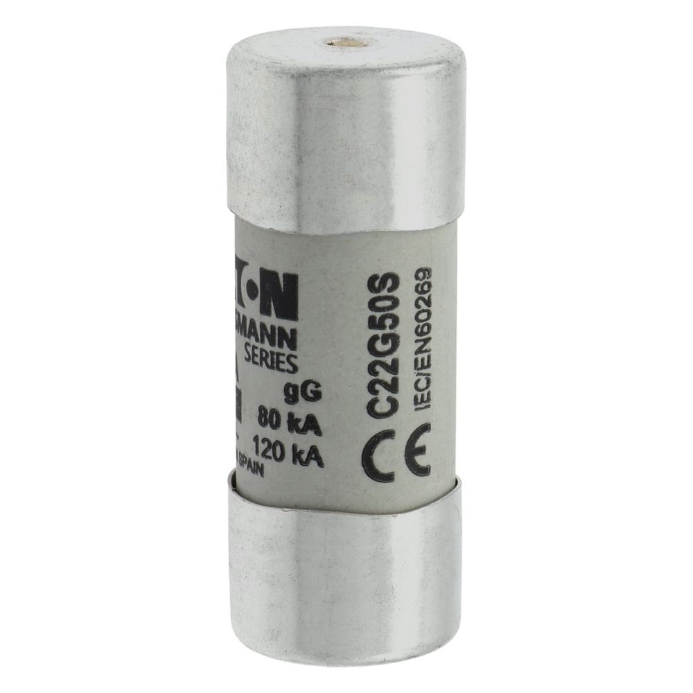 zekering, zekeringelement, laagspanning, 50 A, AC 690 V, 22 x 58 mm, gL/gG, IEC, met slagpin, cilindrisch, IEC 60269-2, afschakelvermogen 80 kA