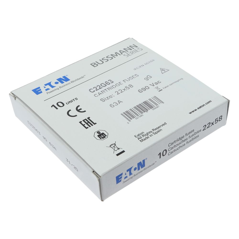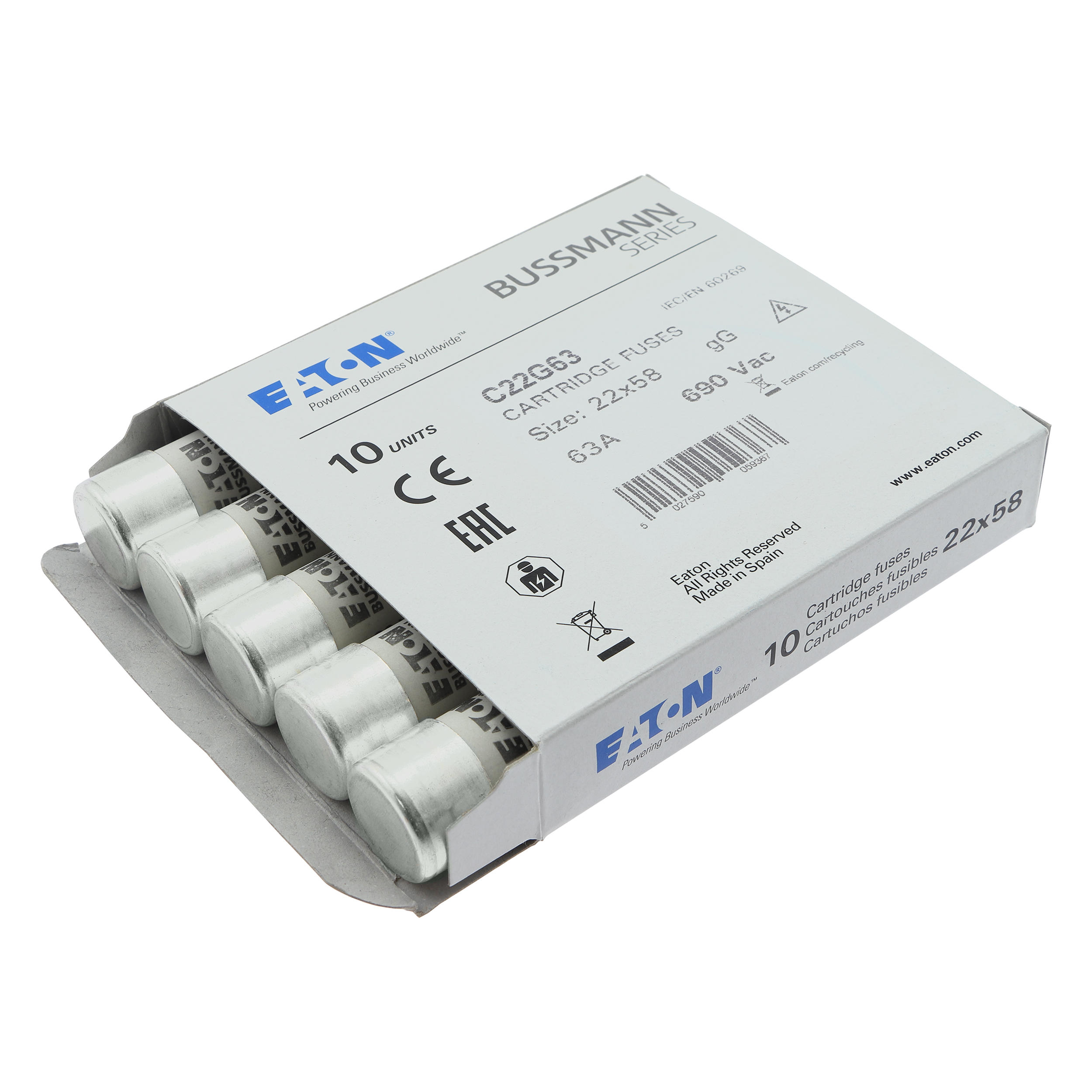 zekering, zekeringelement, laagspanning, 63 A, AC 690 V, 22 x 58 mm, gL/gG, IEC, cilindrisch, voor industriële toepassingen, voor algemeen gebruik, IEC 60269-2