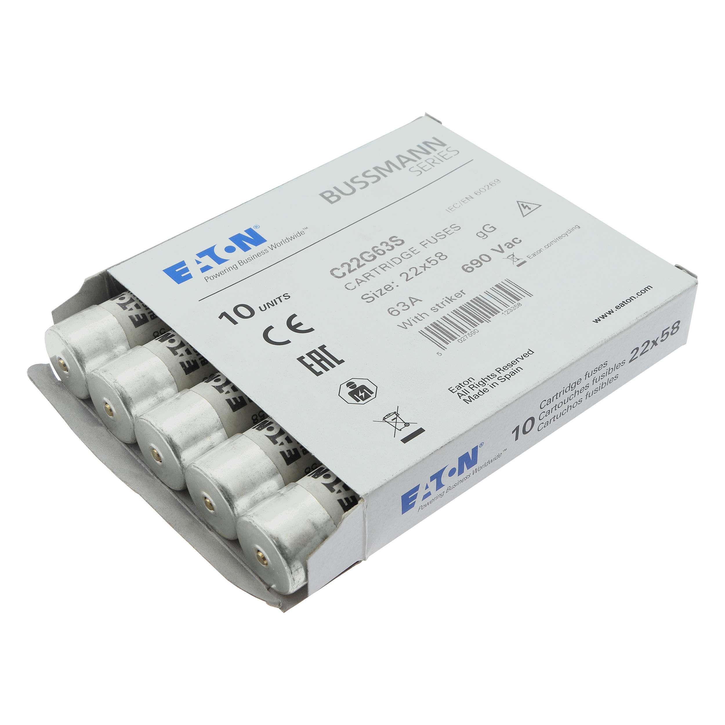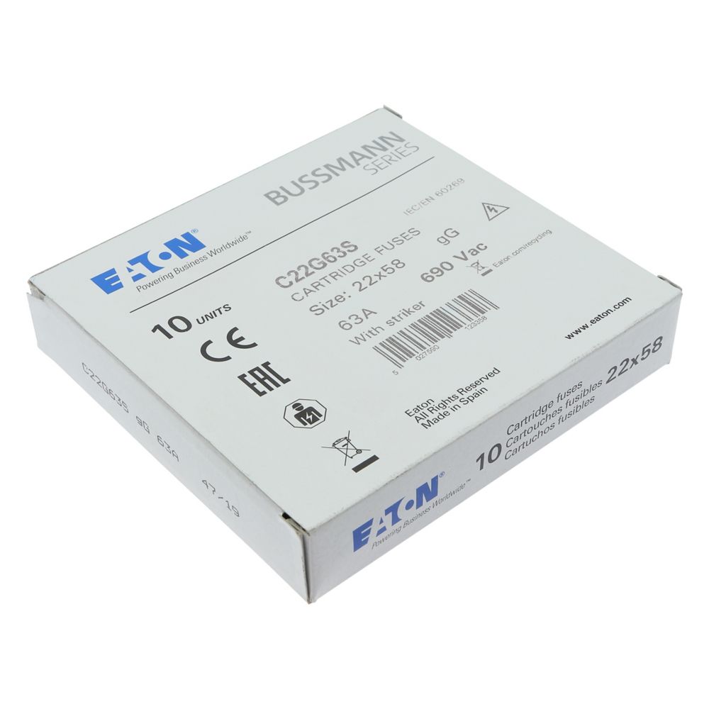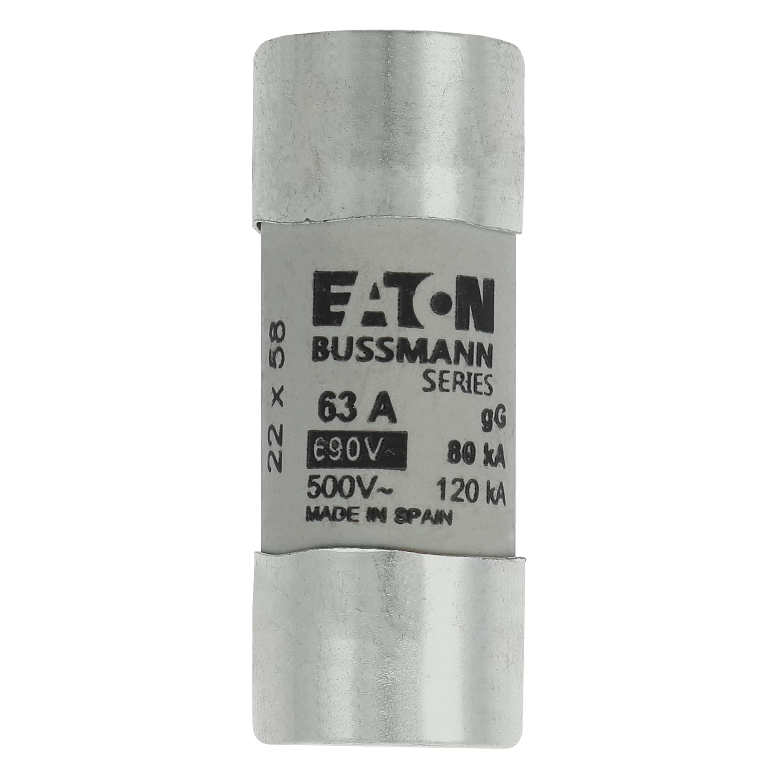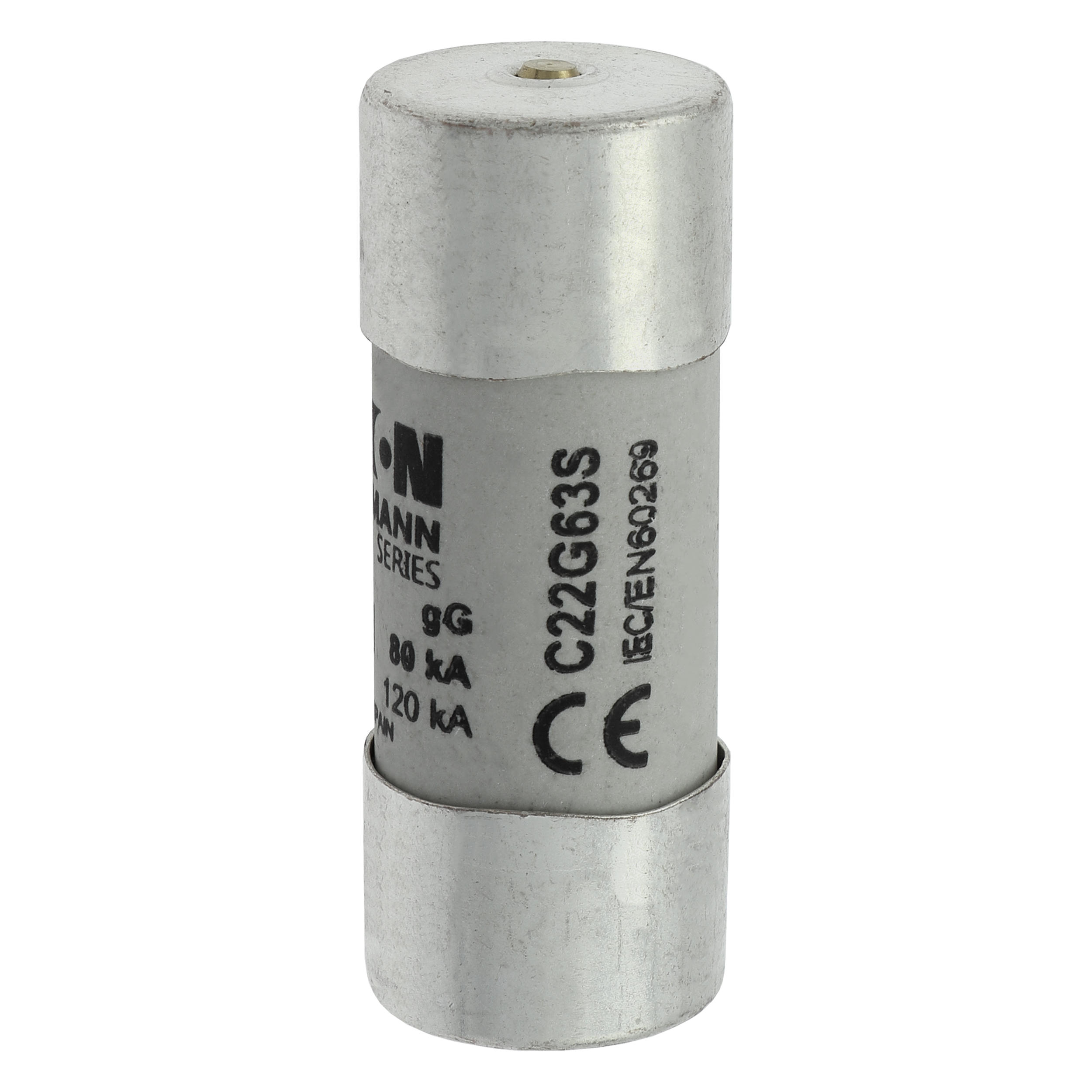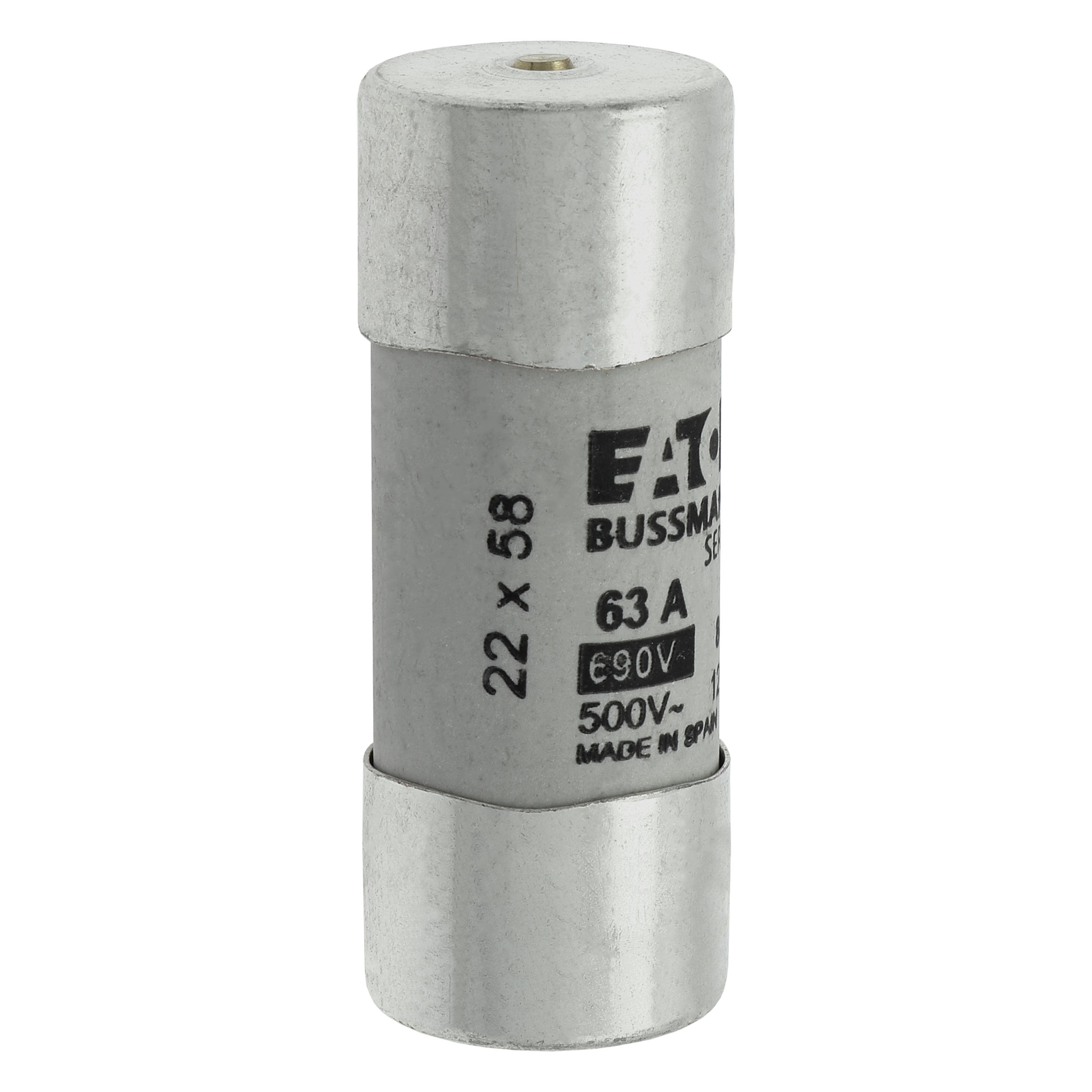 zekering, zekeringelement, laagspanning, 63 A, AC 690 V, 22 x 58 mm, gL/gG, IEC, met slagpin, cilindrisch, IEC 60269-2, afschakelvermogen 80 kA