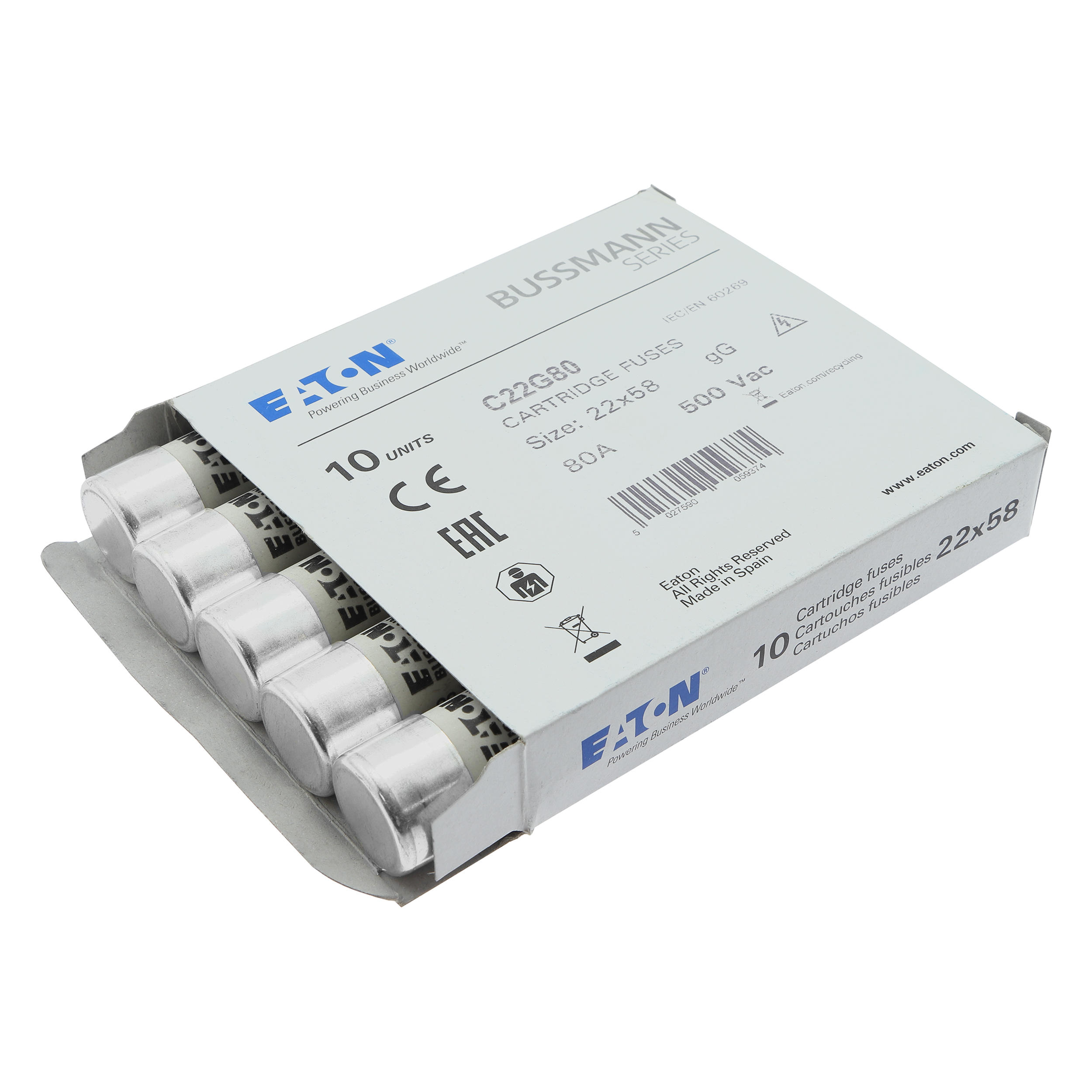zekering, zekeringelement, laagspanning, 80 A, AC 500 V, 22 x 58 mm, gL/gG, IEC, cilindrisch, voor industriële toepassingen, voor algemeen gebruik, IEC 60269-2