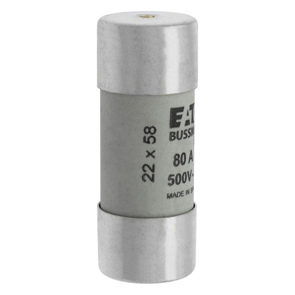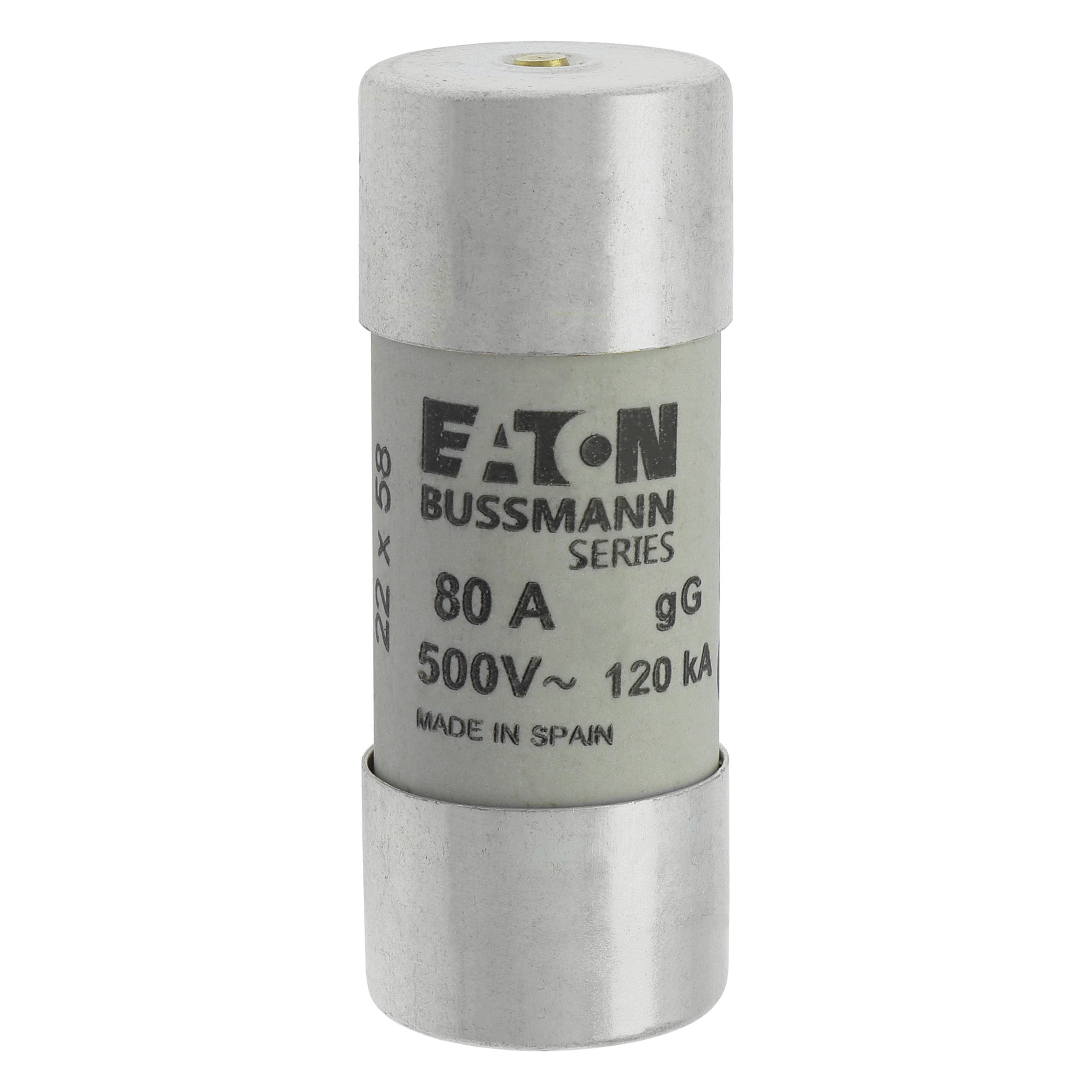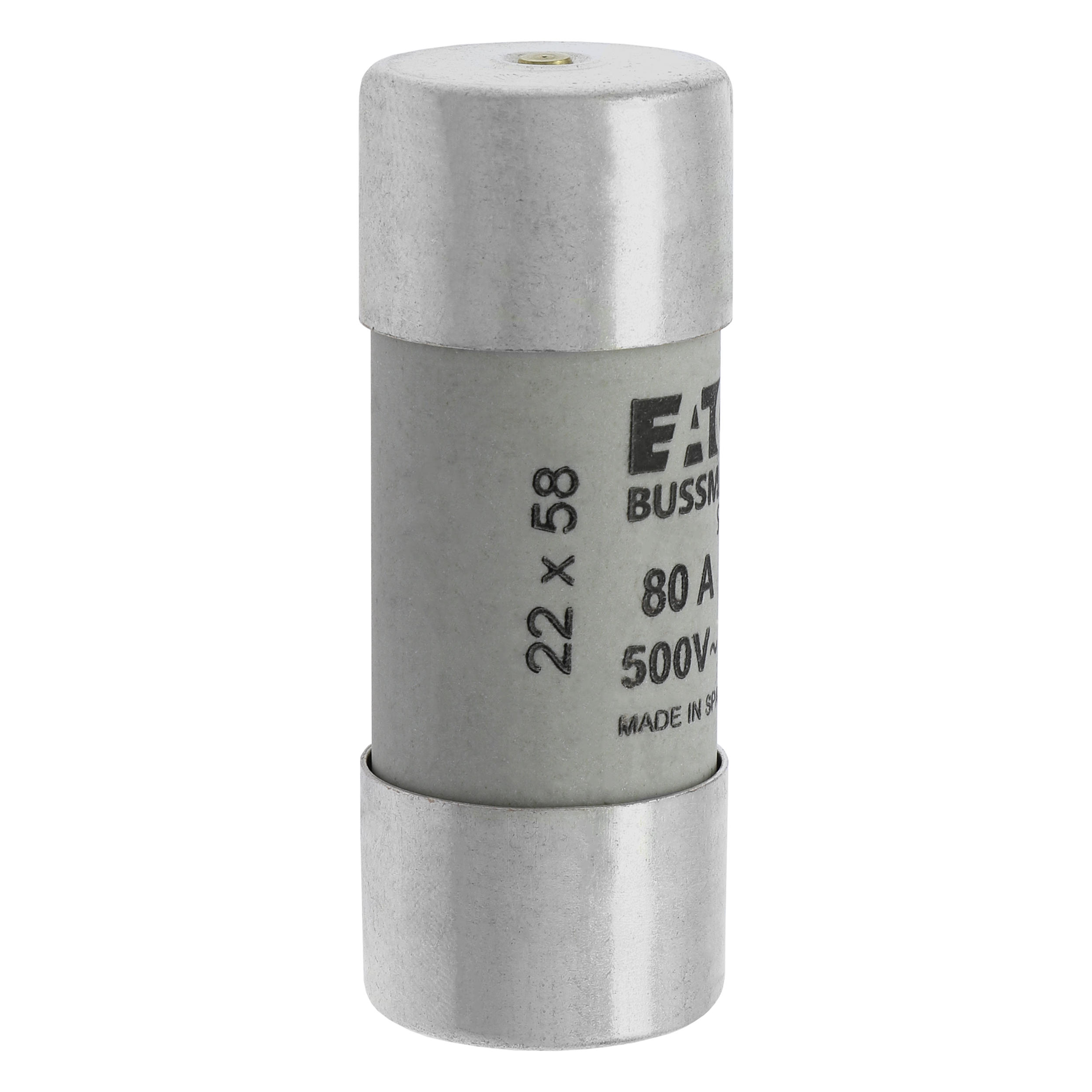 zekering, zekeringelement, laagspanning, 80 A, AC 500 V, 22 x 58 mm, gL/gG, IEC, met slagpin, cilindrisch, IEC 60269-2, afschakelvermogen 120 kA