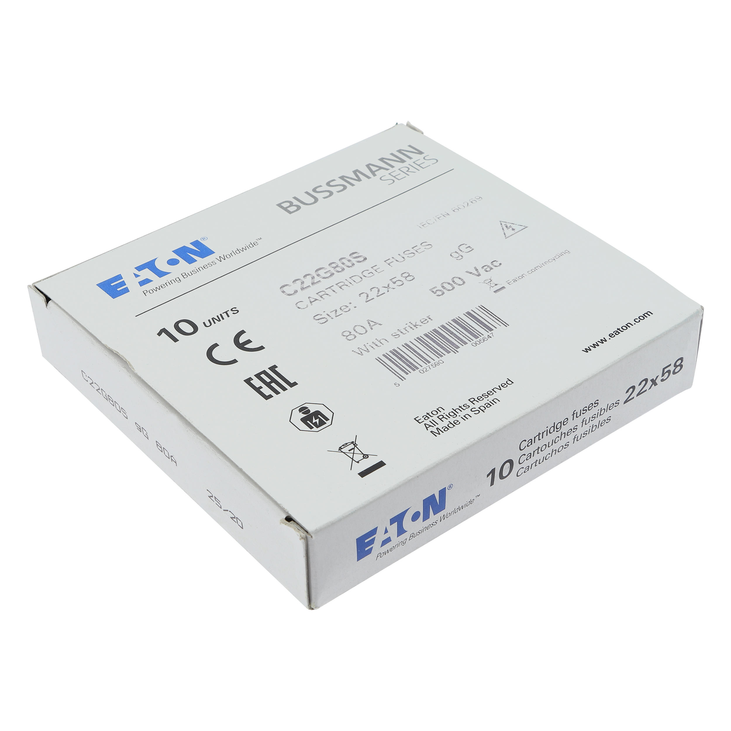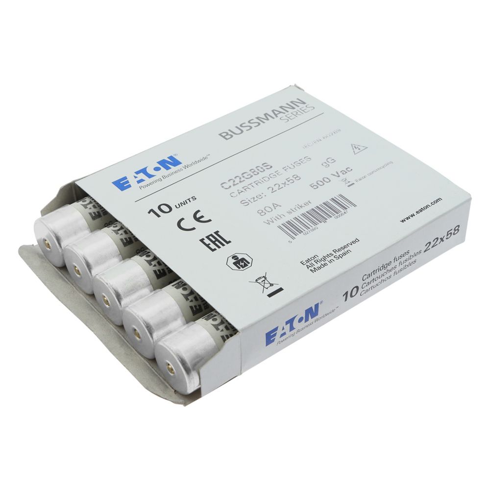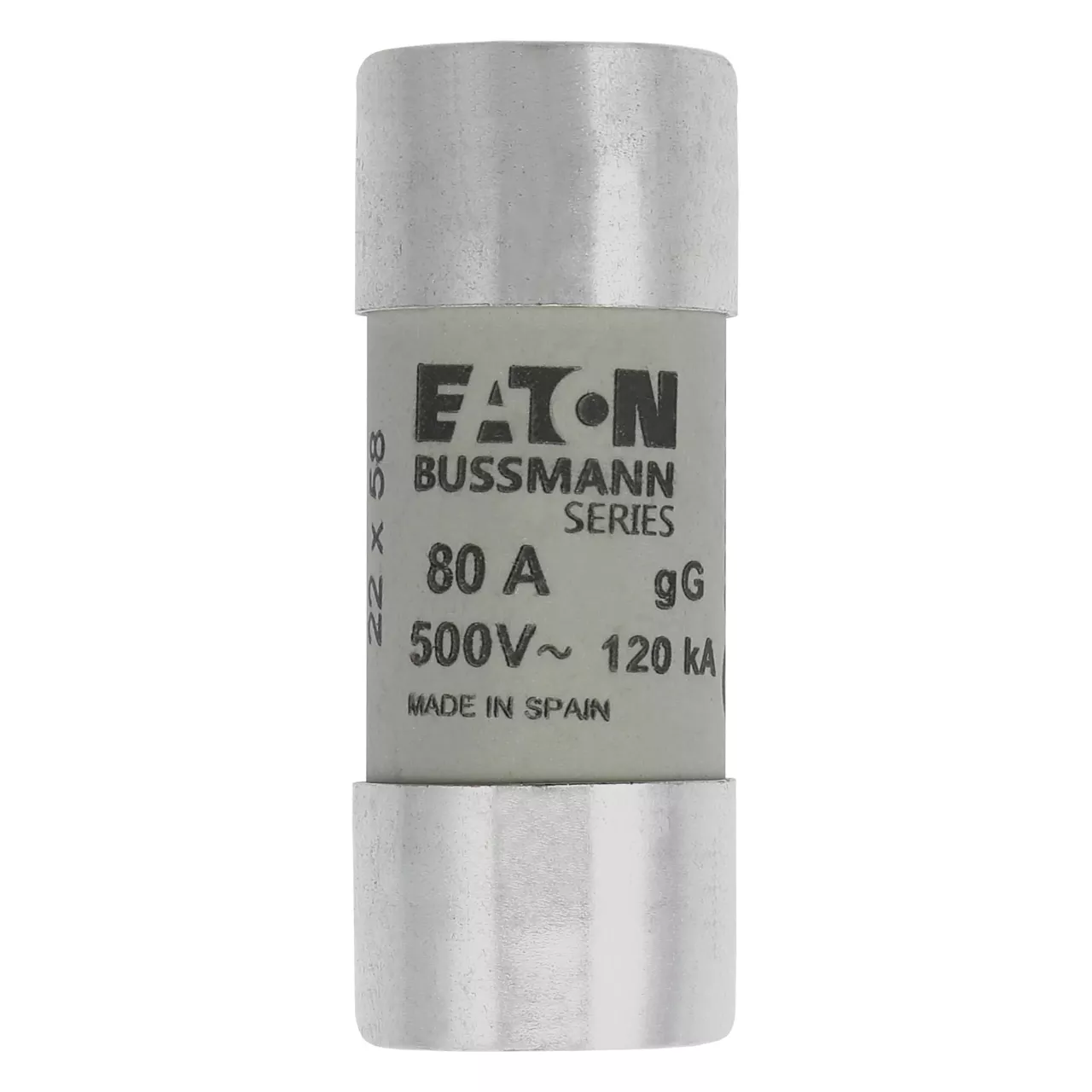 zekering, zekeringelement, laagspanning, 80 A, AC 500 V, 22 x 58 mm, gL/gG, IEC, met slagpin, cilindrisch, IEC 60269-2, afschakelvermogen 120 kA