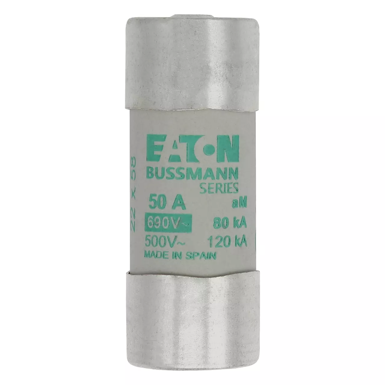 Bezpiecznik, wkładka bezpiecznikowa, niskie napięcie, 50 A, AC 690 V, 22 x 58 mm, aM, IEC, z wybijakiem, cylindryczny, IEC 60269-2, Zdolność wyłączania 80 kA