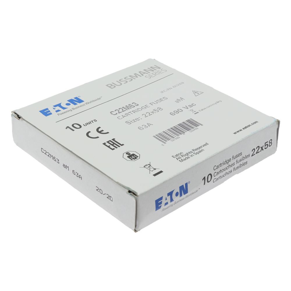 Bezpiecznik, Wkładka bezpiecznikowa, Niskie napięcie, 63 A, AC 690 V, 22 x 58 mm, aM, IEC, cylindryczny, Ochrona silnika, do zastosowań przemysłowych, IEC 60269-2