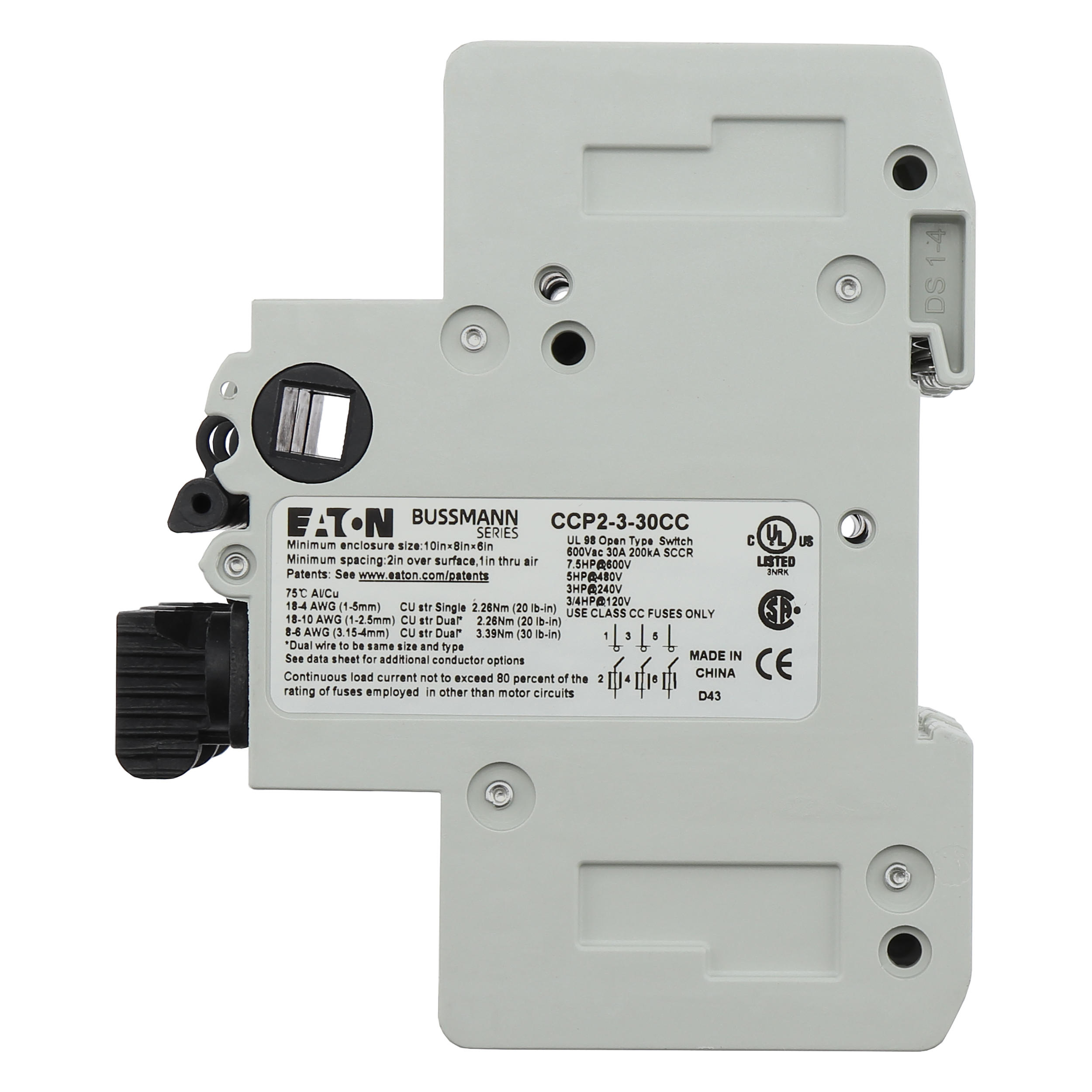 CCP2-3-30CC Rozłącznik bezpiecznikowy CCP, 600 Vac, 125 Vdc, 30A, UL98 , 3P, 60 Hz, Klasa CC, 200 kA