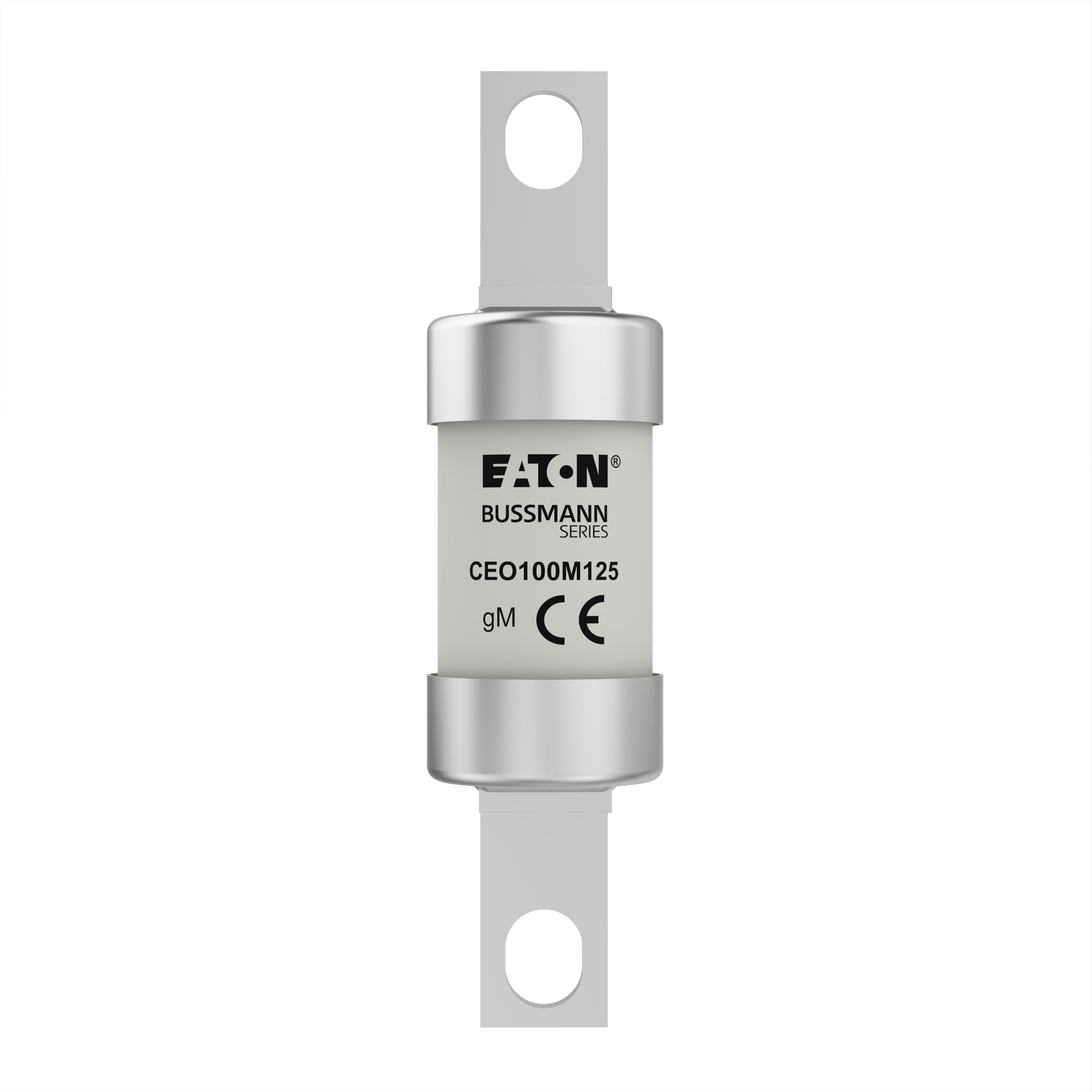 Fuse, Fuse-link, low voltage, 100 A, AC 415 V, BS88/A4, 27 x 110 mm, gM, BS, offset bolted tags, general industrial applications, BS88-2, IEC 60269-2, Breaking Capacity 80 kA, Optional accessories fuse-holder RS100H