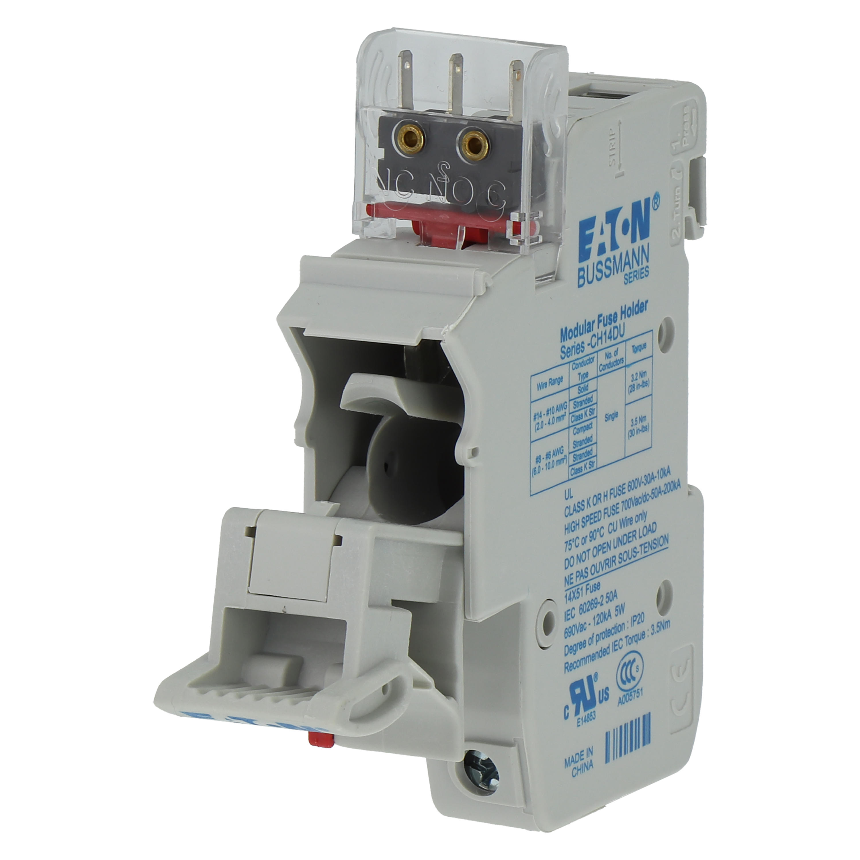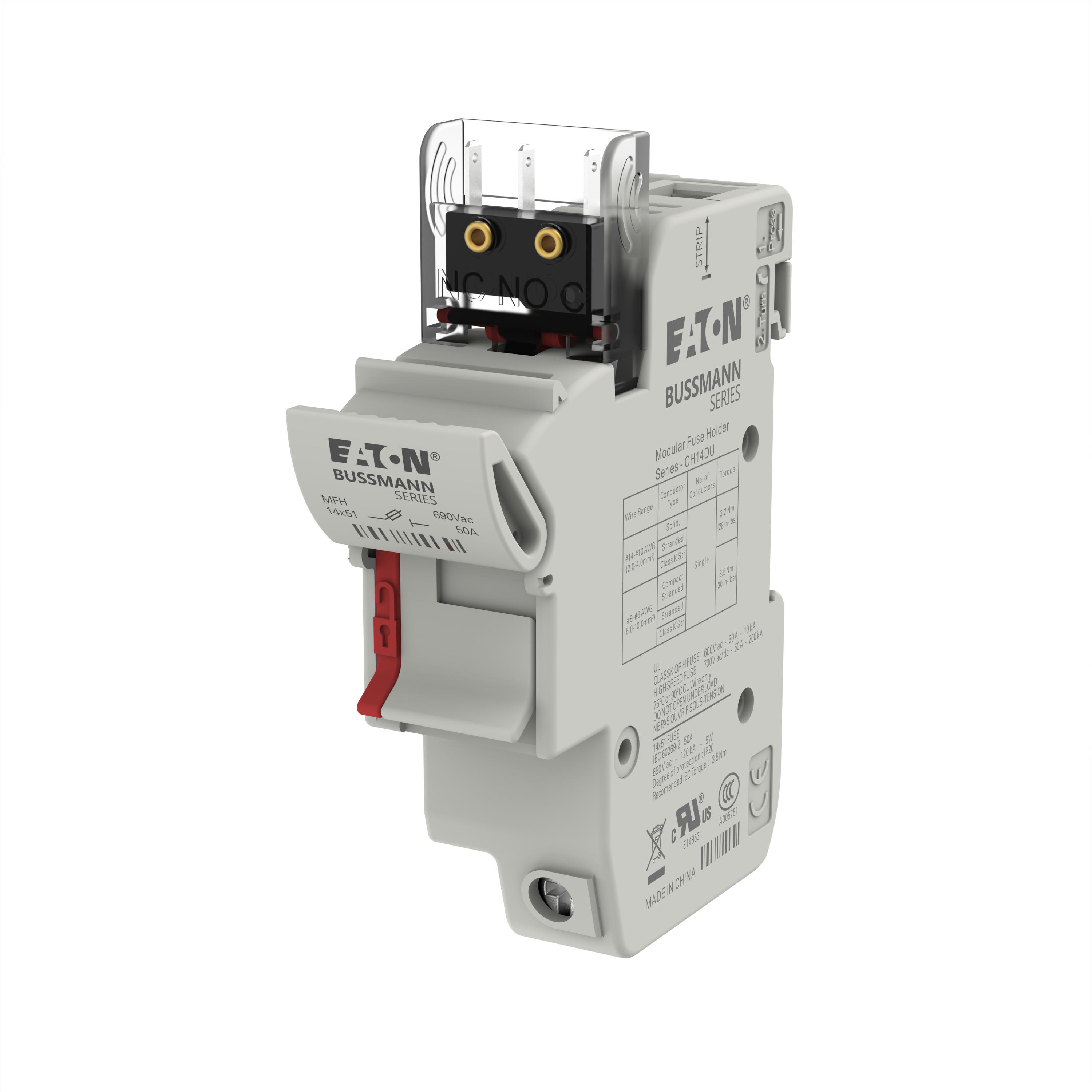Sicherungszubehör, Sicherungshalter, Niederspannung, 50 A, AC 690 V, 14 x 51 mm, 1P, IEC, mit Mikroschalter, ersetzt durch CH141BMS-F, C14G(A)S Sicherungen, IEC 60269-1