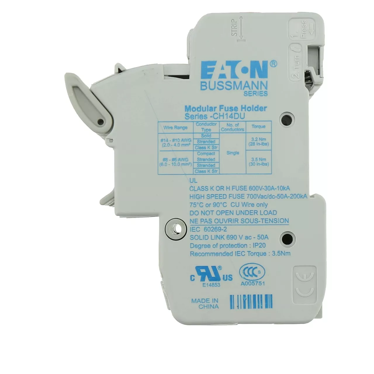 Sicherungszubehör, Sicherungshalter, Niederspannung, 50 A, AC 690 V, 14 x 51 mm, 1P + neutral, IEC, ersetzt durch CH141BN, Sicherungen C14G, Sicherungen C14M, IEC 60269-1