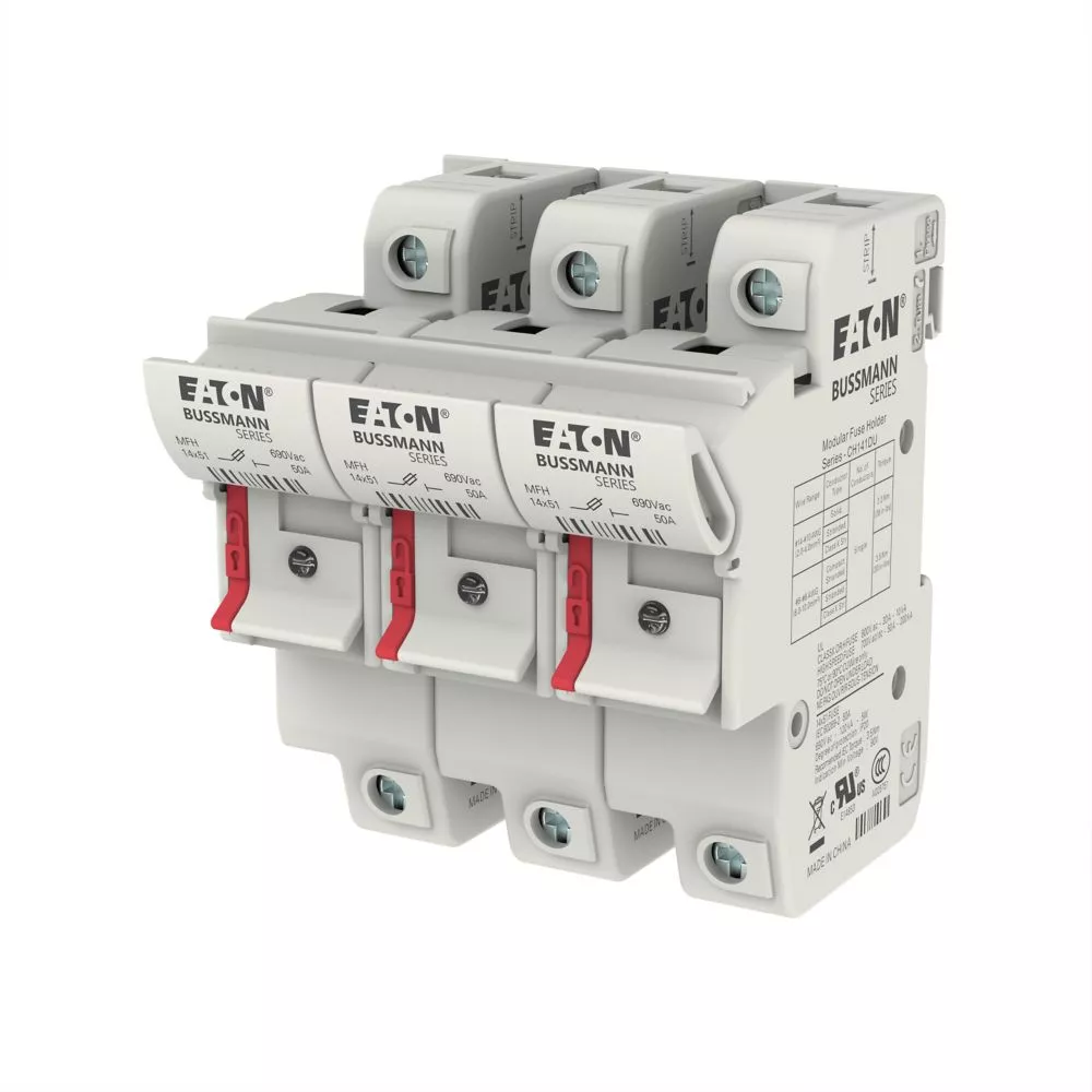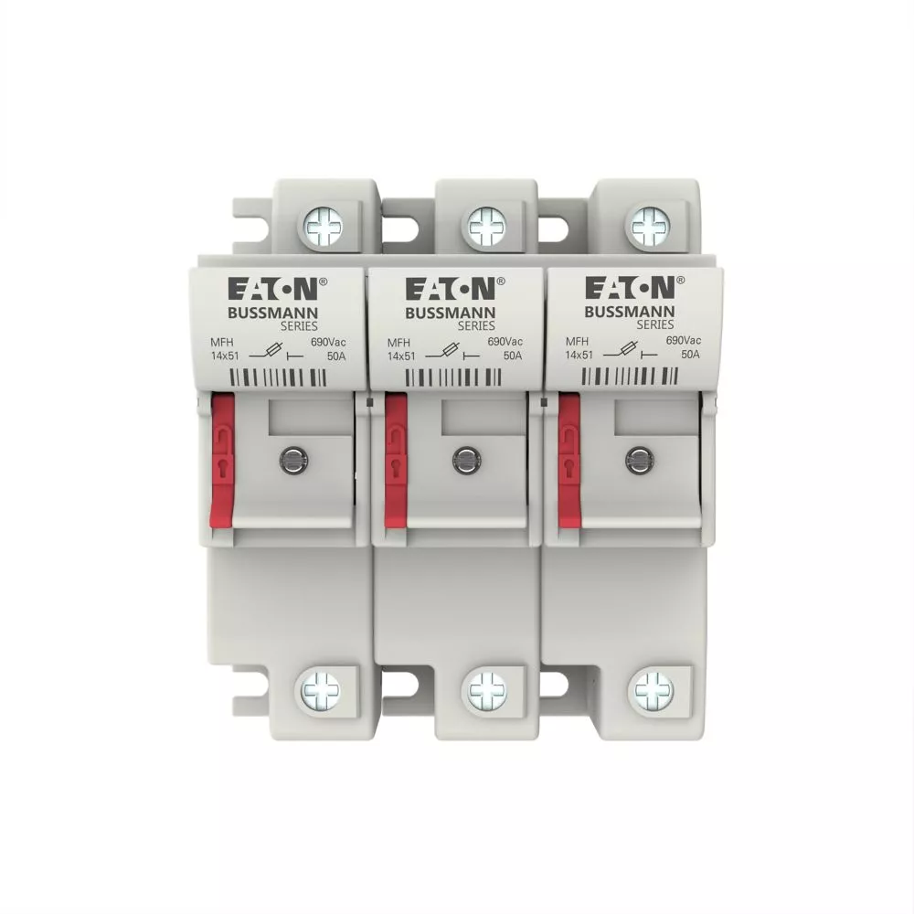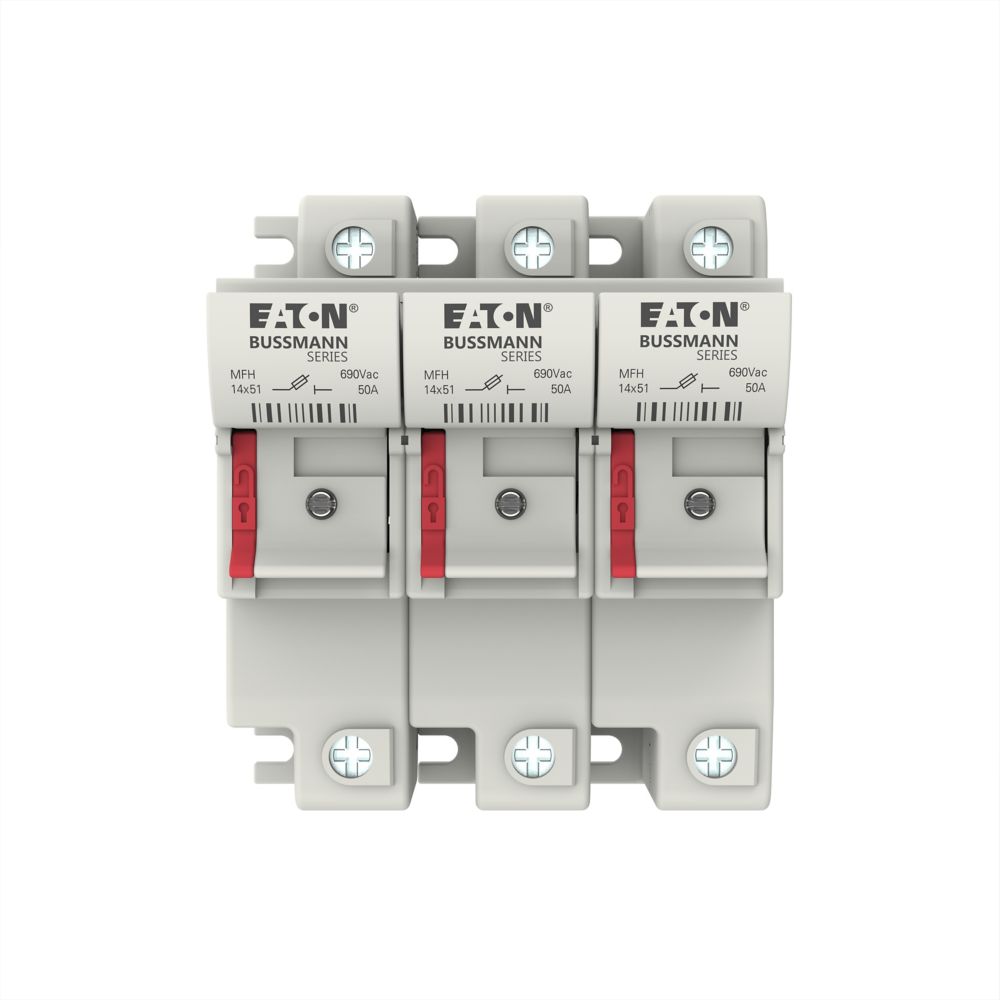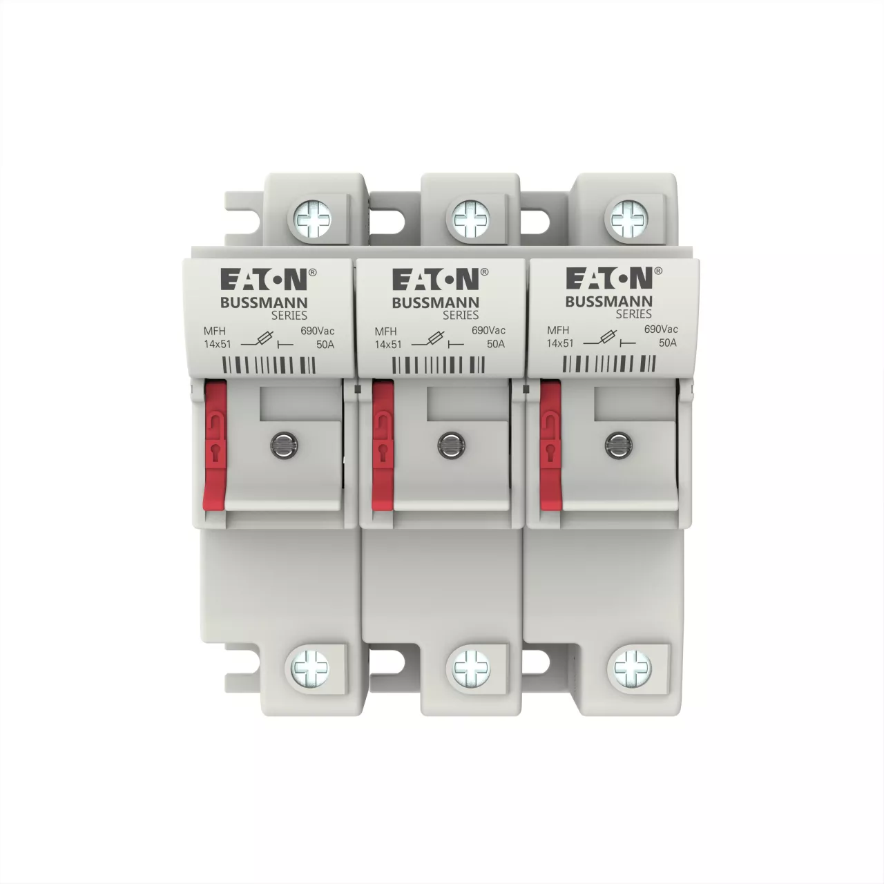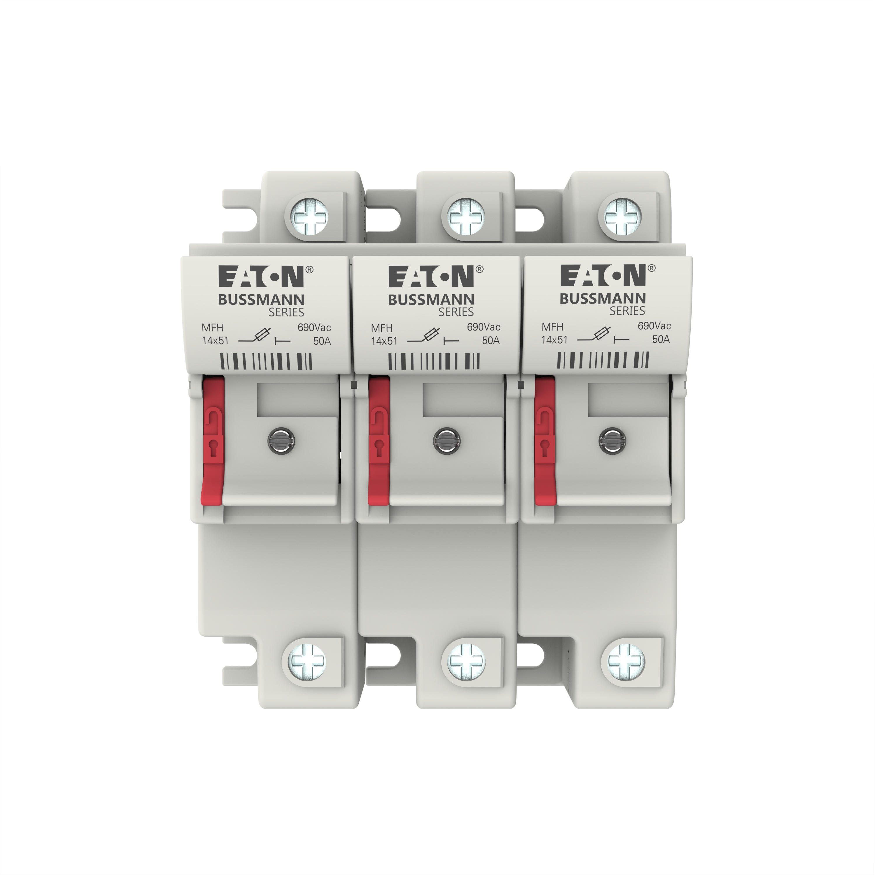 Akcesorium bezpiecznika, uchwyt bezpiecznikowy, niskonapięciowy, 50 A, 690 V AC, 14 x 51 mm, 3P, IEC, ze wskaźnikiem, zastąpiony przez CH143BI, bezpieczniki C14G, bezpieczniki C14M, IEC 60269-1