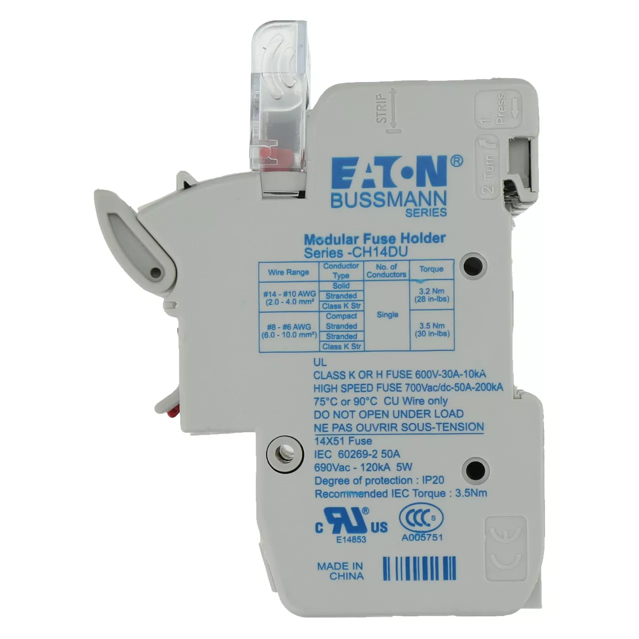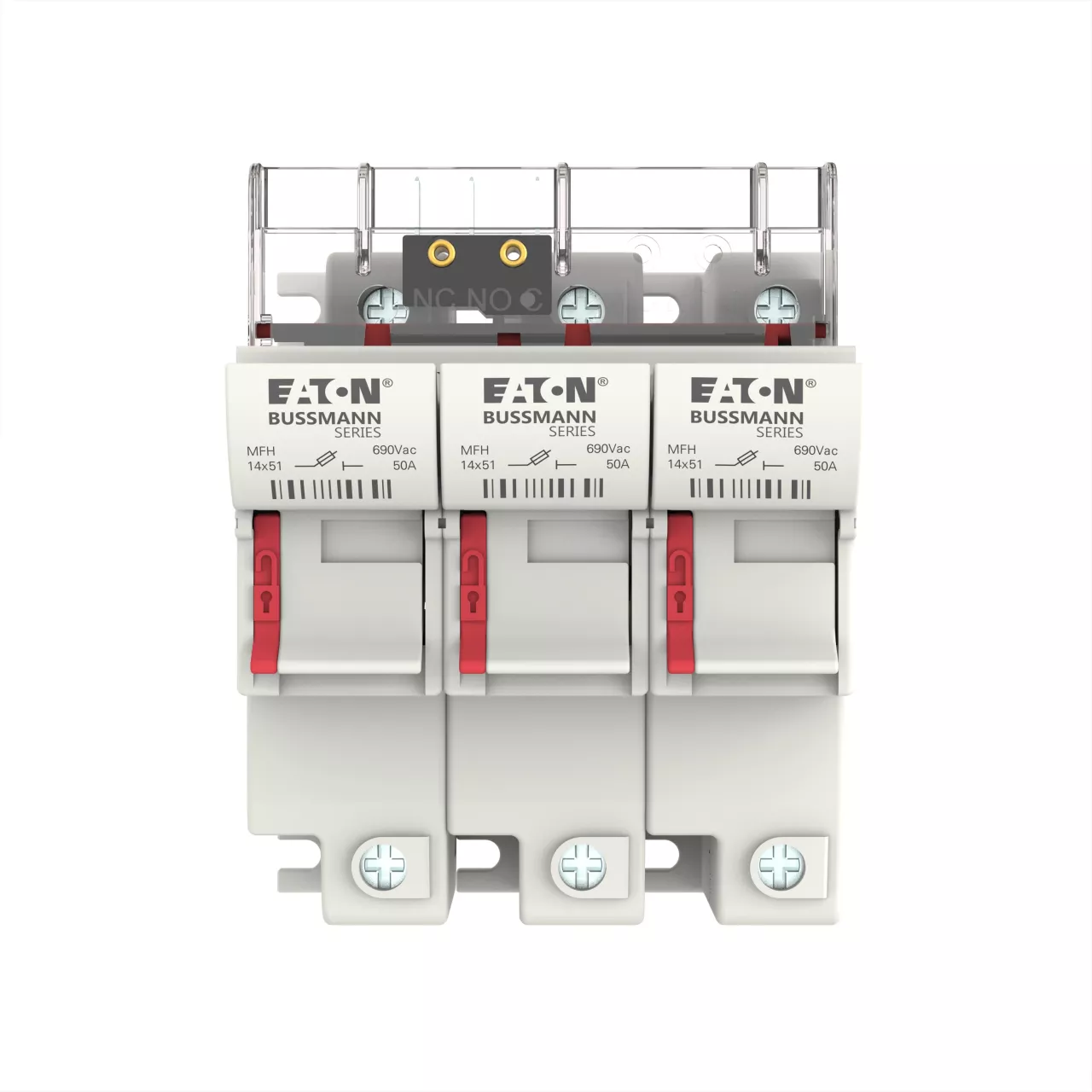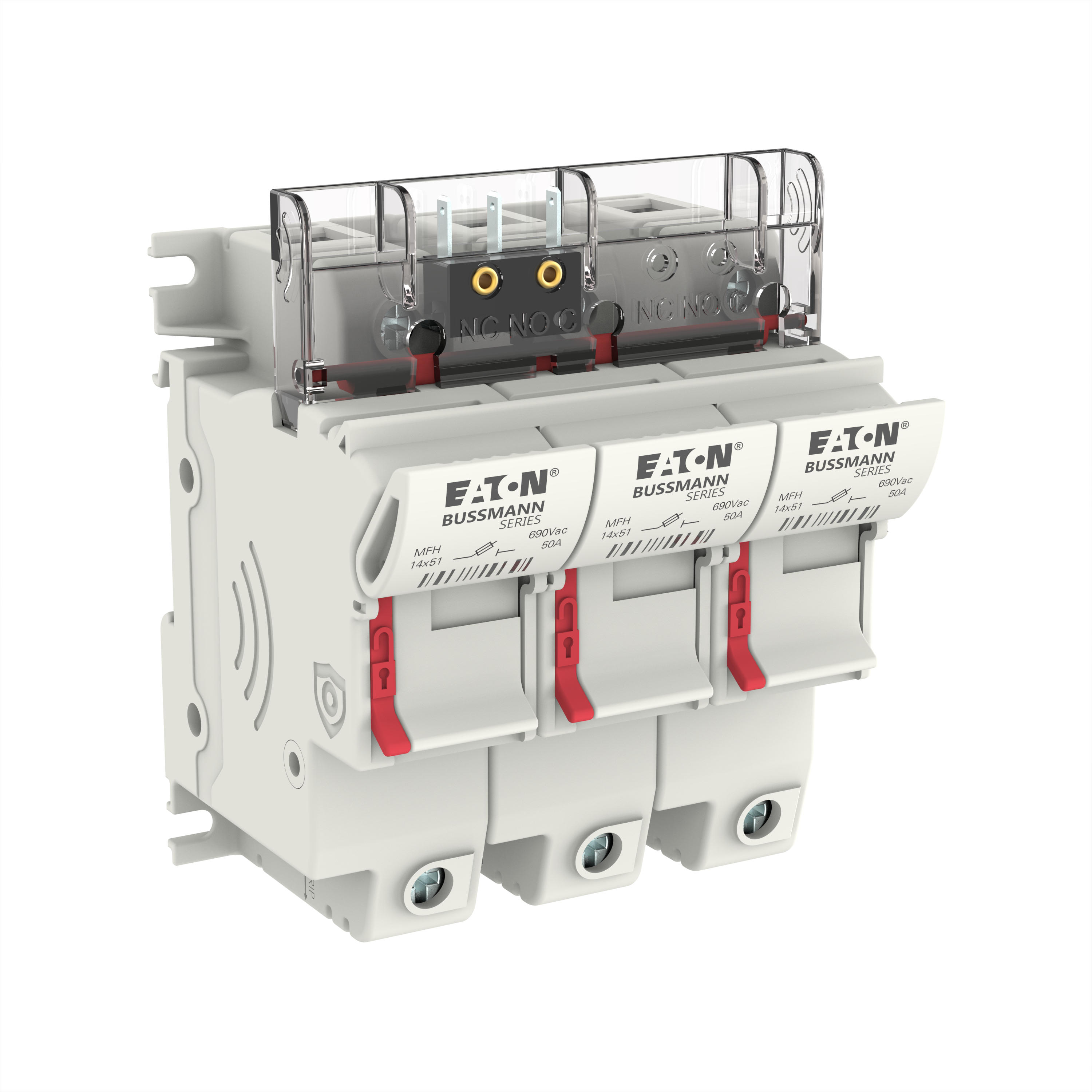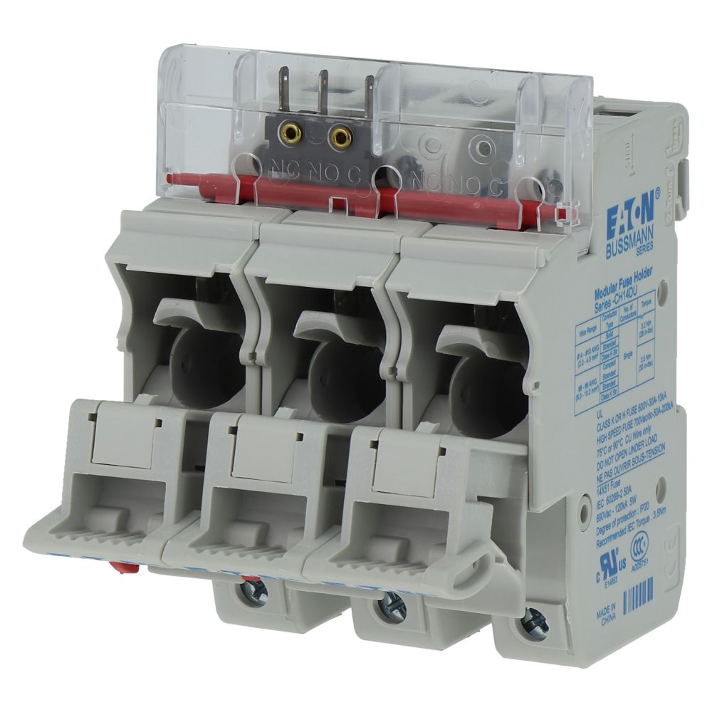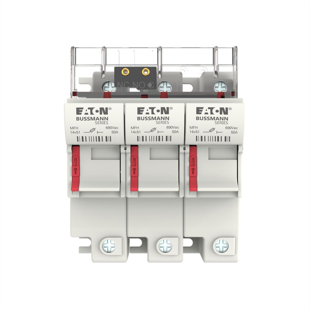 Akcesorium bezpiecznika, uchwyt bezpiecznikowy, niskonapięciowy, 50 A, 690 V AC, 14 x 51 mm, 3P, IEC, z mikroprzełącznikiem, zastąpiony przez CH143BMS-F, bezpieczniki C14G(A)S, IEC 60269-1