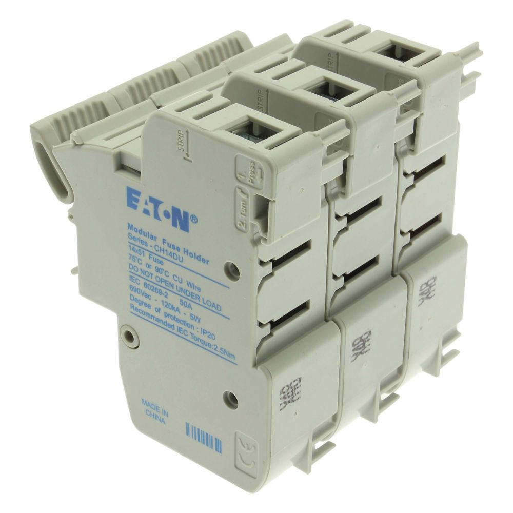 Sicherungszubehör, Sicherungshalter, Niederspannung, 50 A, AC 690 V, 14 x 51 mm, 3P, IEC, ersetzt durch CH143B, Sicherungen C14G, Sicherungen C14M, IEC 60269-1