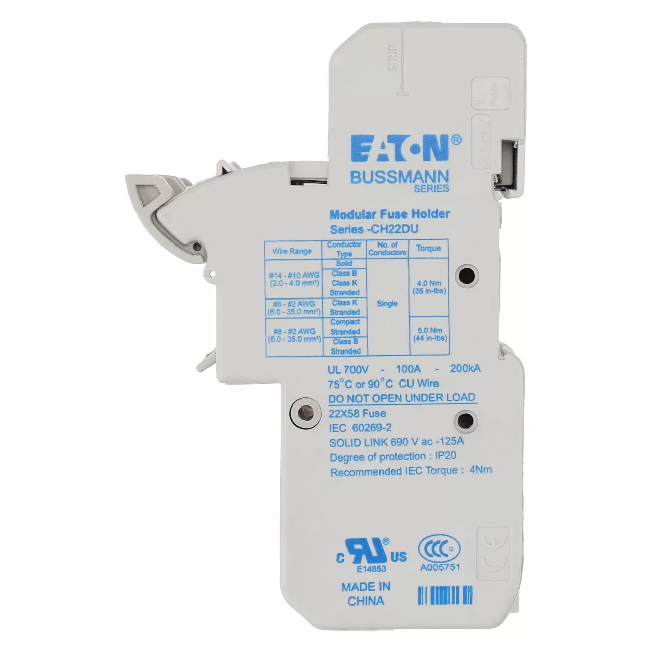 Sicherungszubehör, Sicherungshalter, Niederspannung, 125 A, AC 690 V, 22 x 58 mm, 1P+N, IEC, UL, C22M und C22G Sicherungen, IEC 60269-1, IEC 60269-2, IP20