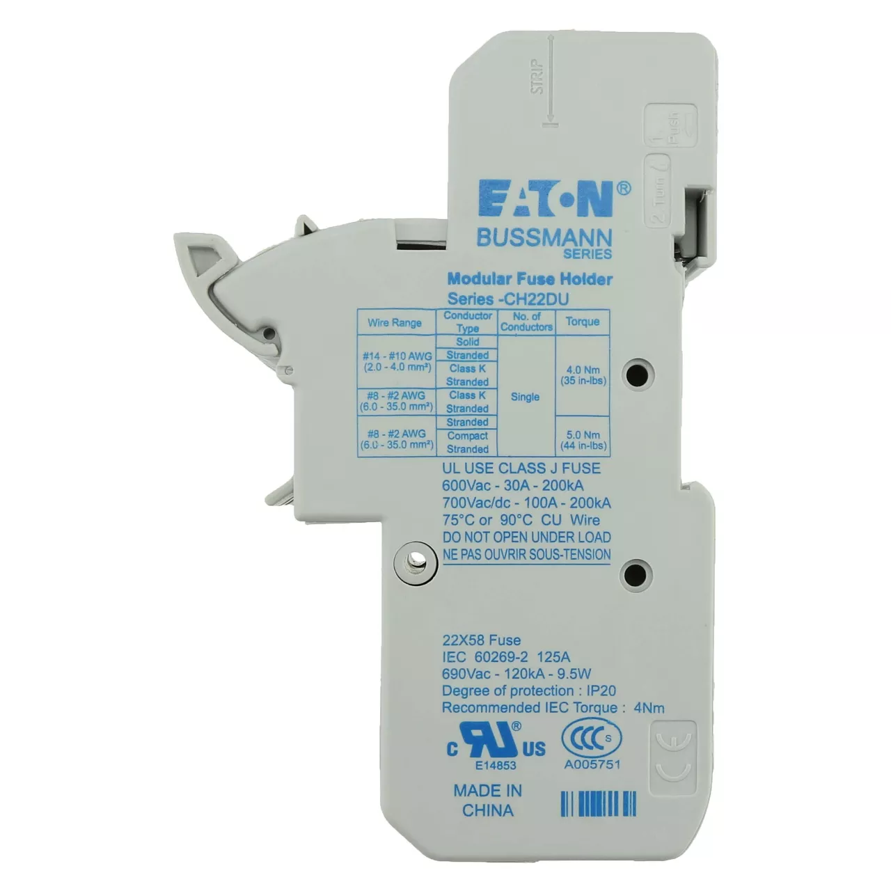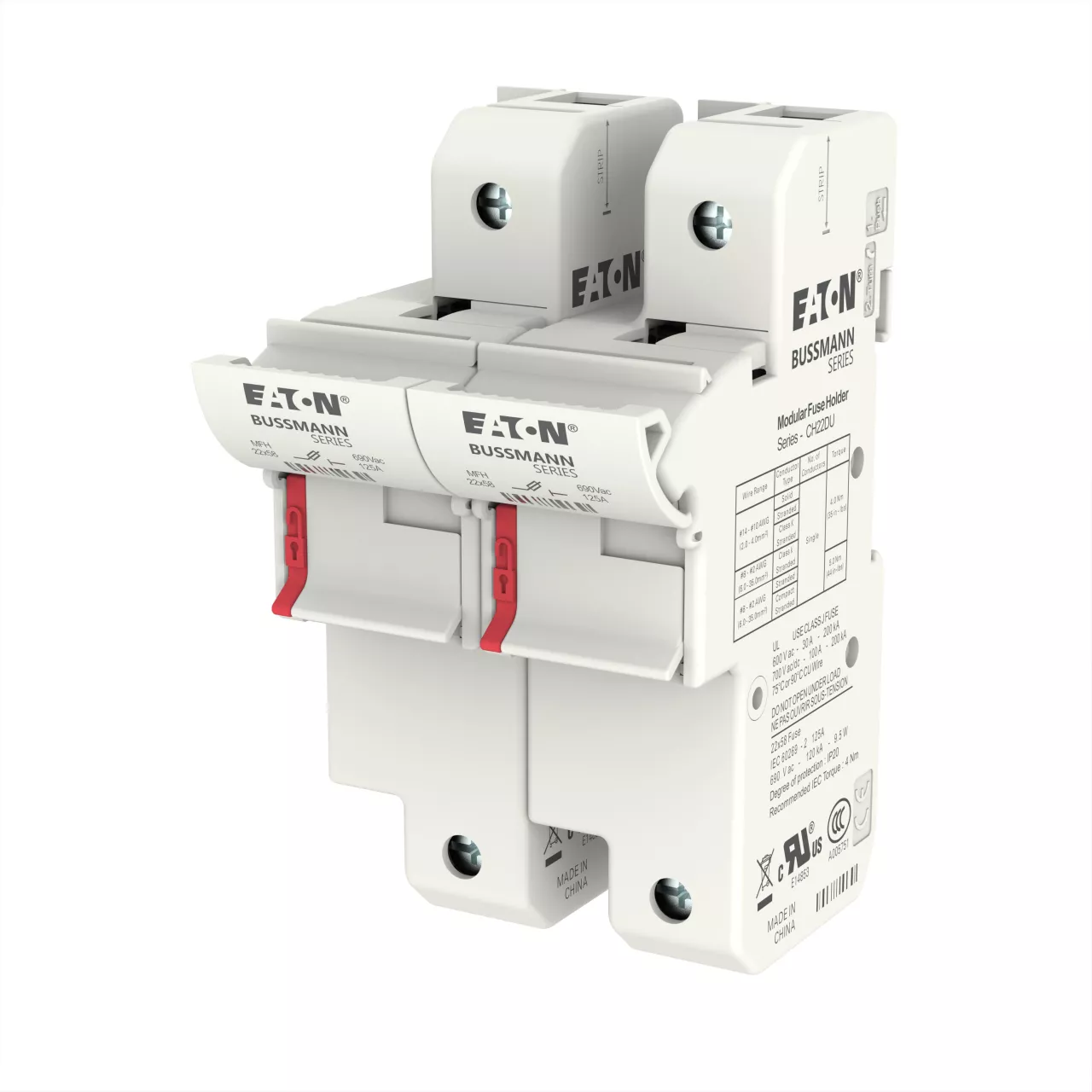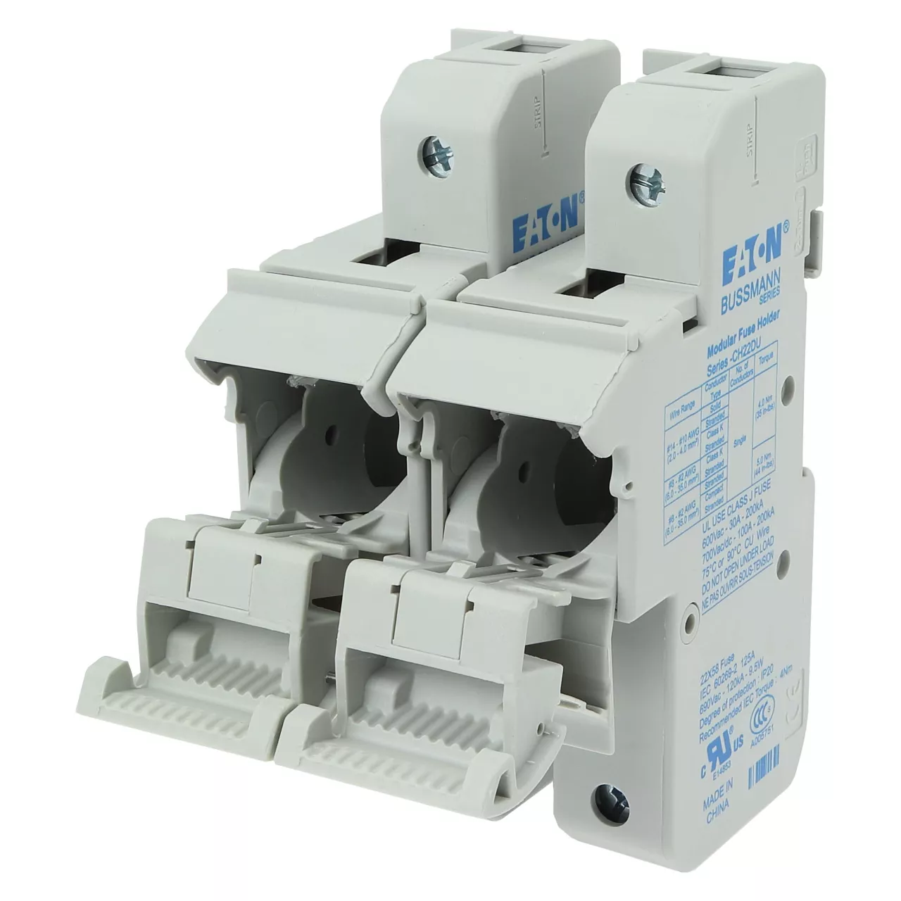 Akcesorium bezpiecznika, uchwyt bezpiecznikowy, niskonapięciowy, 125 A, 690 V AC, 22 x 58 mm, 2P, IEC, UL, bezpieczniki C22M i C22G, IEC 60269-1, IEC 60269-2, IP20