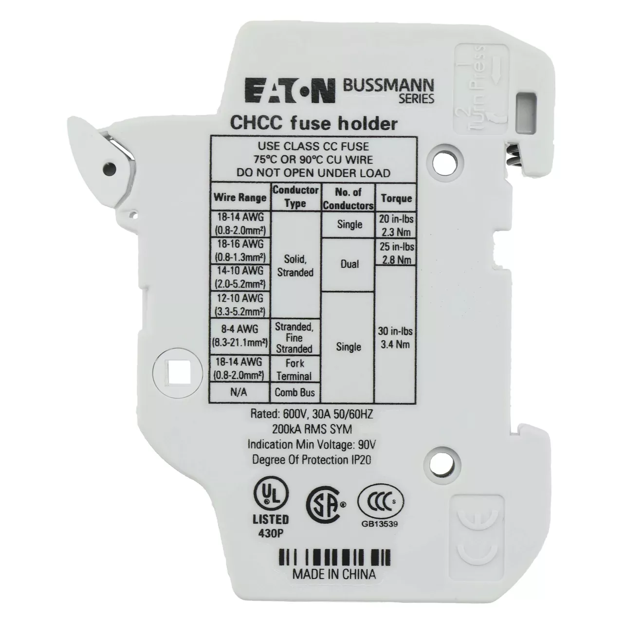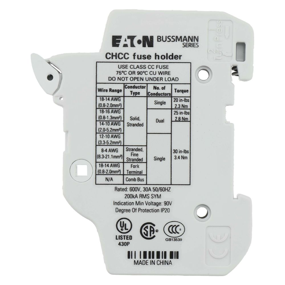 CHCC1DU Podstawa wkł. cyl. 10x38, 1p, 32A, 690 Vac std. UL
