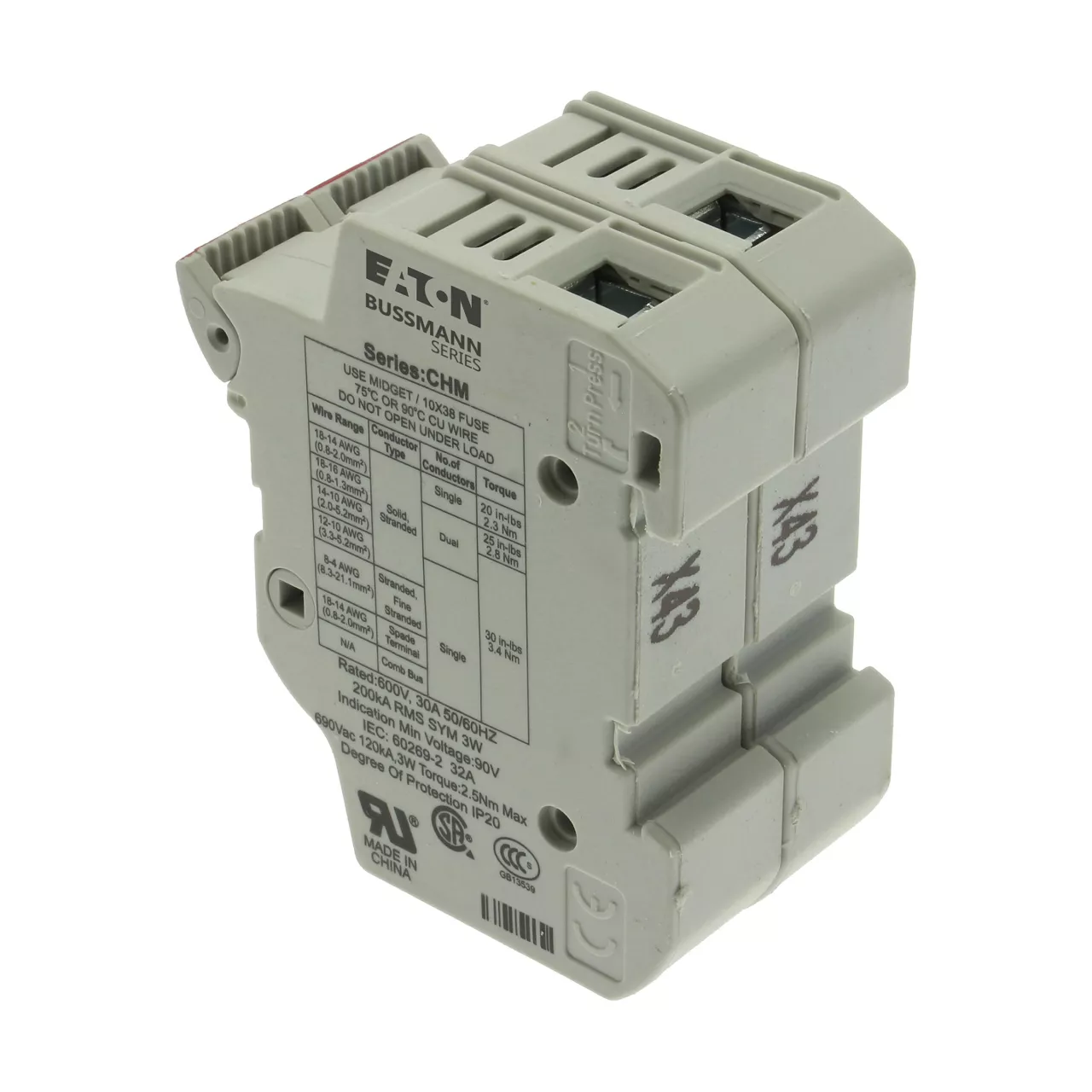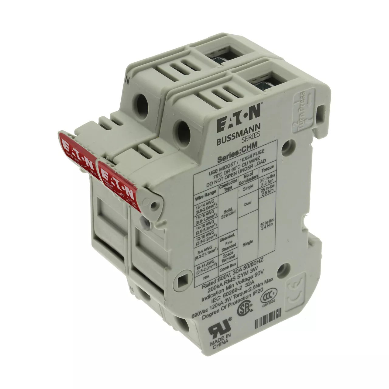 CHM1DNIU Podstawa wkł. cyl. 10x38, 1p+1N, 32A, 690 Vac, wskaźnik