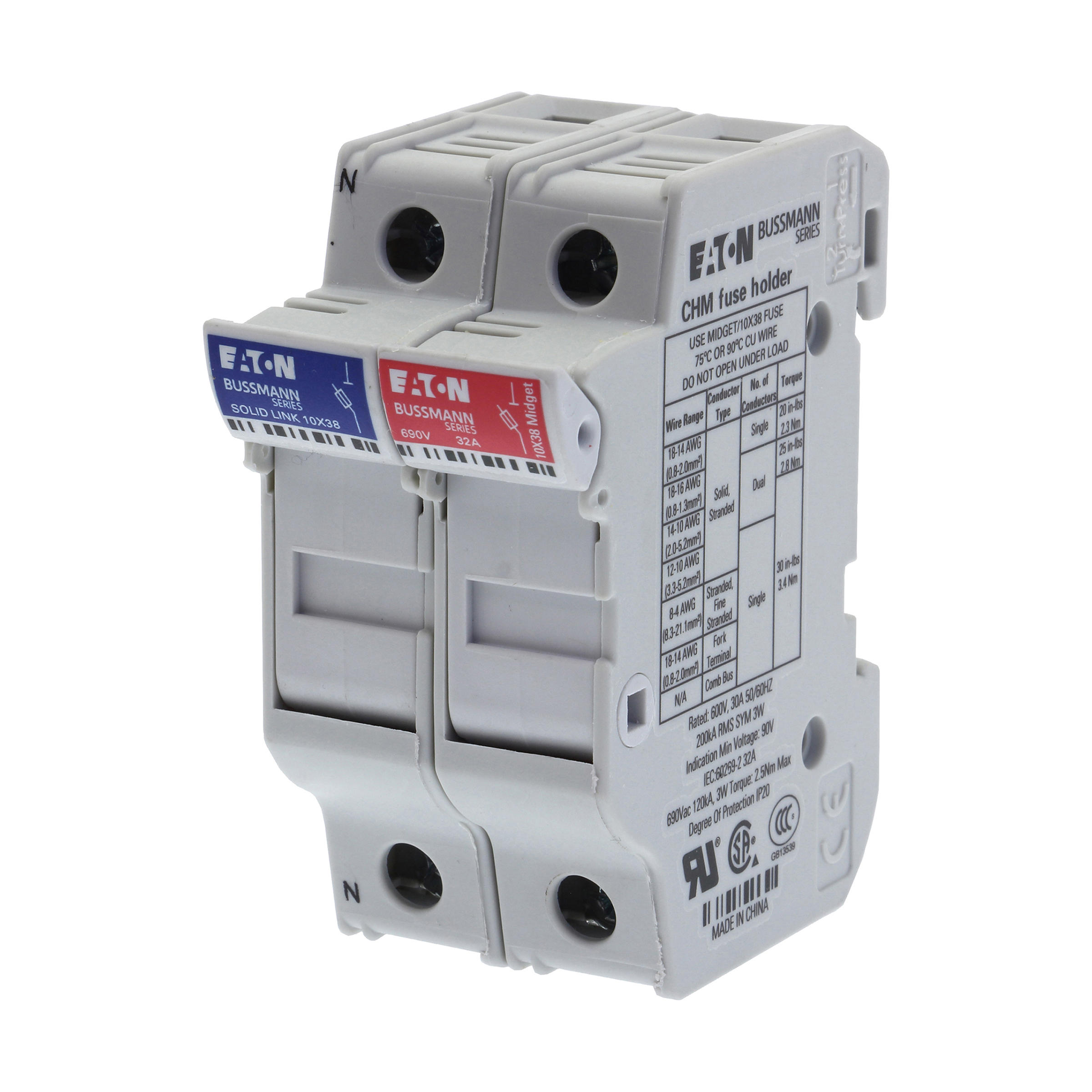 CHM1DNU Podstawa wkł. cyl. 10x38, 1p+1N, 32A, 690 Vac