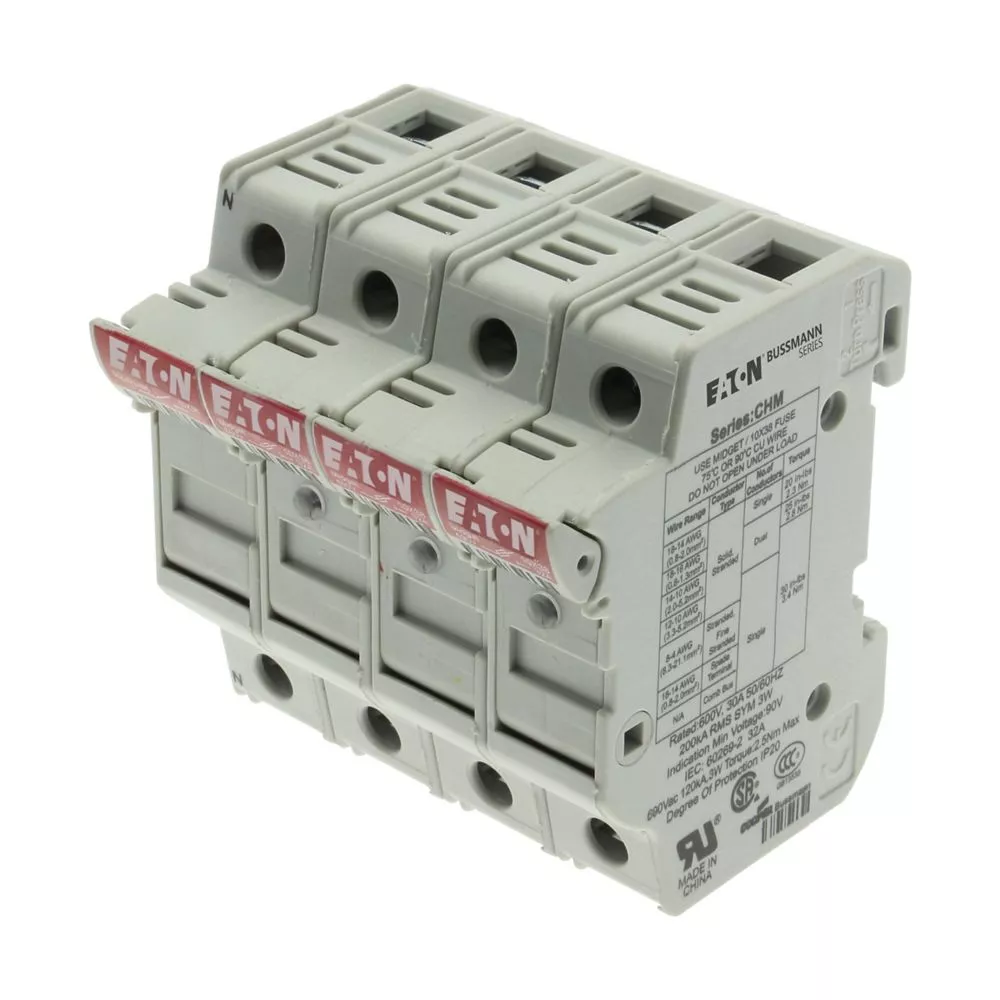 CHM3DNIU Podstawa wkł. cyl. 10x38, 3p+1N, 32A, 690 Vac, wskaźnik