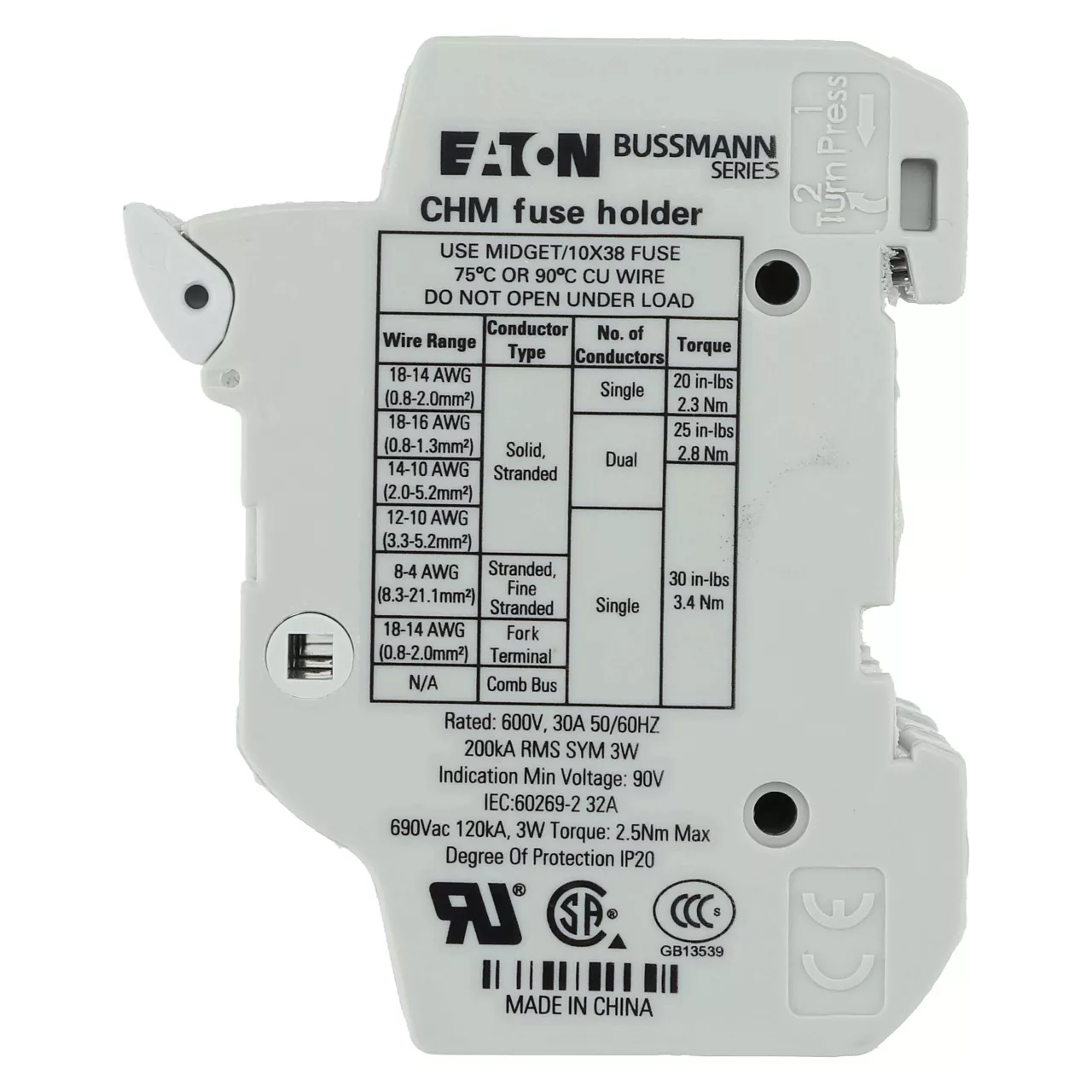 CHM4DU Podstawa wkł. cyl. 10x38, 4p, 32A, 690 Vac