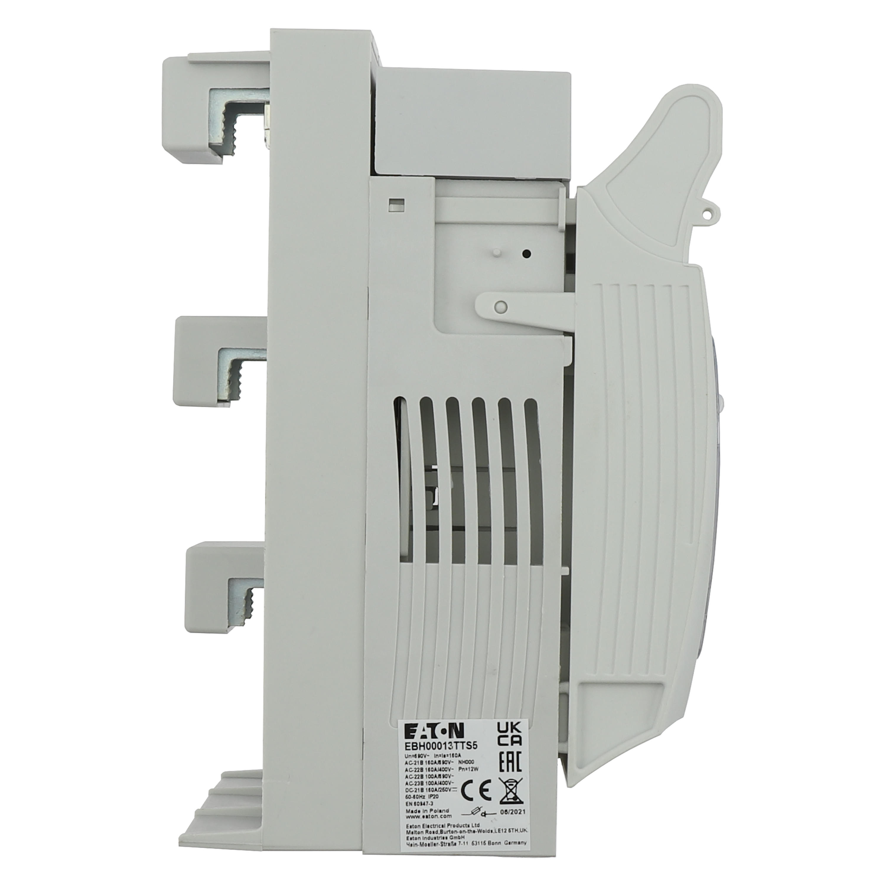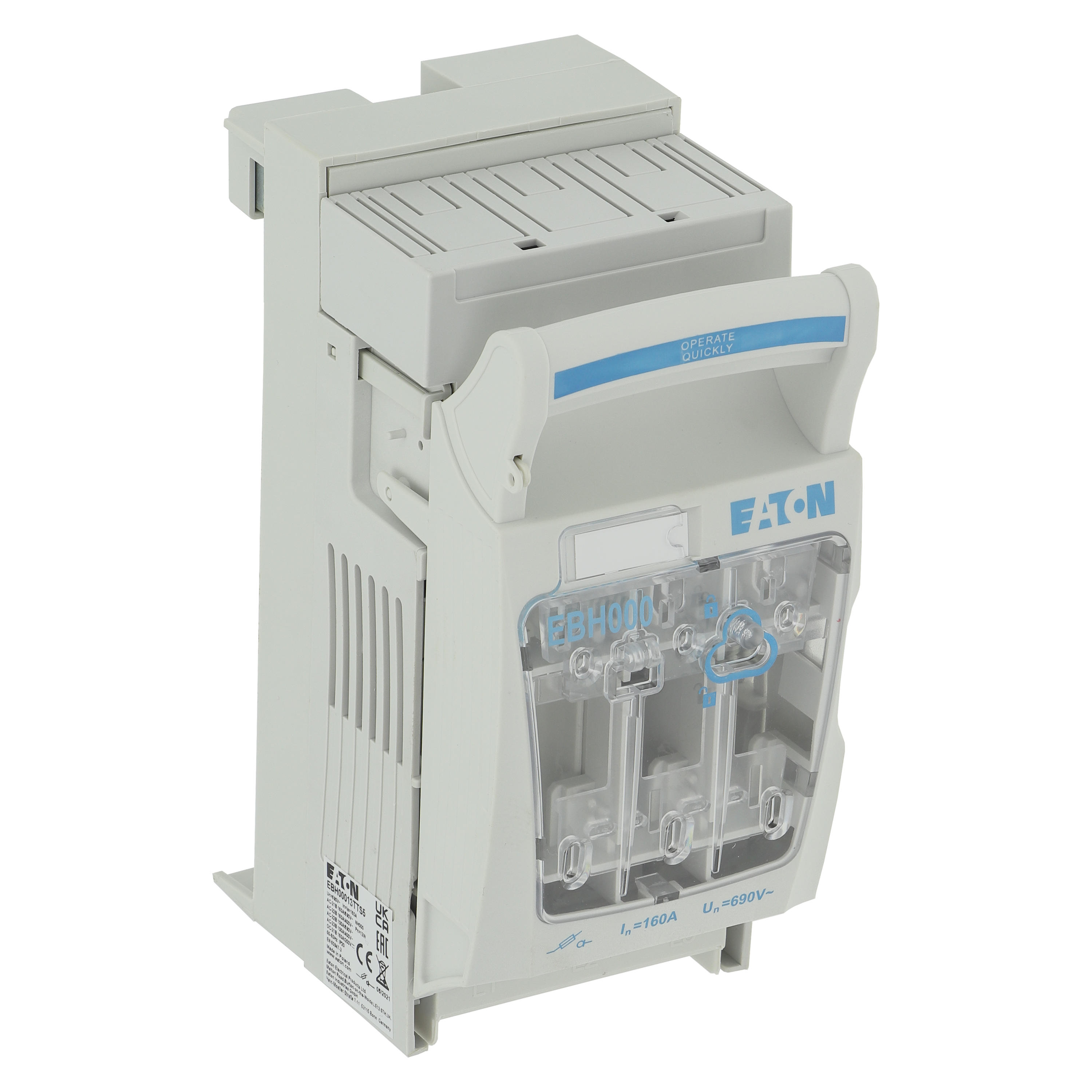 EBH00013TTS5 Rozłącznik bezpiecznikowy poziomy, 160 A, AC 690 V, NH000, AC21B, 3P, IEC, montaż na szynie 60mm: zaciski mostkowe S