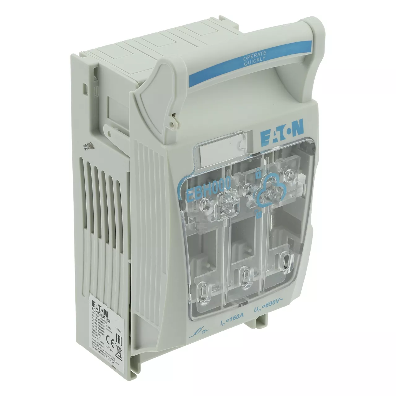 EBH000O3TS5 Rozłącznik bezpiecznikowy poziomy, 160 A, AC 690 V, NH000, AC21B, 3P, IEC, zaciski mostkowe S