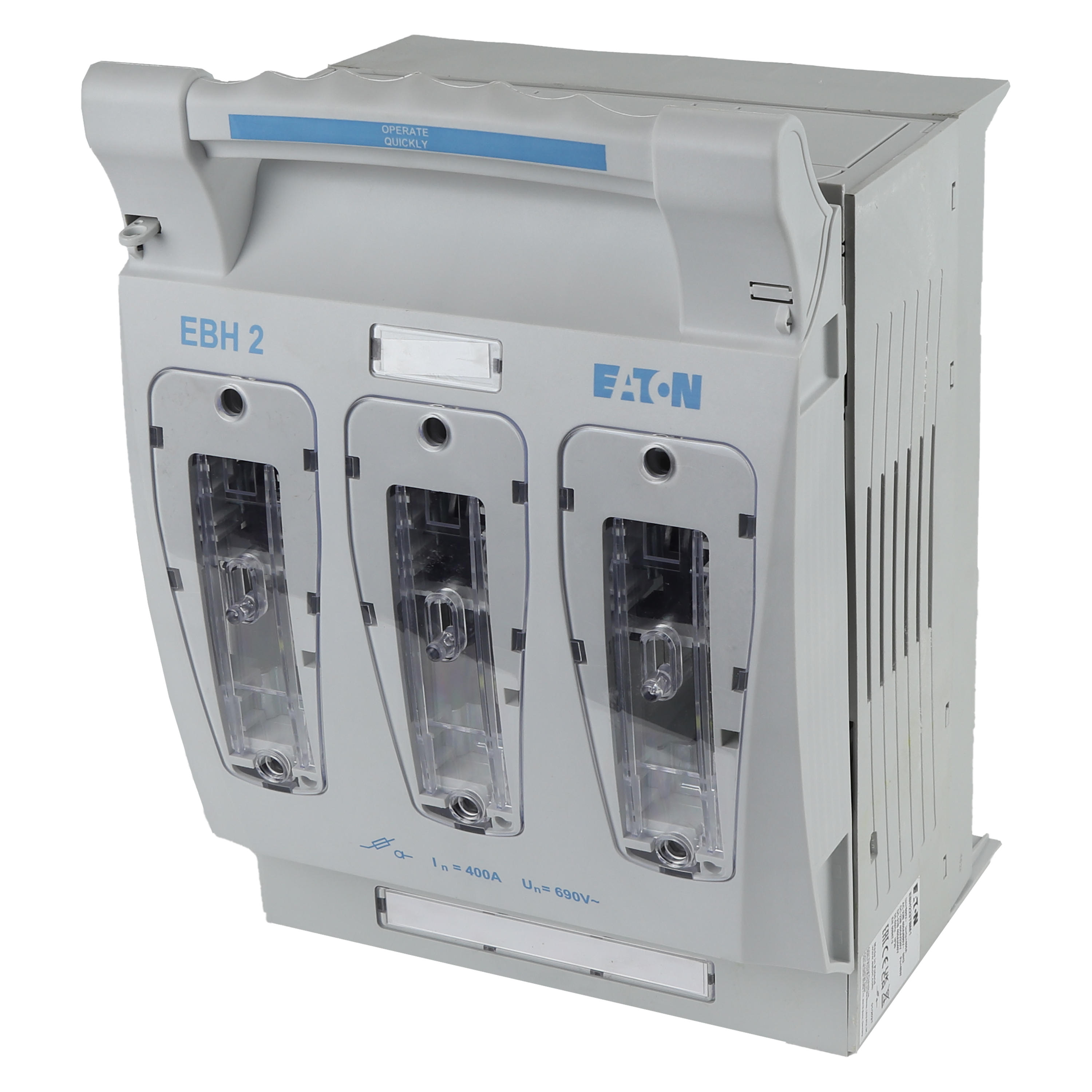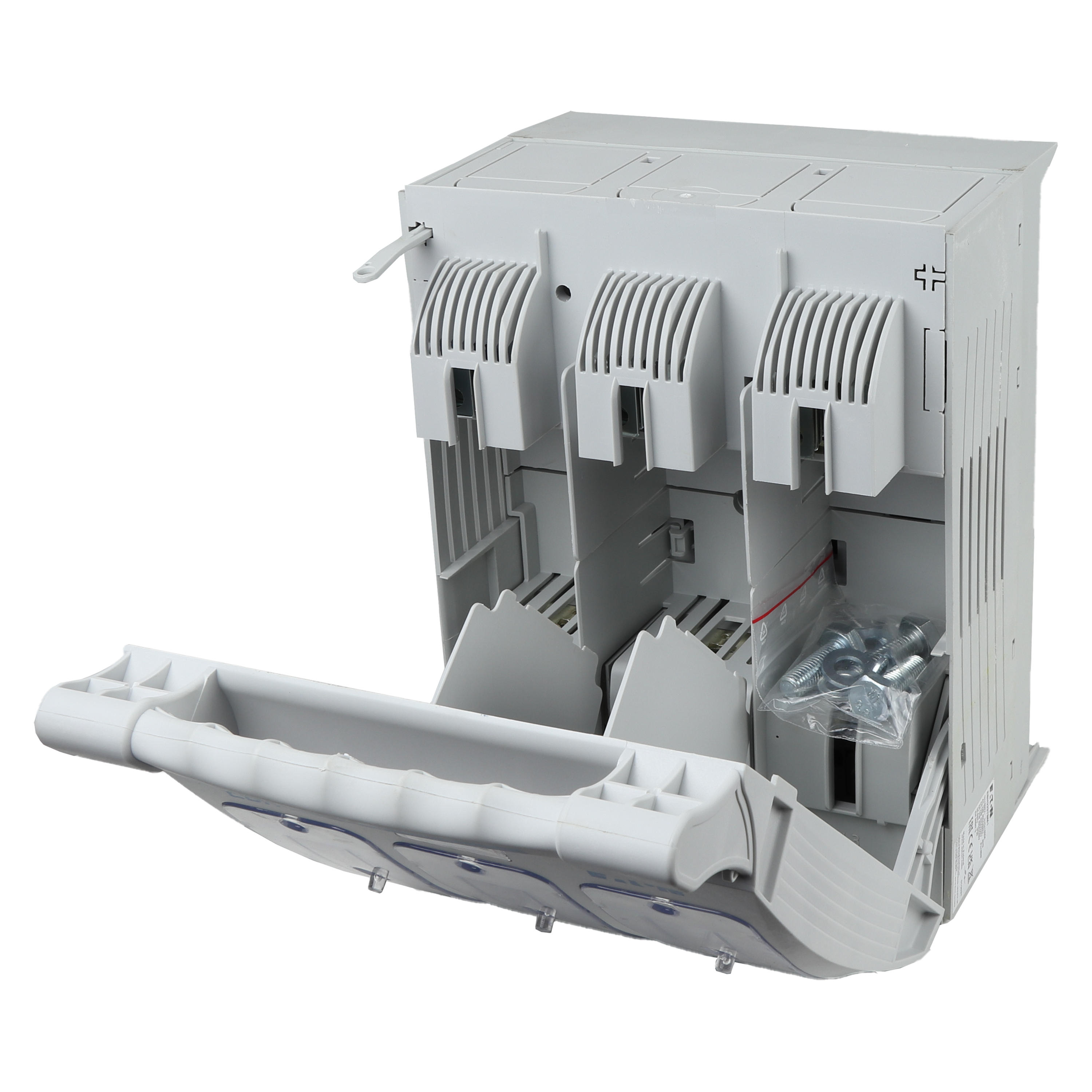 Akcesorium do bezpiecznika, Rozłącznik izolacyjny, Niskie napięcie, 400 A, AC 690 V, NH2, AC23B, 3P, IEC, Poziomy, Mocowanie szyny zbiorczej 100 mm, dolne zaciski kablowe, Śruby M10, Wkładki bezpiecznikowe NH2, IEC 60947-1, IEC 60947-3, IP20