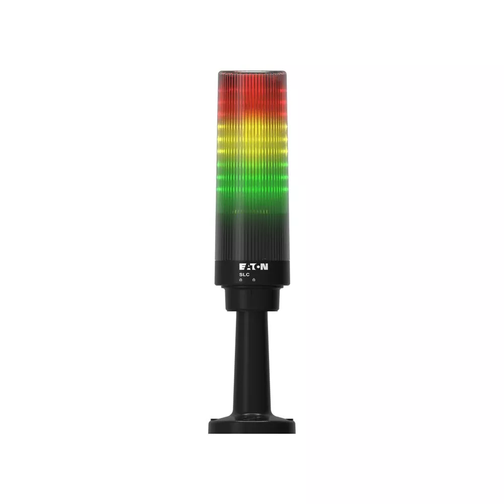 Seria Eaton Moeller SLC kompaktowa kolumna sygnalizacyjna, Kolory soczewki: Zielony, Żółty, Czerwony, Napięcie: 24 V AC/DC, Metoda montażu: Montaż standardowy, Stopień ochrony: IP66, NEMA 4X, Funkcje: Sygnał przerywany, Moduł światła ciągłego LED, migająca czerwona dioda LED