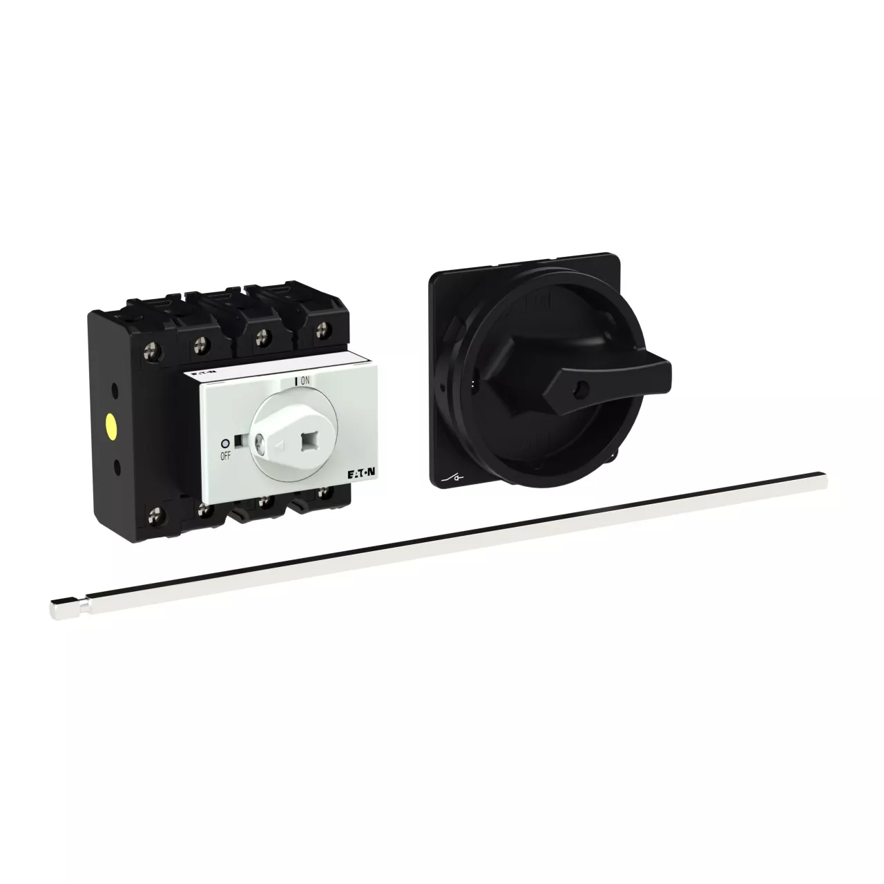 P3-80/M4/SVB-SW/N Rozłącznik główny, 3 bieg.+N, 80A, funkcja awaryjnego zatrzymania, blok. na kłódkę w pozycji Wył., z 400 mm metalową osią, montaż rozłączny, pokrętło czarne z blokadą na kłódkę